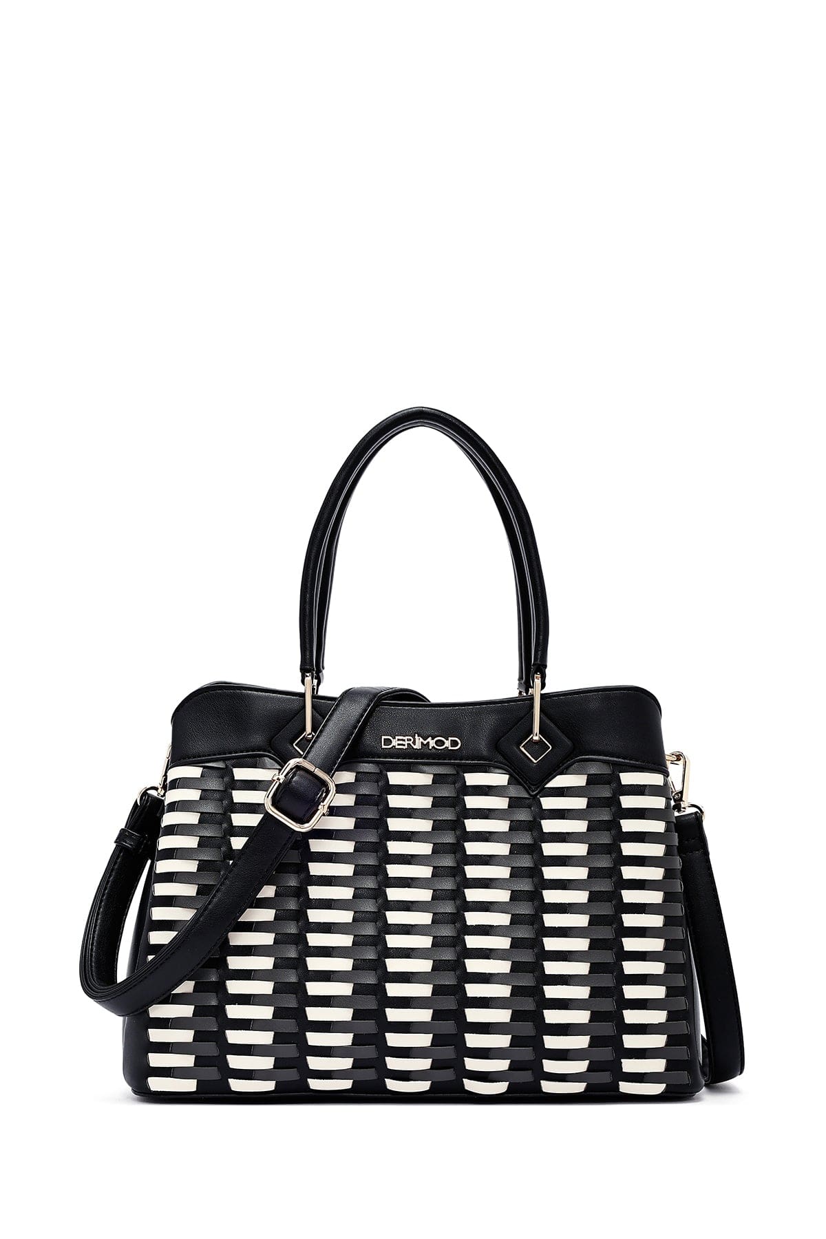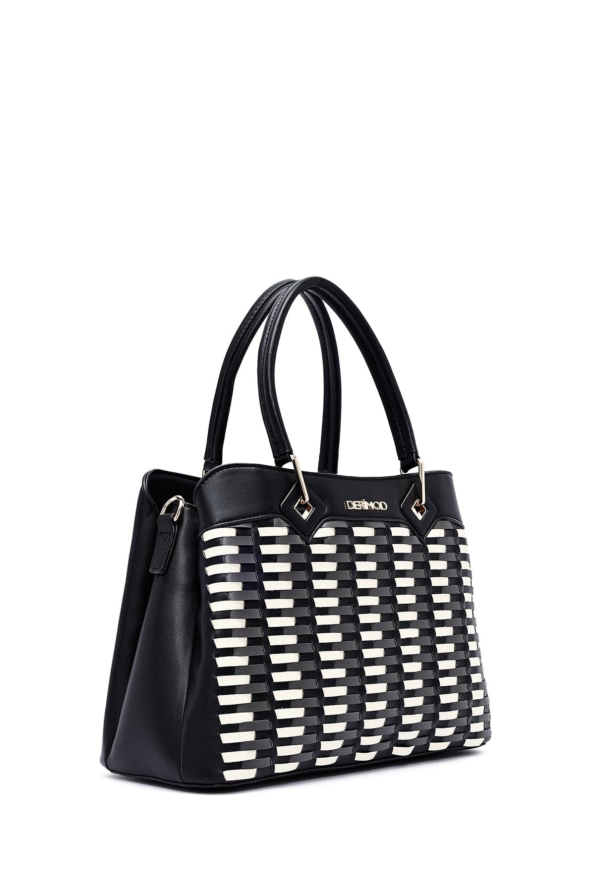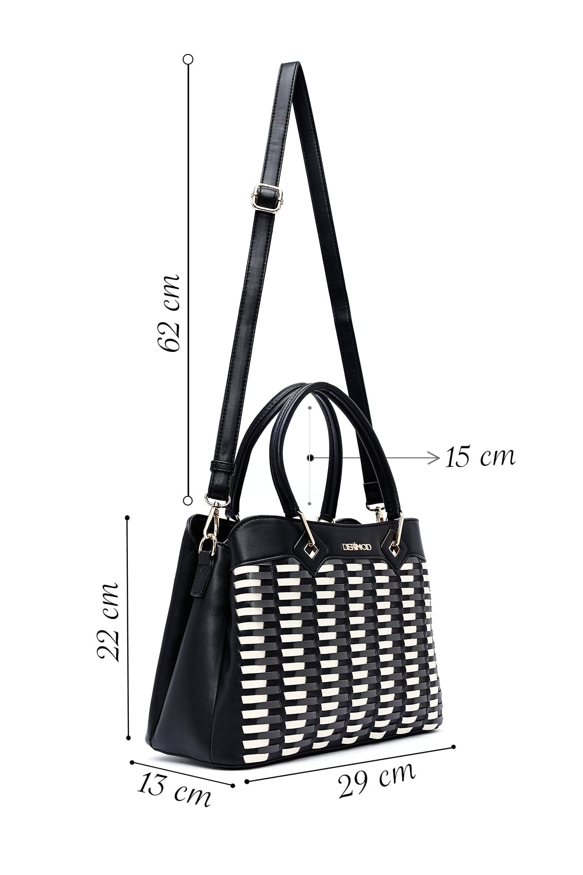 کیف زنانه دستی مشکی بند بلند بافتدار دری مد
