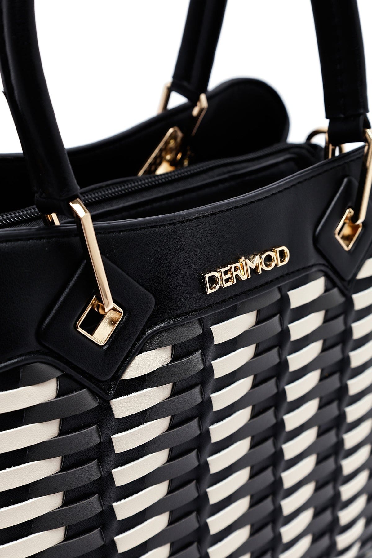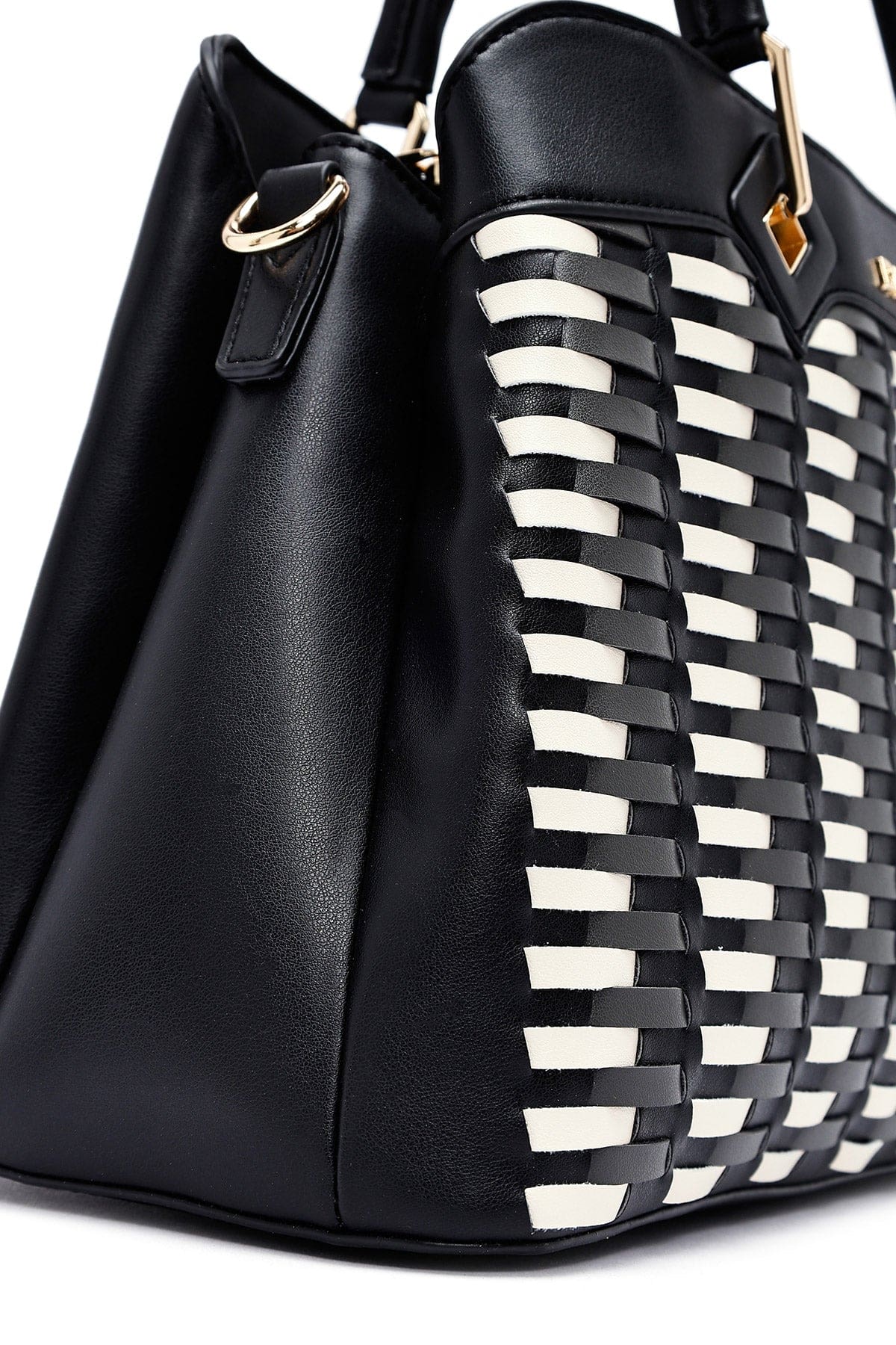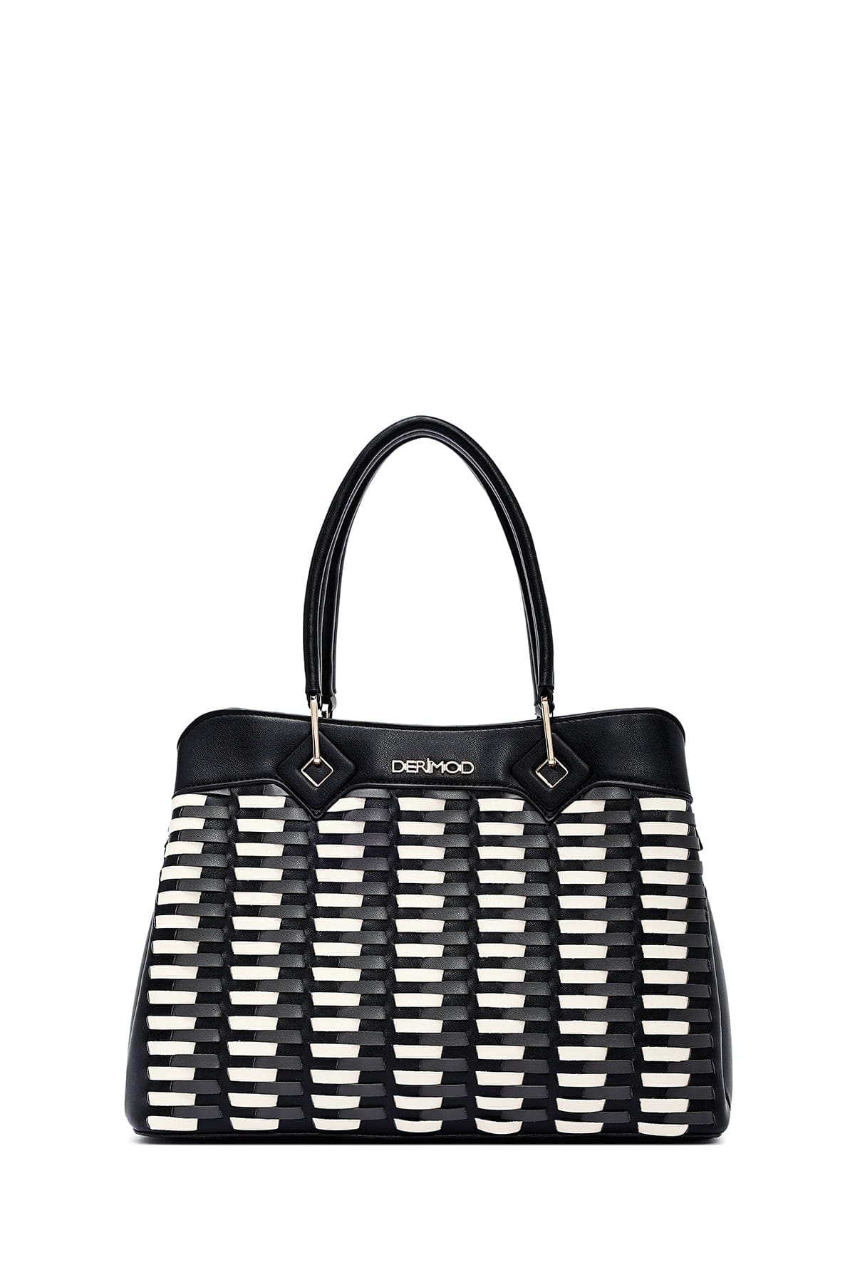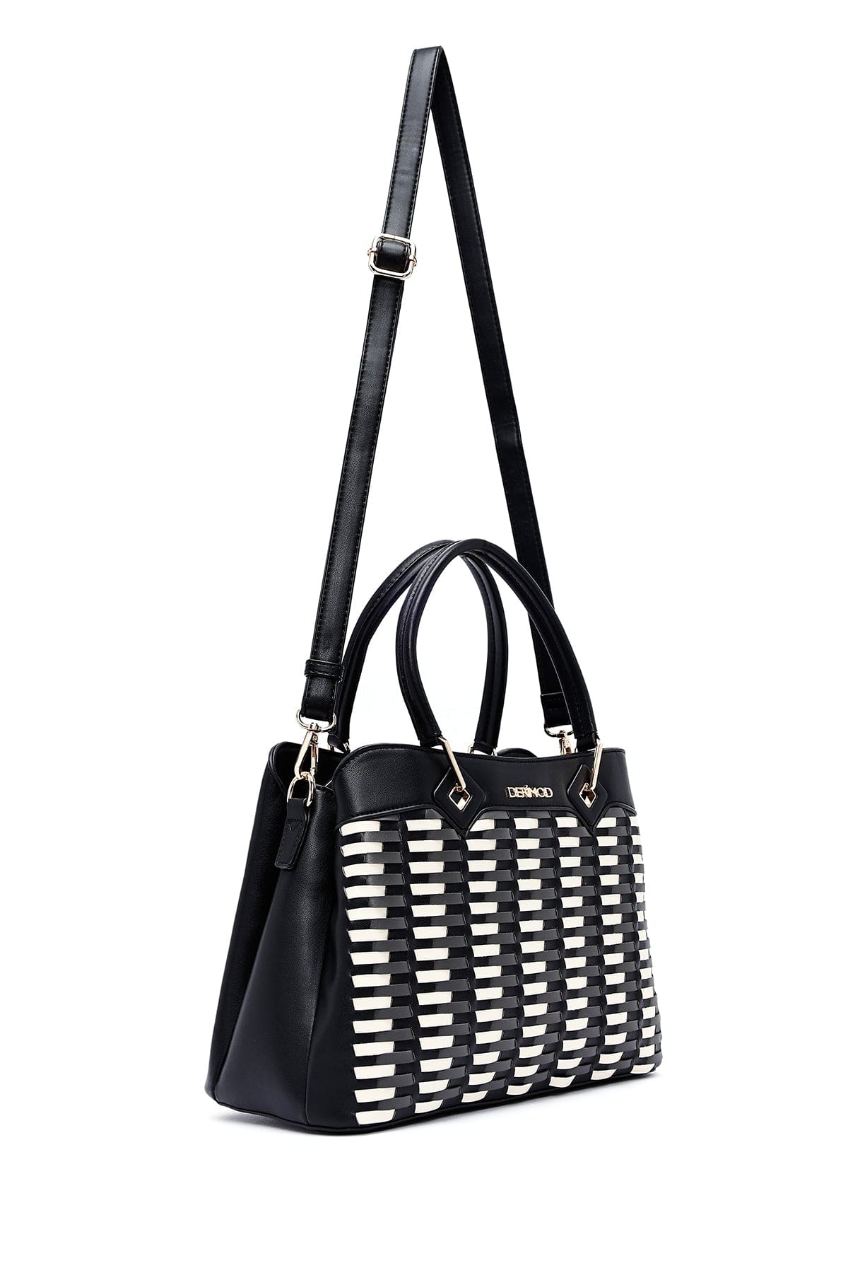کیف زنانه دستی مشکی بند بلند بافتدار دری مد