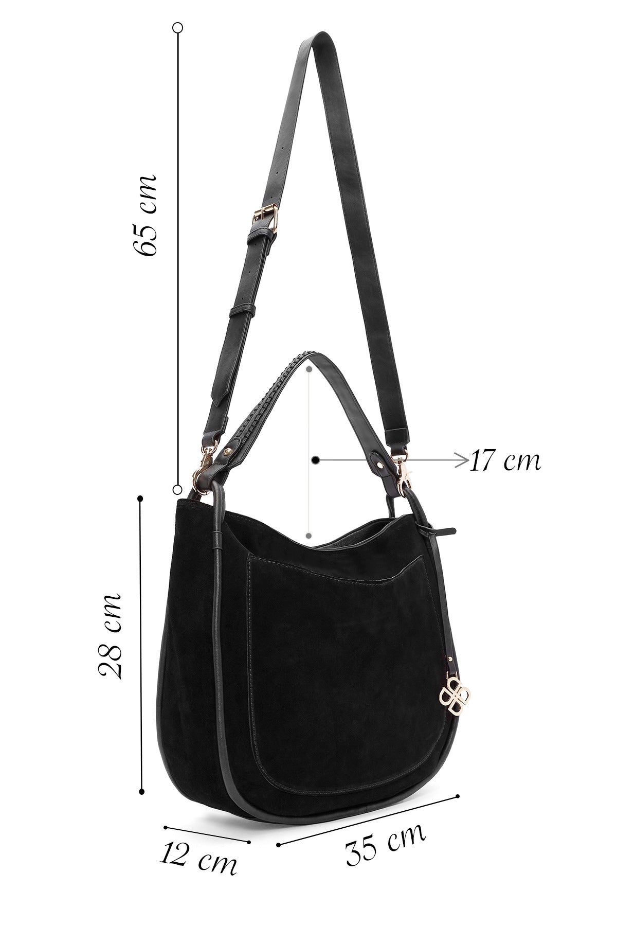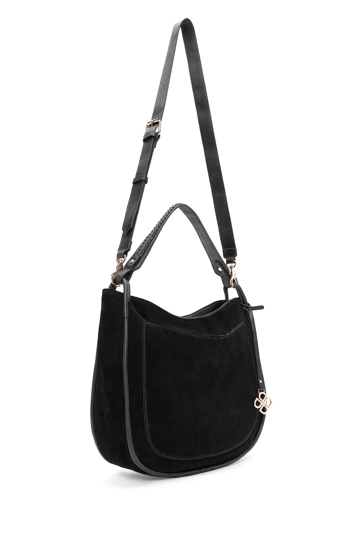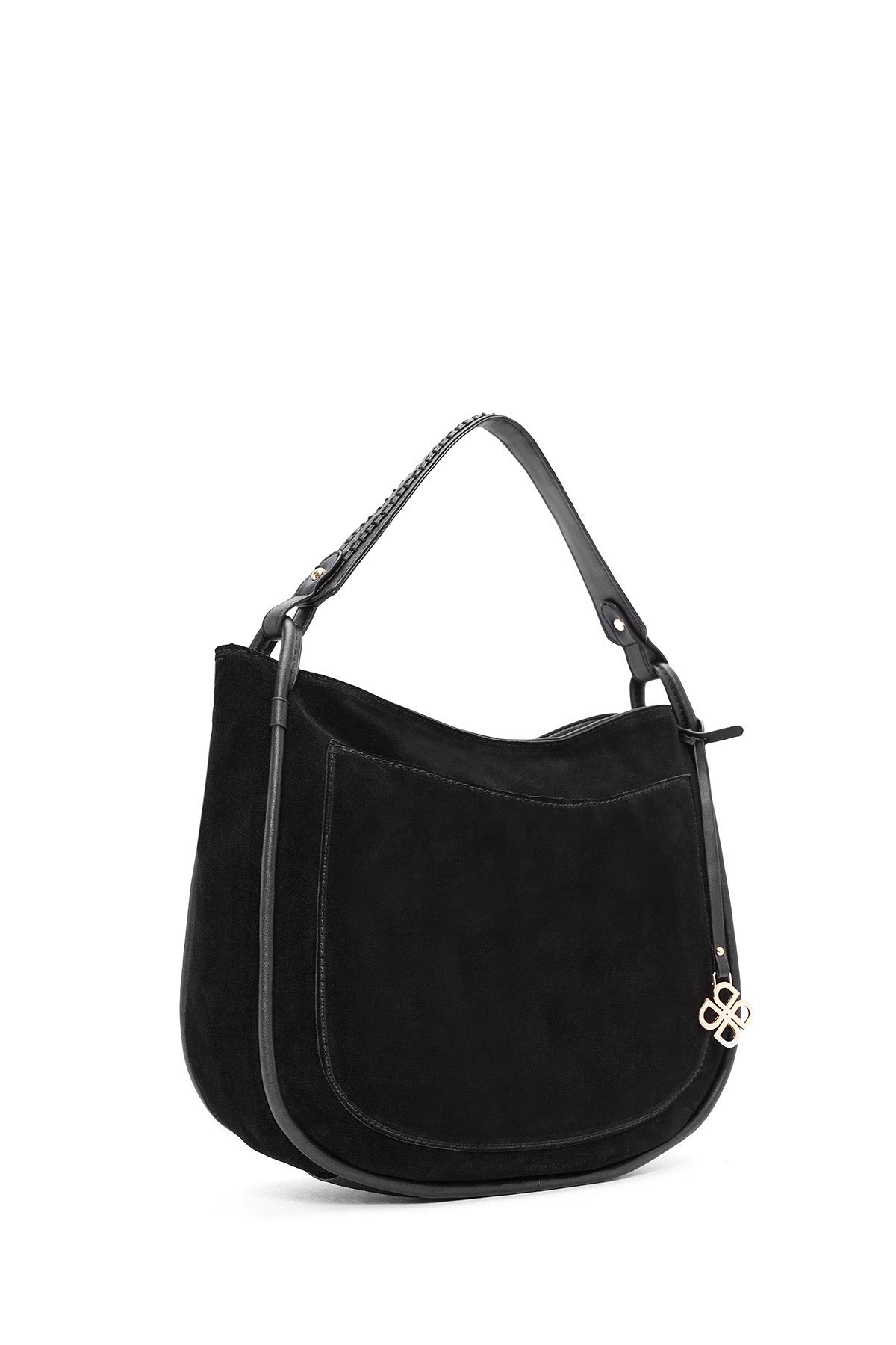 Kadın Siyah Uzun Askılı Süet Omuz Çantası
