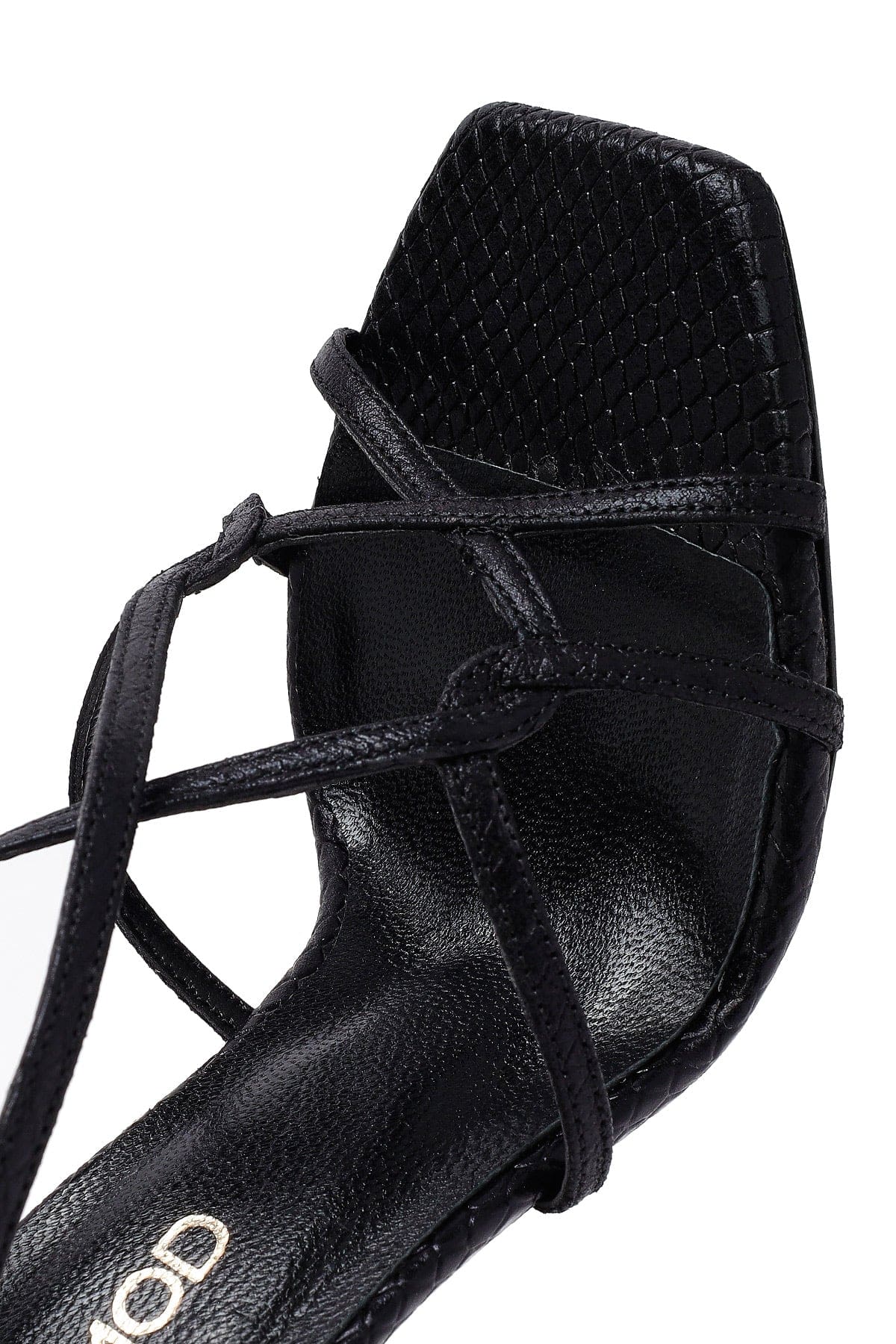 صندل زنانه مشکی چرم متالیک پاشنهنازک بنددار دری مد