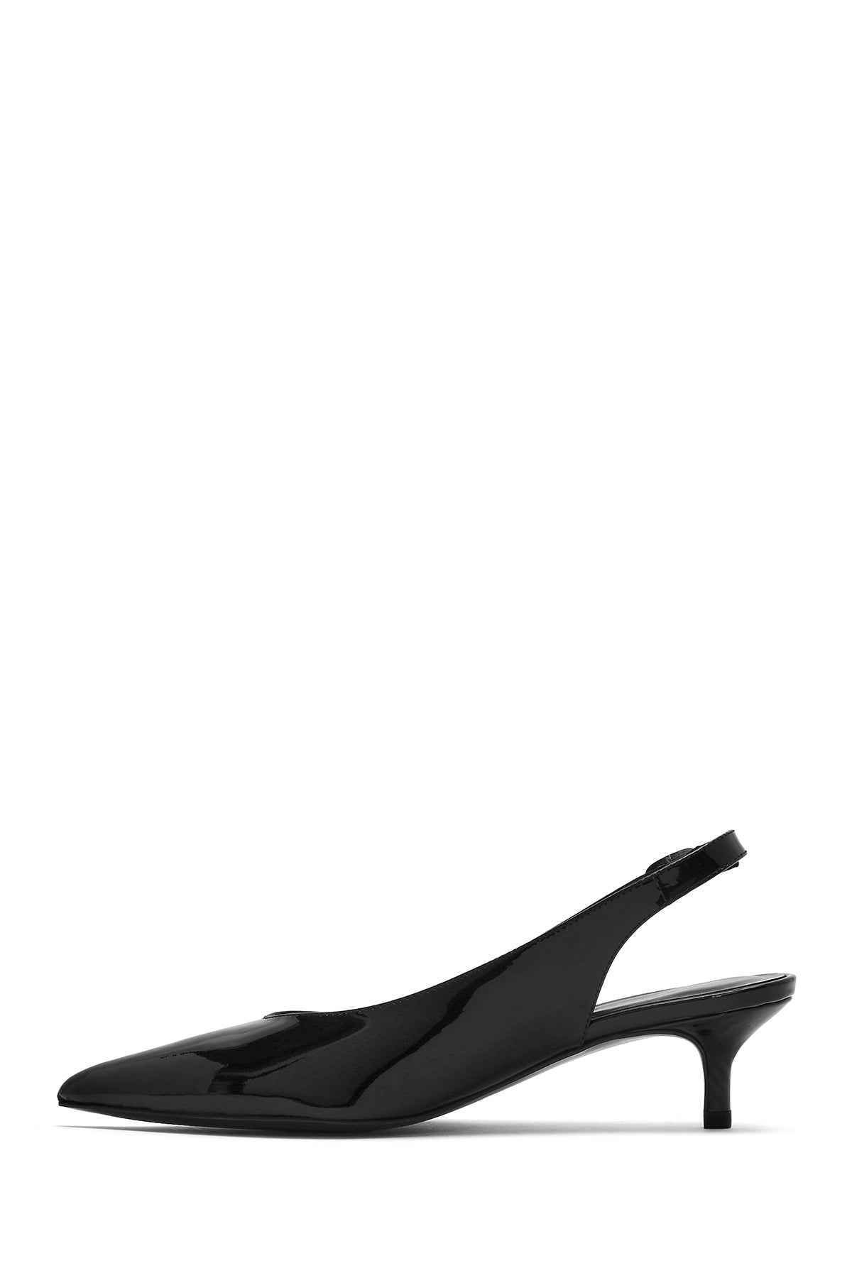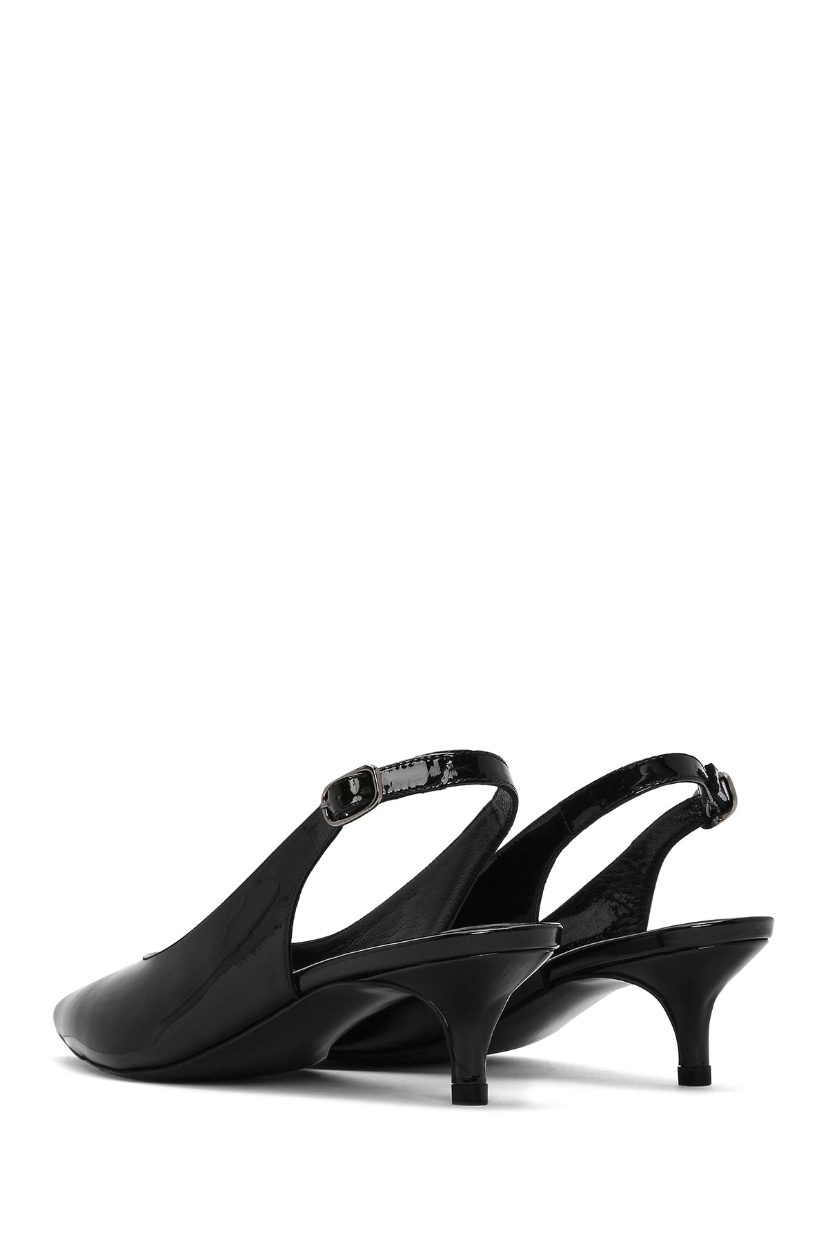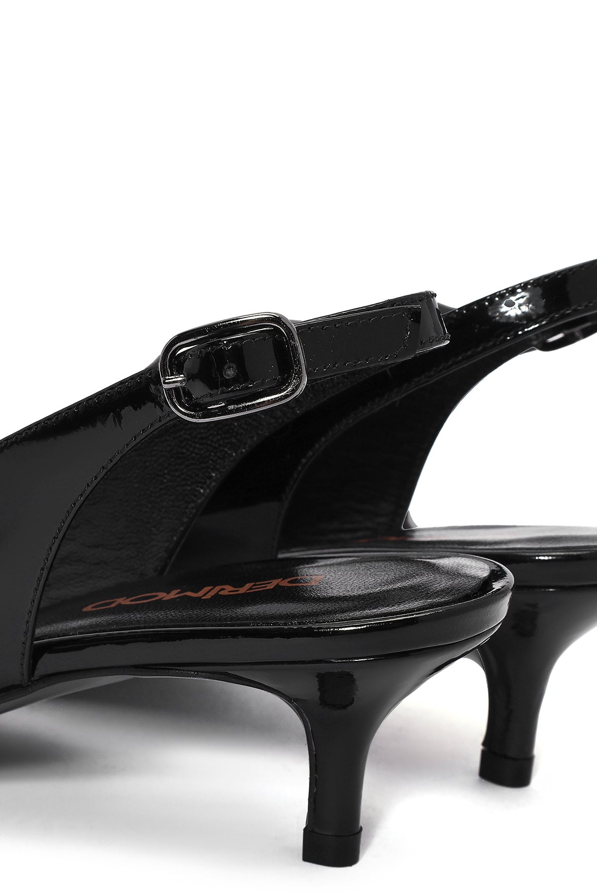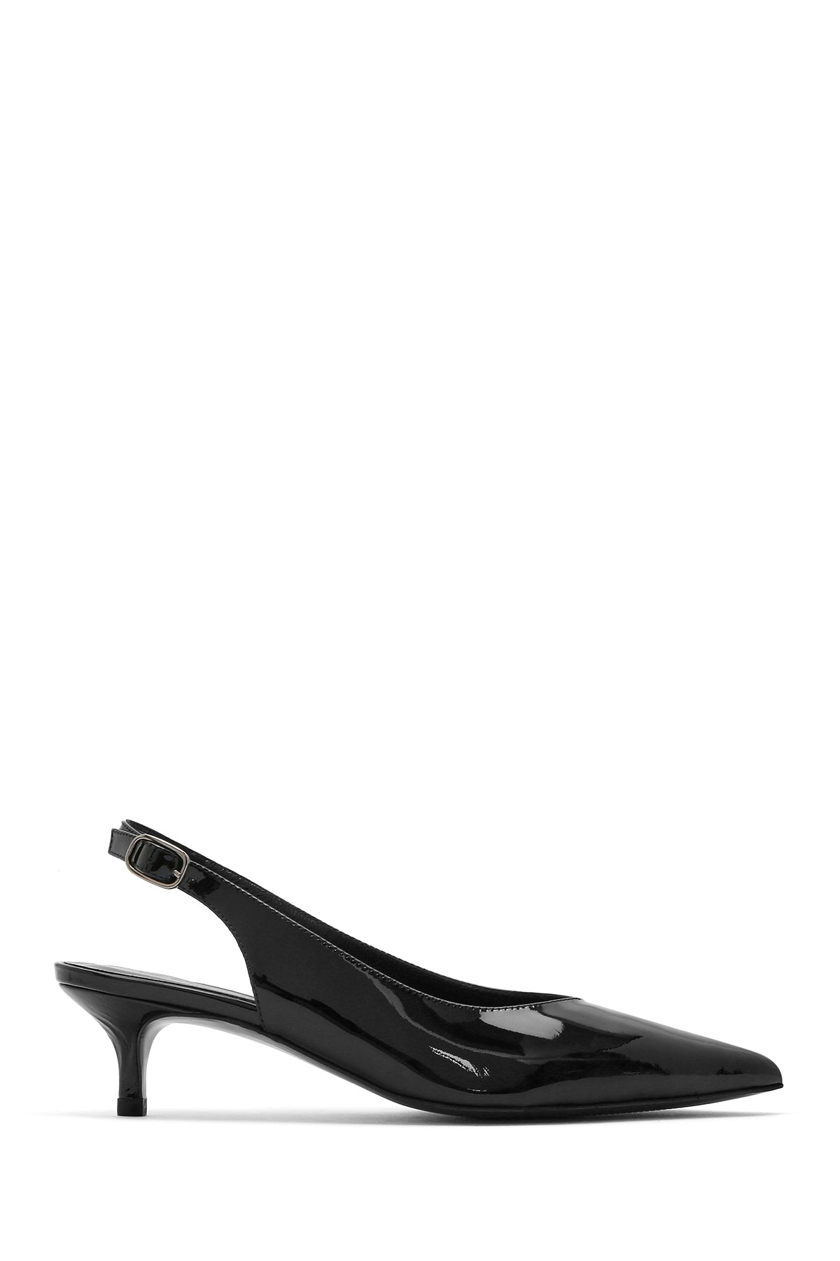 Kadın Siyah Arkası Açık Kısa Topuklu Rugan Deri Ayakkabı