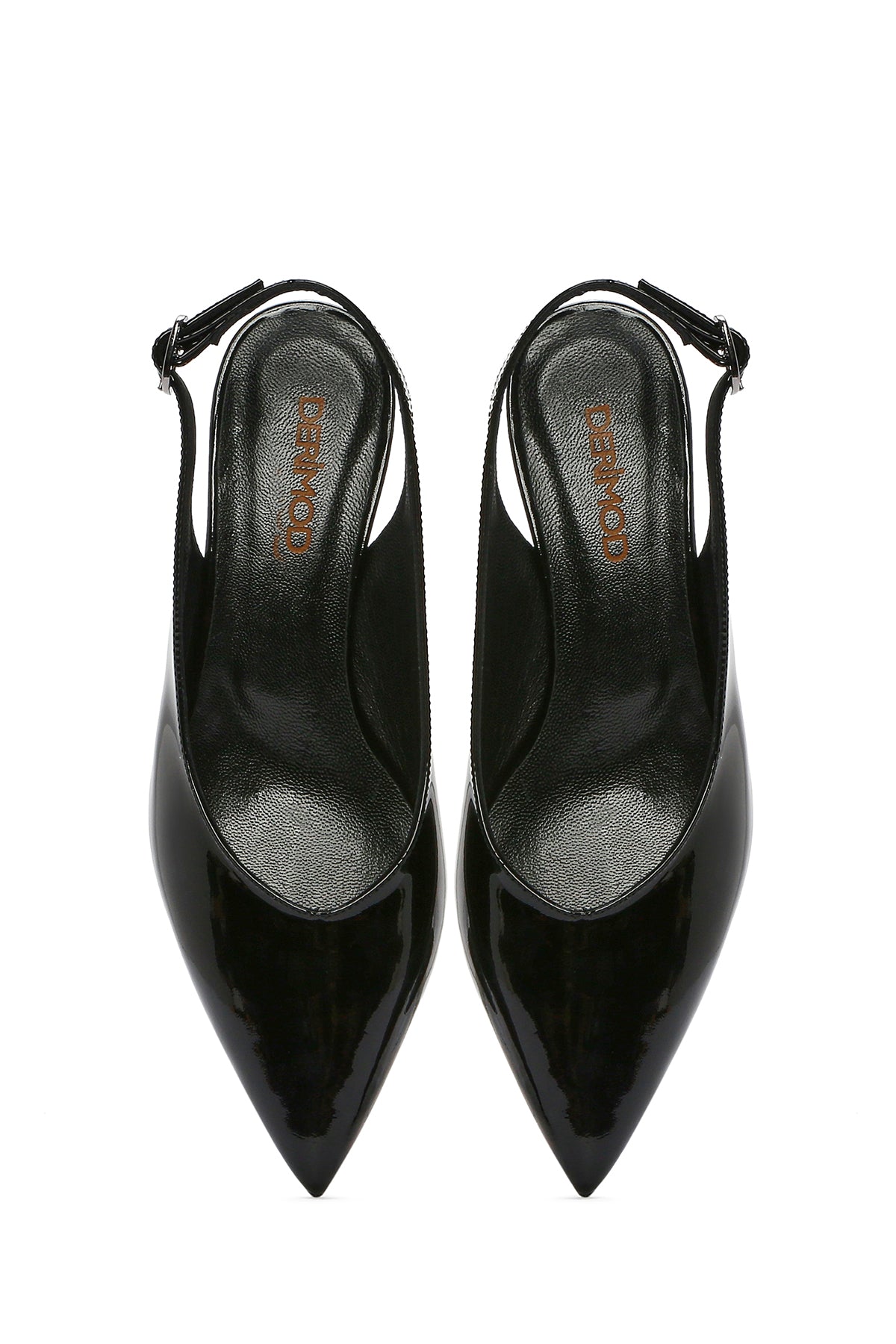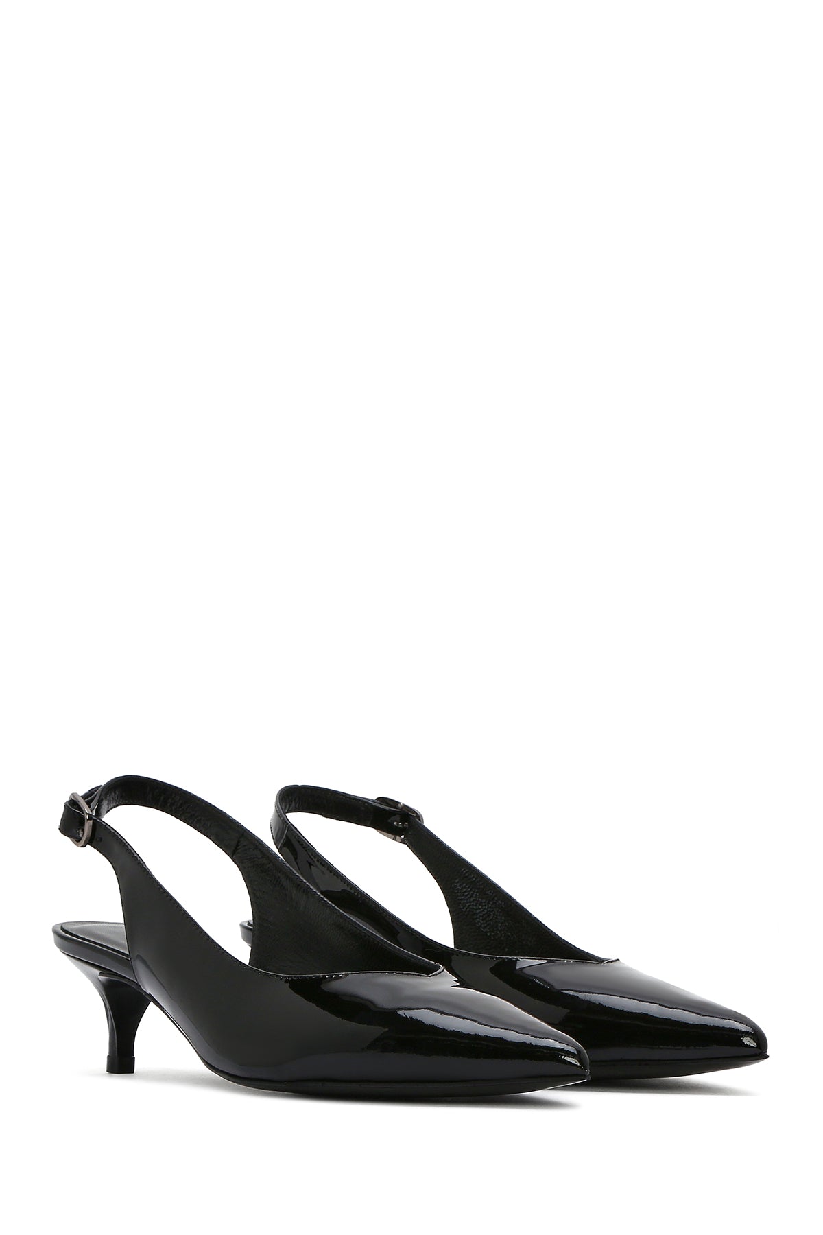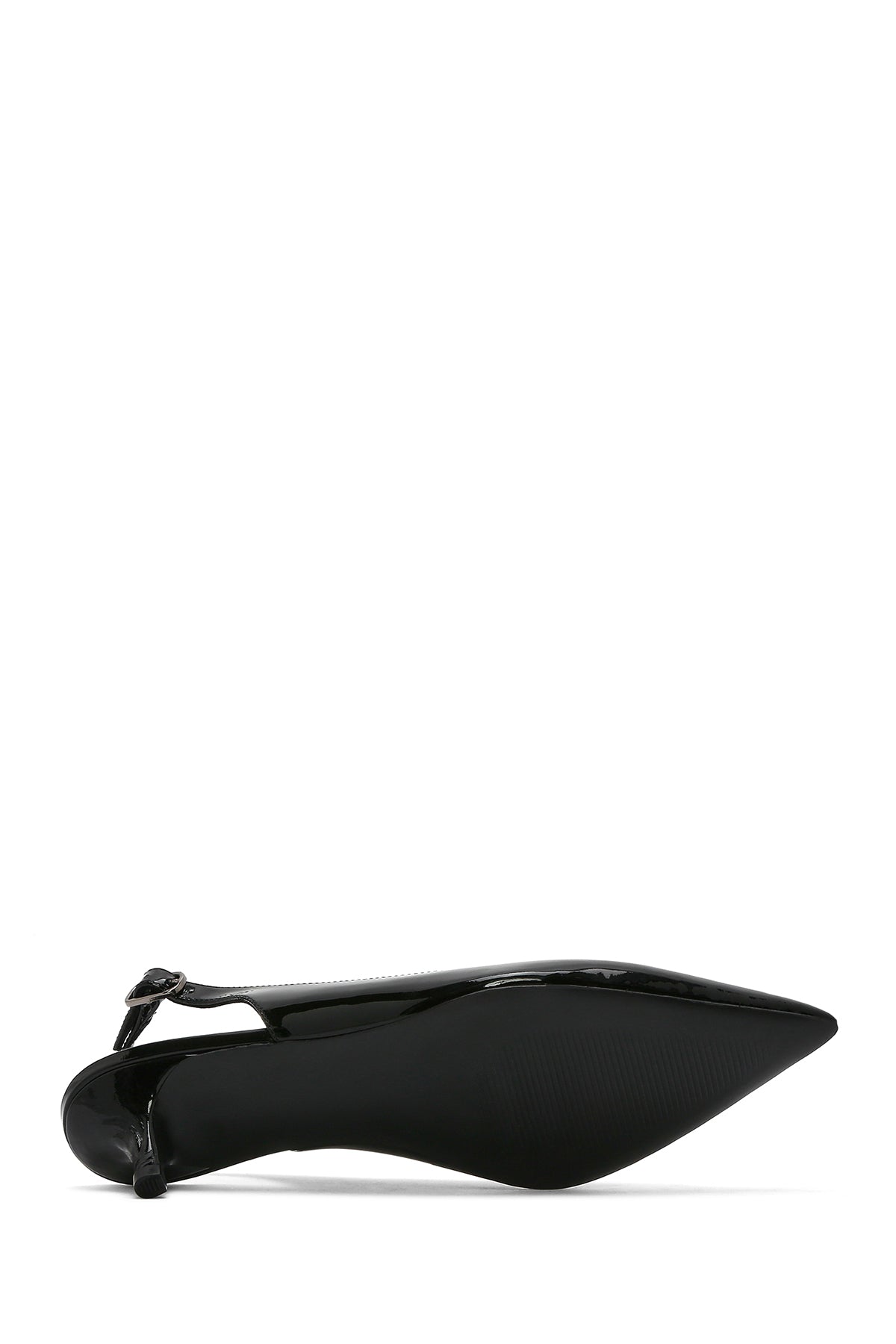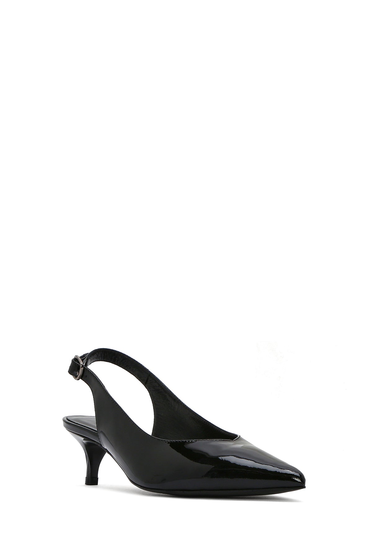 Kadın Siyah Arkası Açık Kısa Topuklu Rugan Deri Ayakkabı