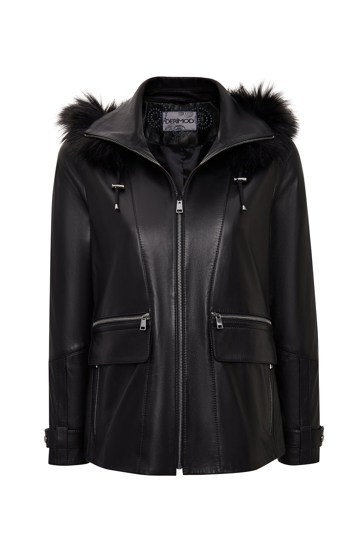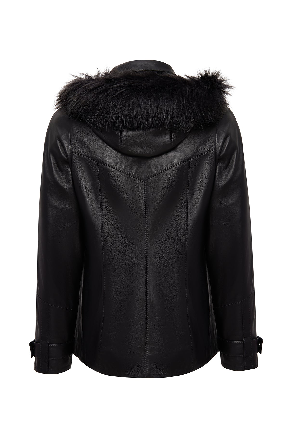 کت چرمی زنانه مشکی اورسایز کلاهدار یقه خزدار Chantal دری مد