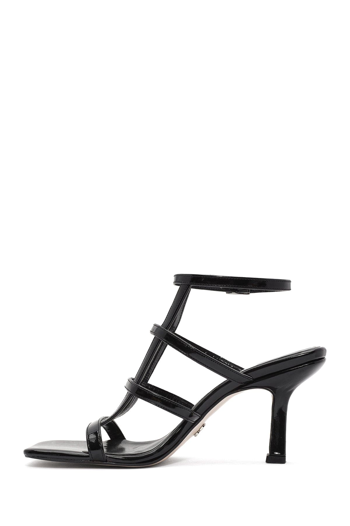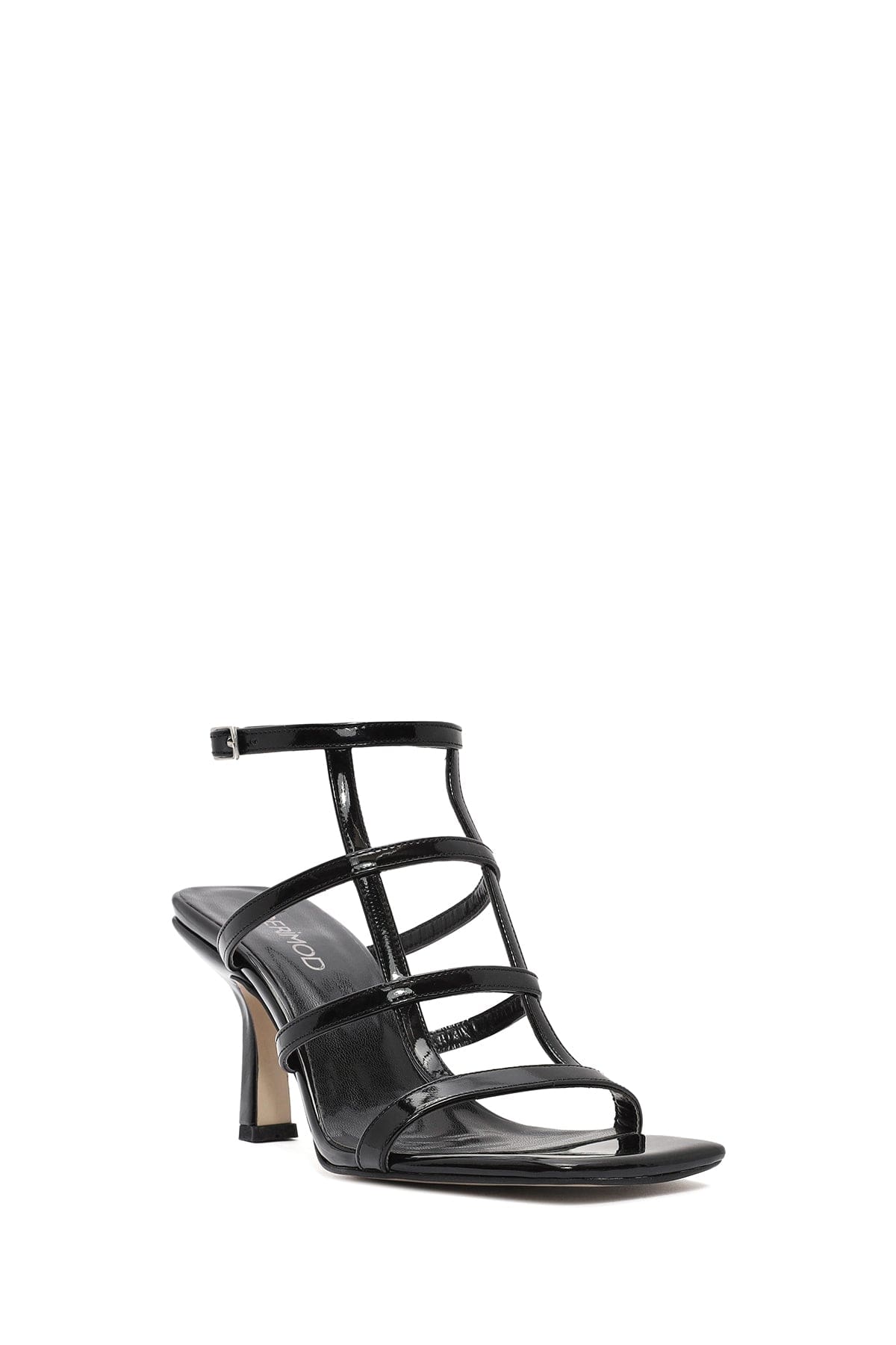 Kadın Siyah Bilekten Tokalı İnce Topuklu Rugan Sandalet