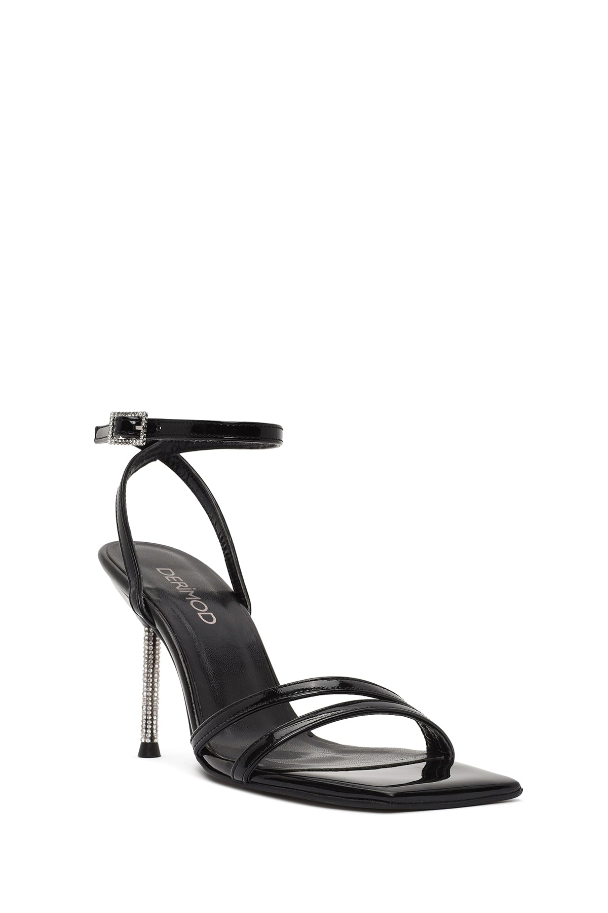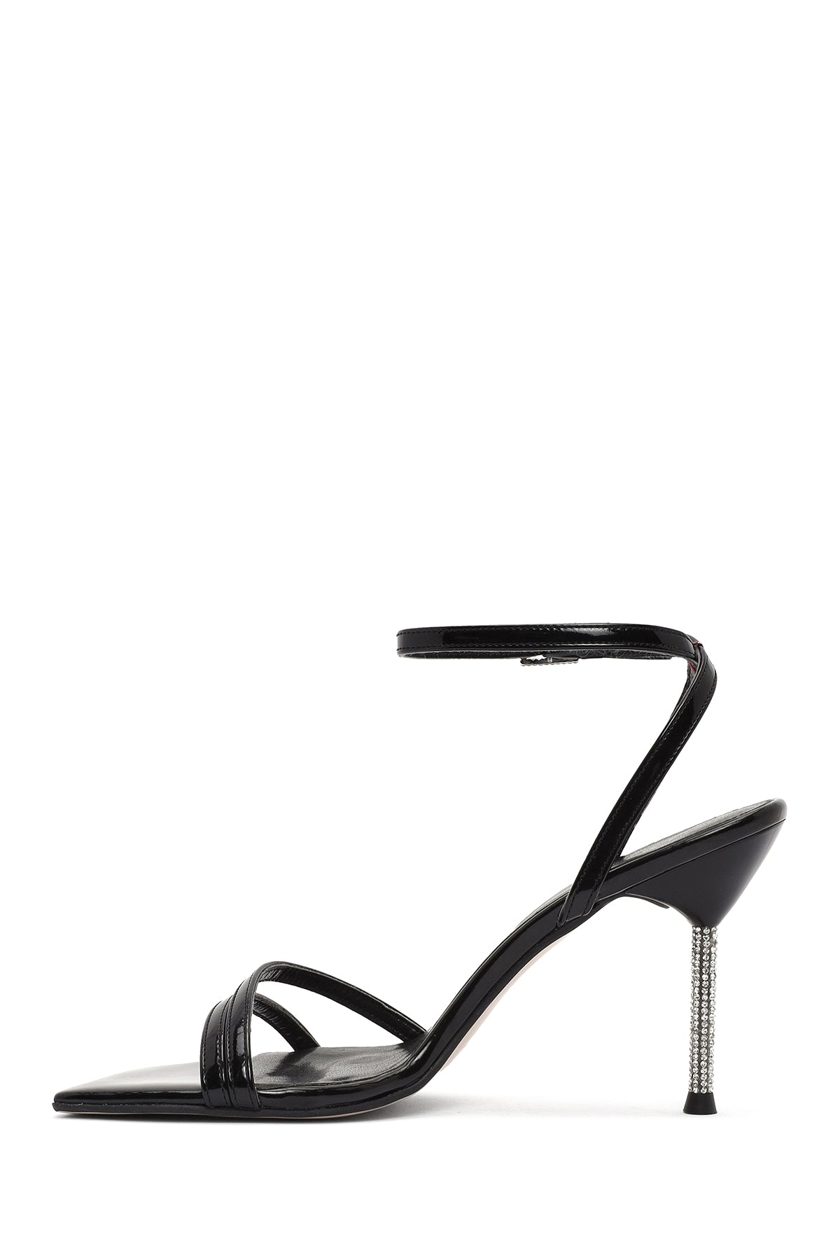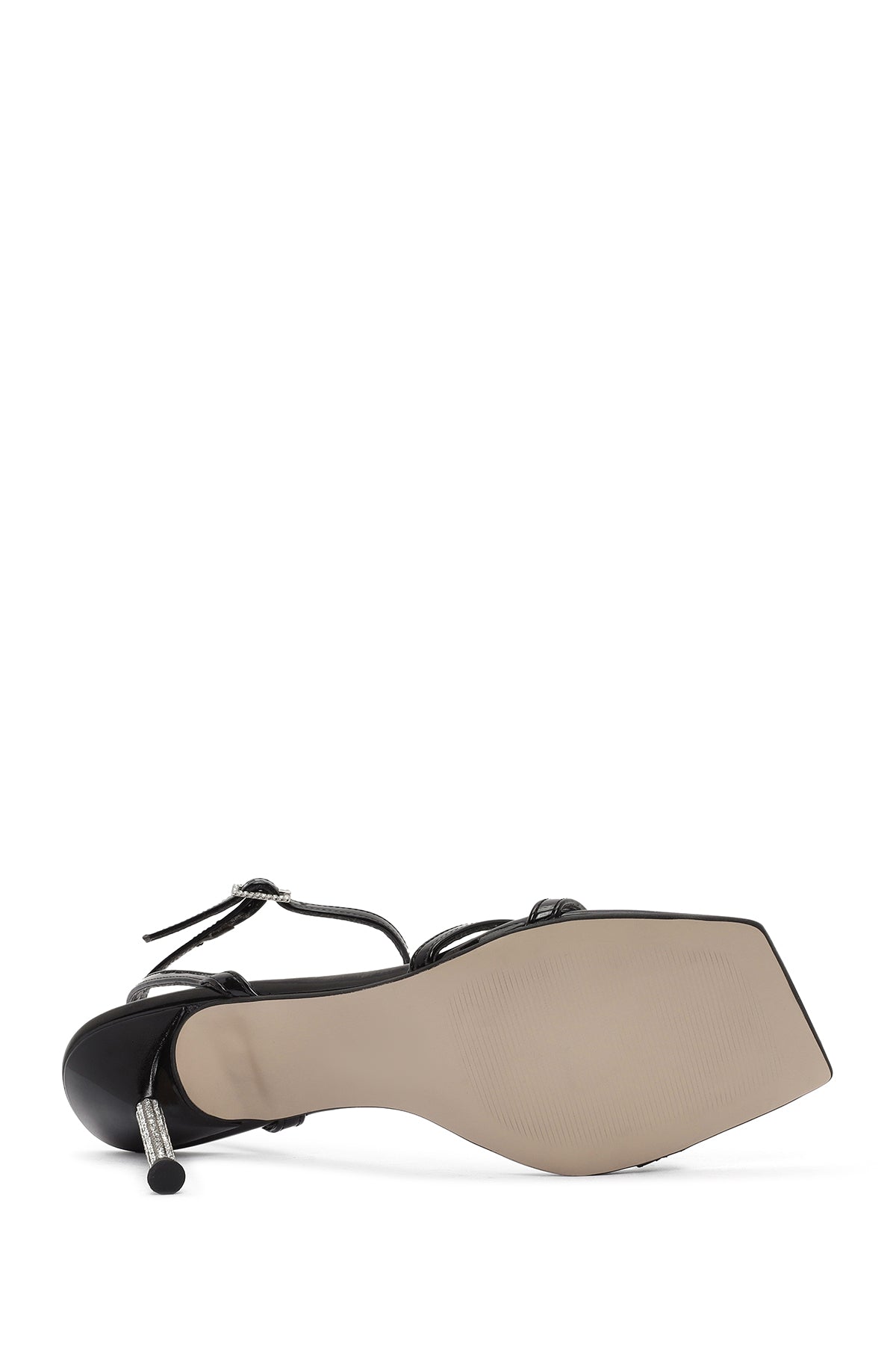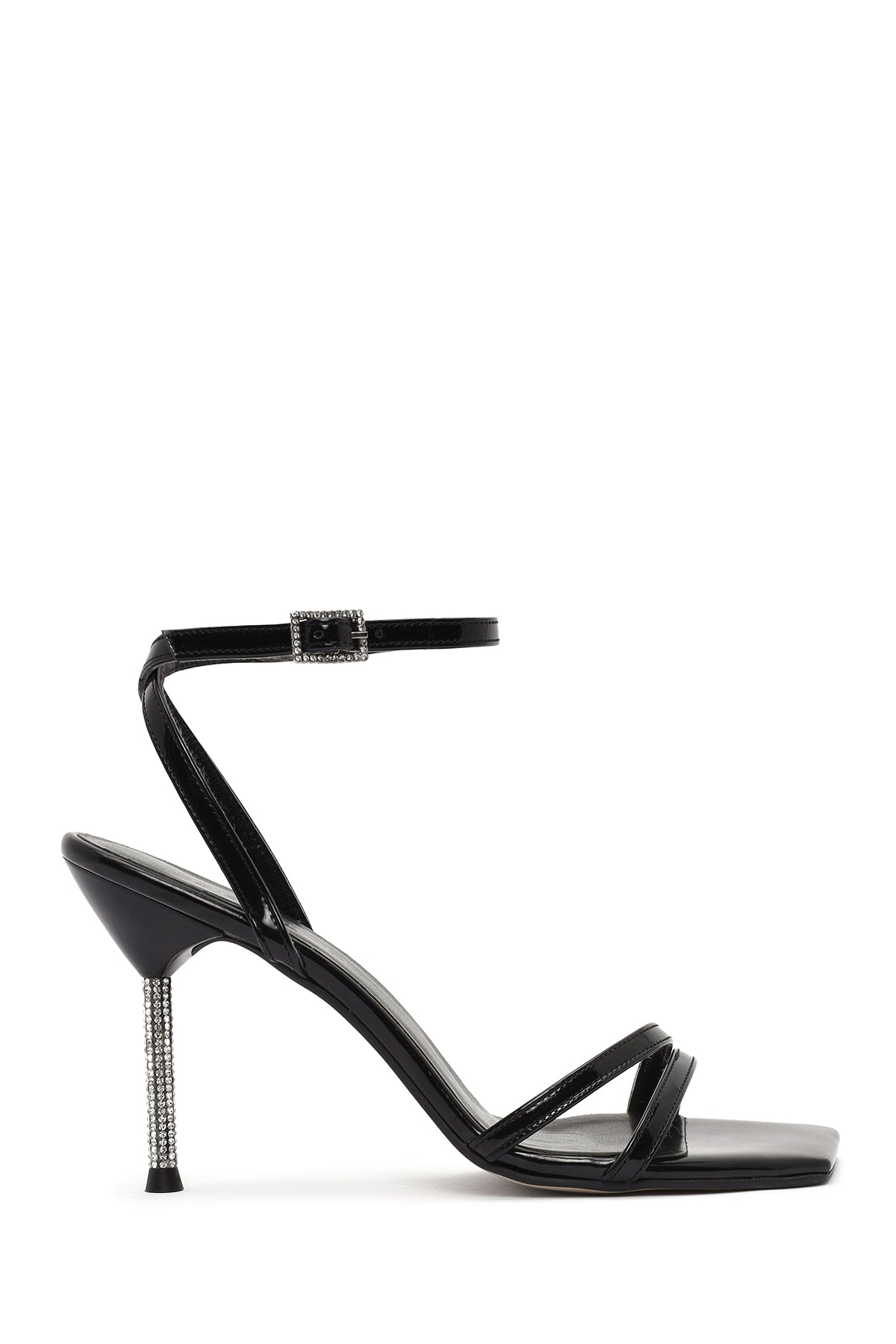 Kadın Siyah Bilekten Tokalı Taşlı İnce Topuklu Rugan Sandalet