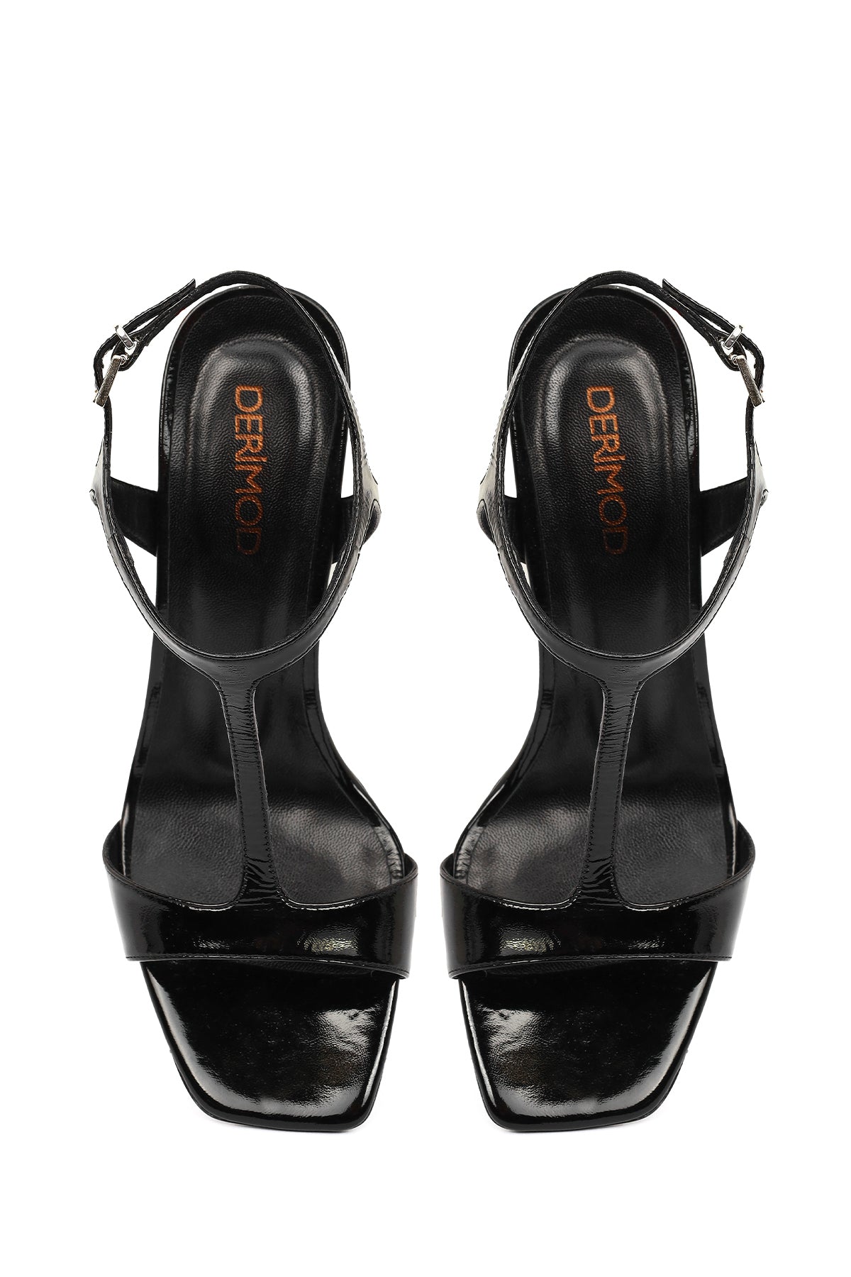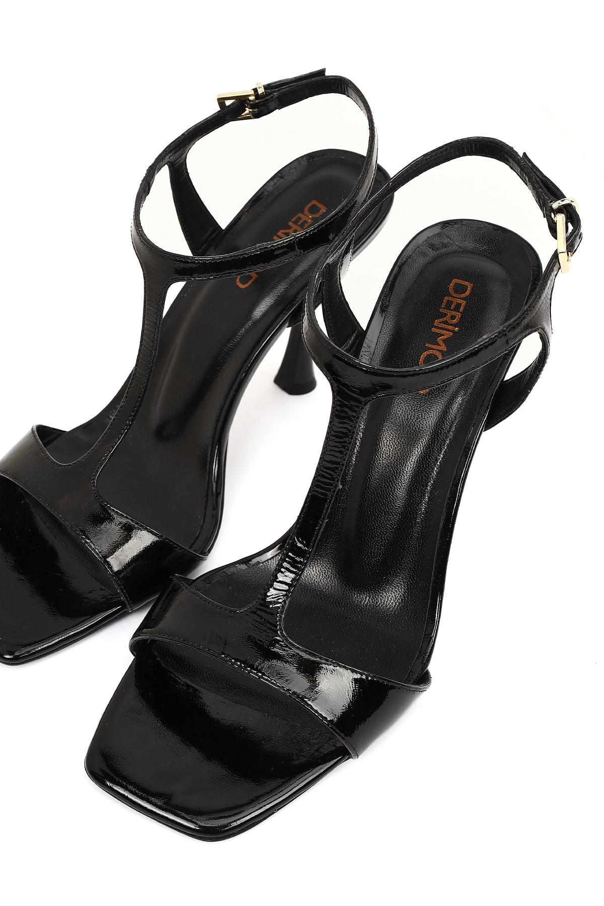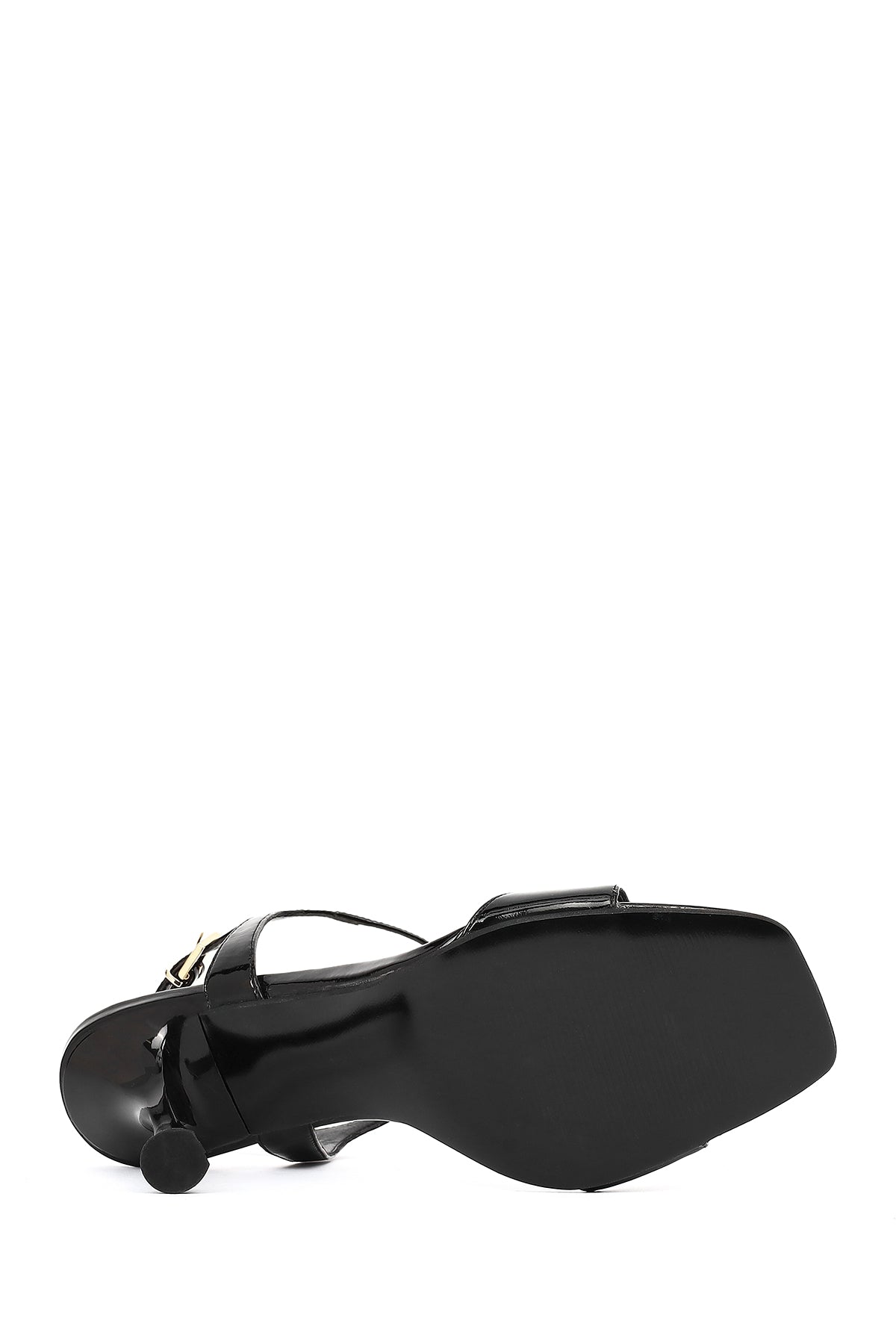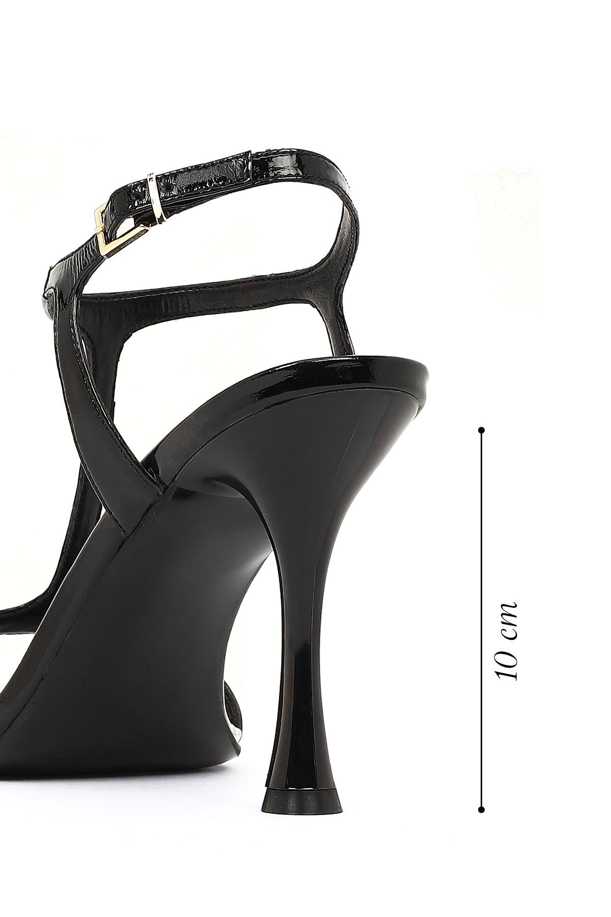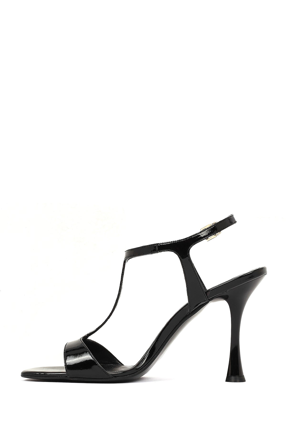 Kadın Siyah Bilekten Tokalı Yüksek İnce Topuklu Rugan Deri Sandalet