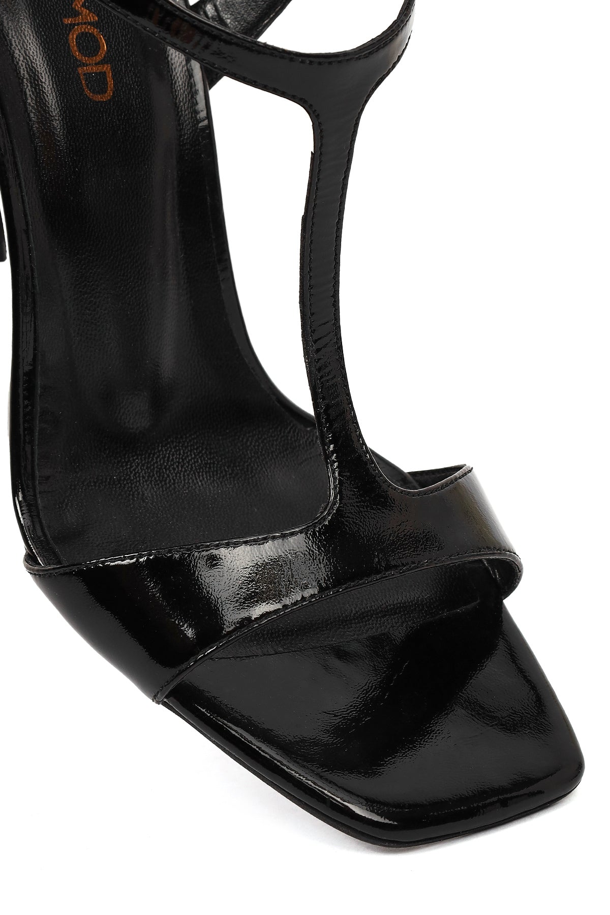 صندل زنانه چرم ورنی مشکی بنددار مچ پا پاشنهبلند دری مد
