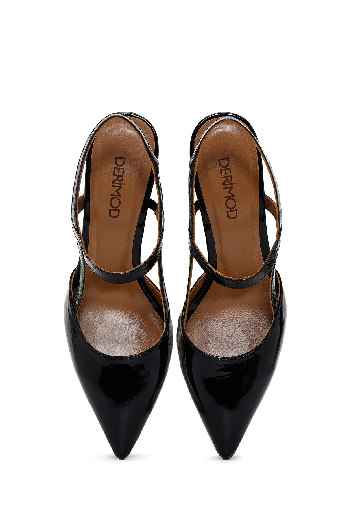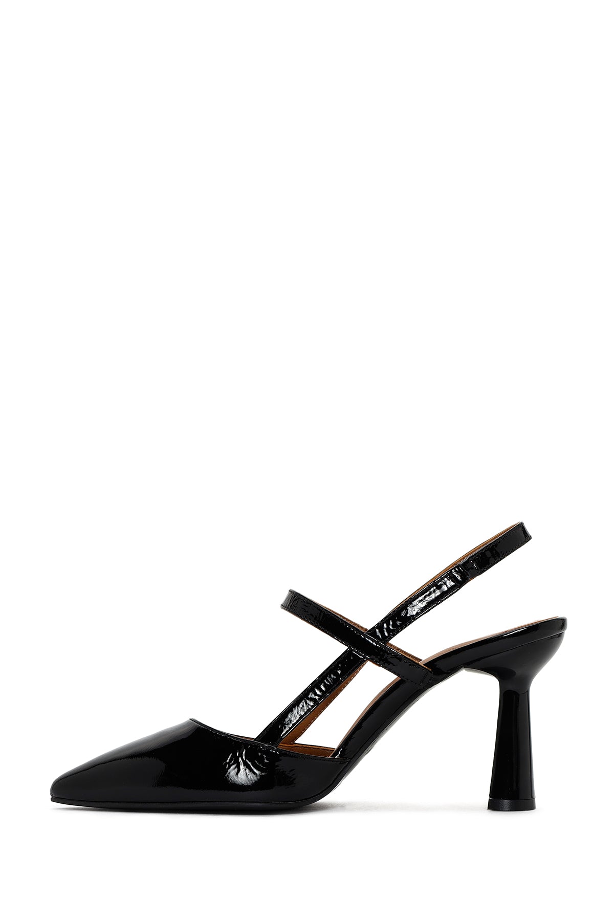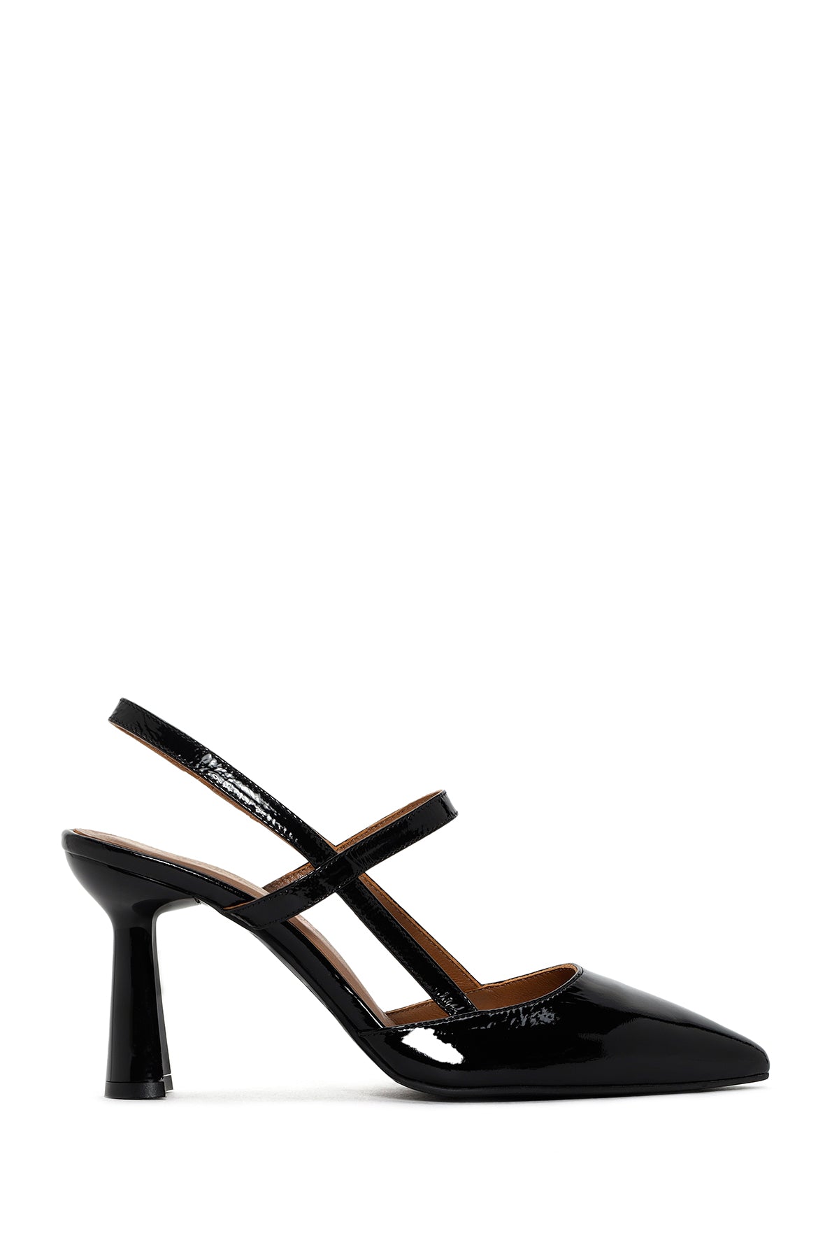 Kadın Siyah Arkası Açık Topuklu Rugan Deri Ayakkabı