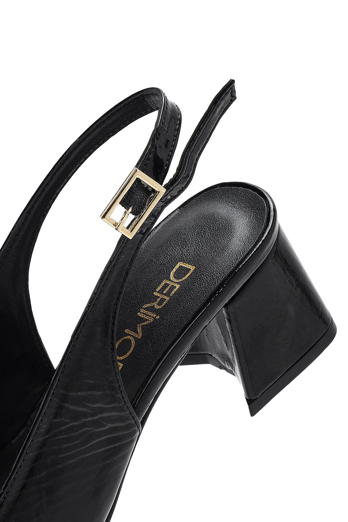 کفش زنانه مشکی چرم ورنی بنددار پاشنهضخیم کوتاه پشت باز دری مد