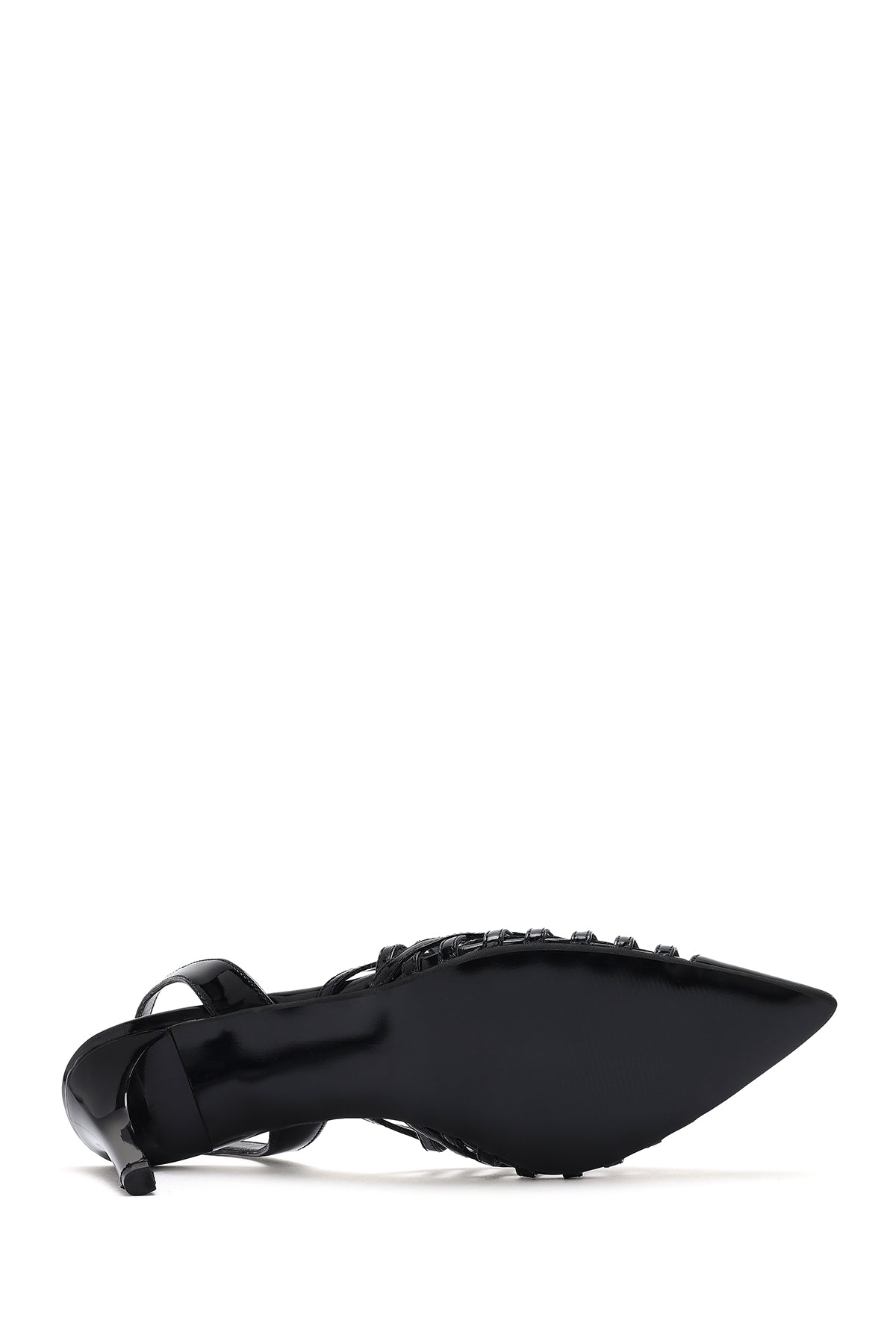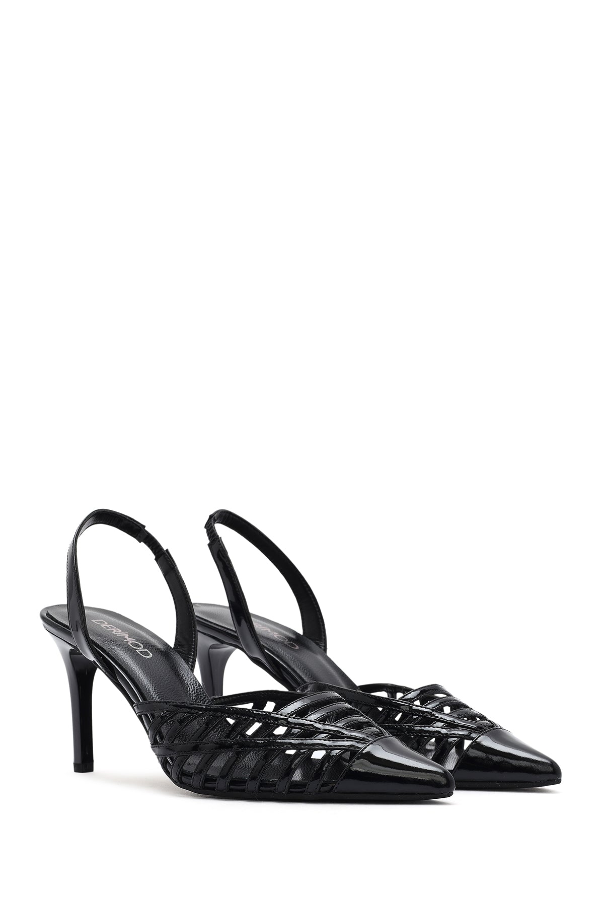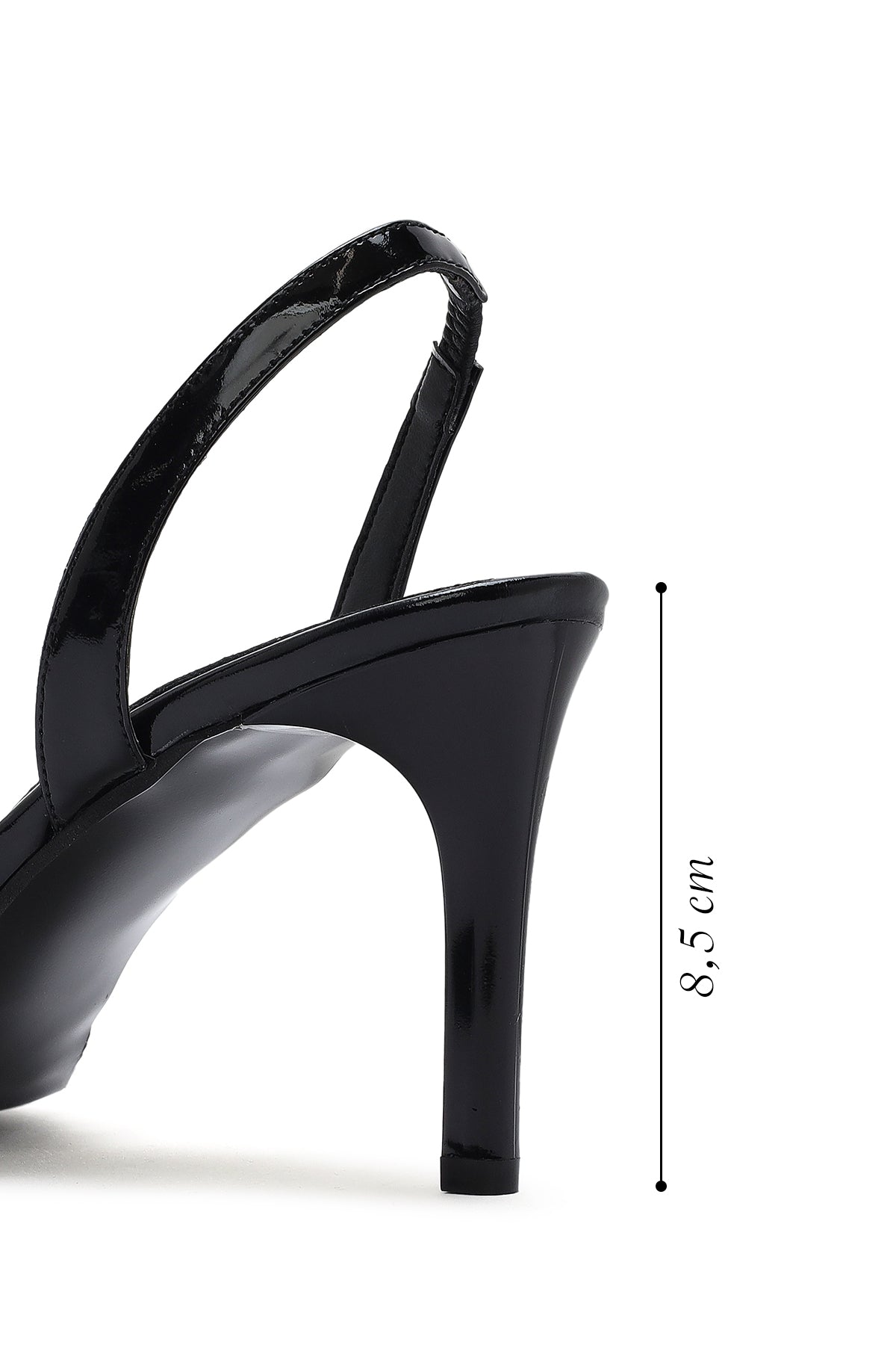 Kadın Siyah Arkası Açık Rugan Deri İnce Topuklu Ayakkabı