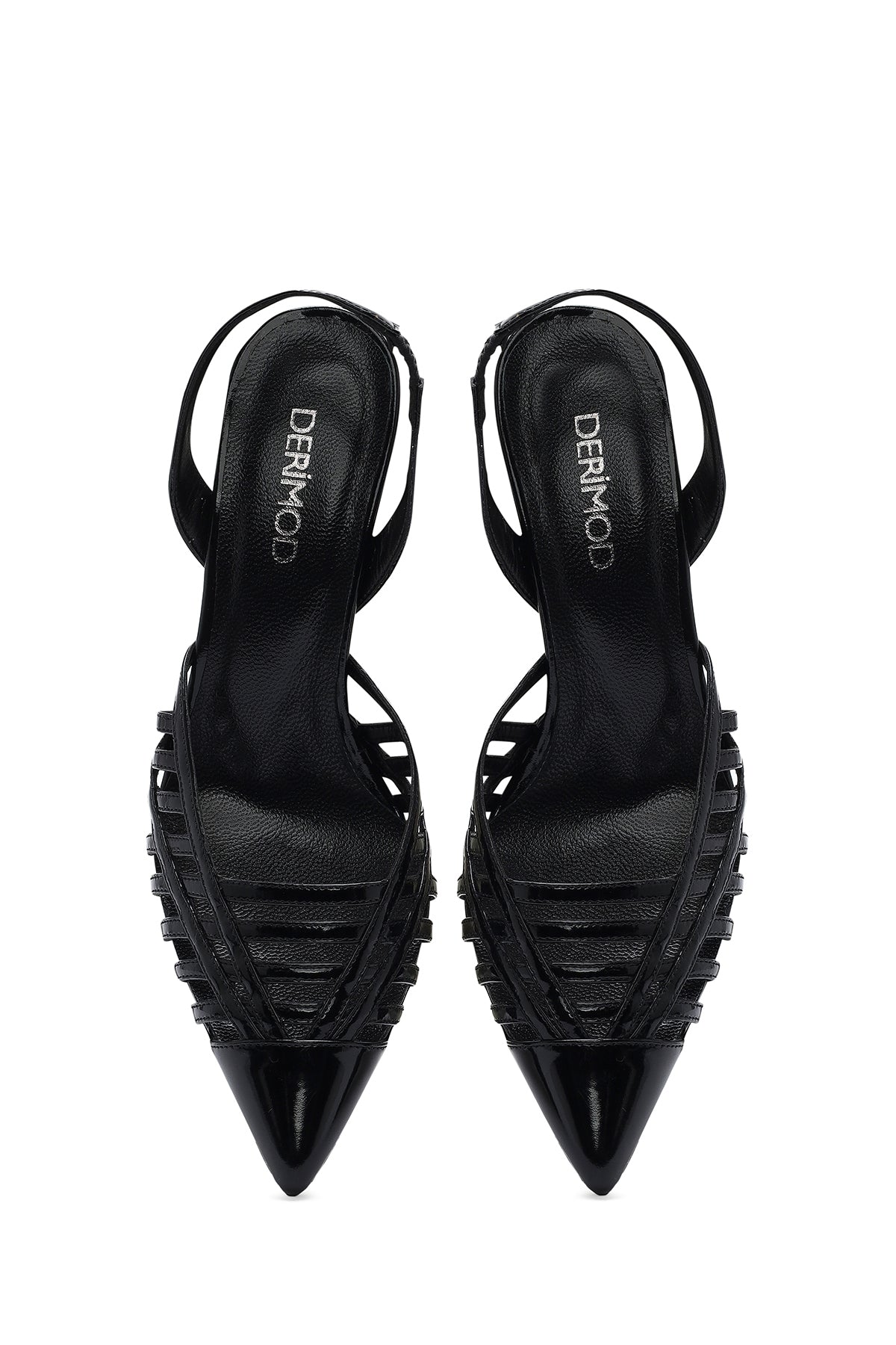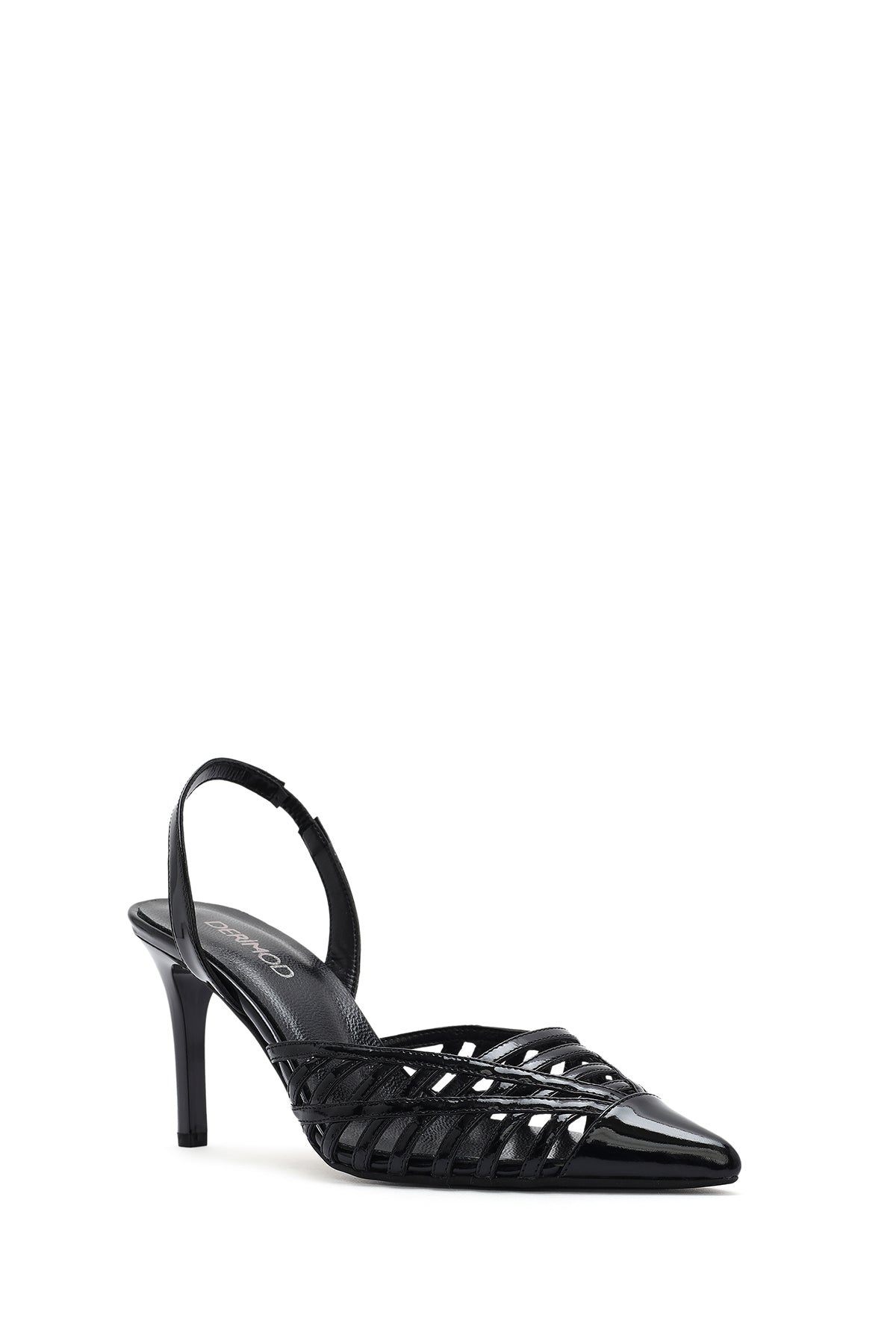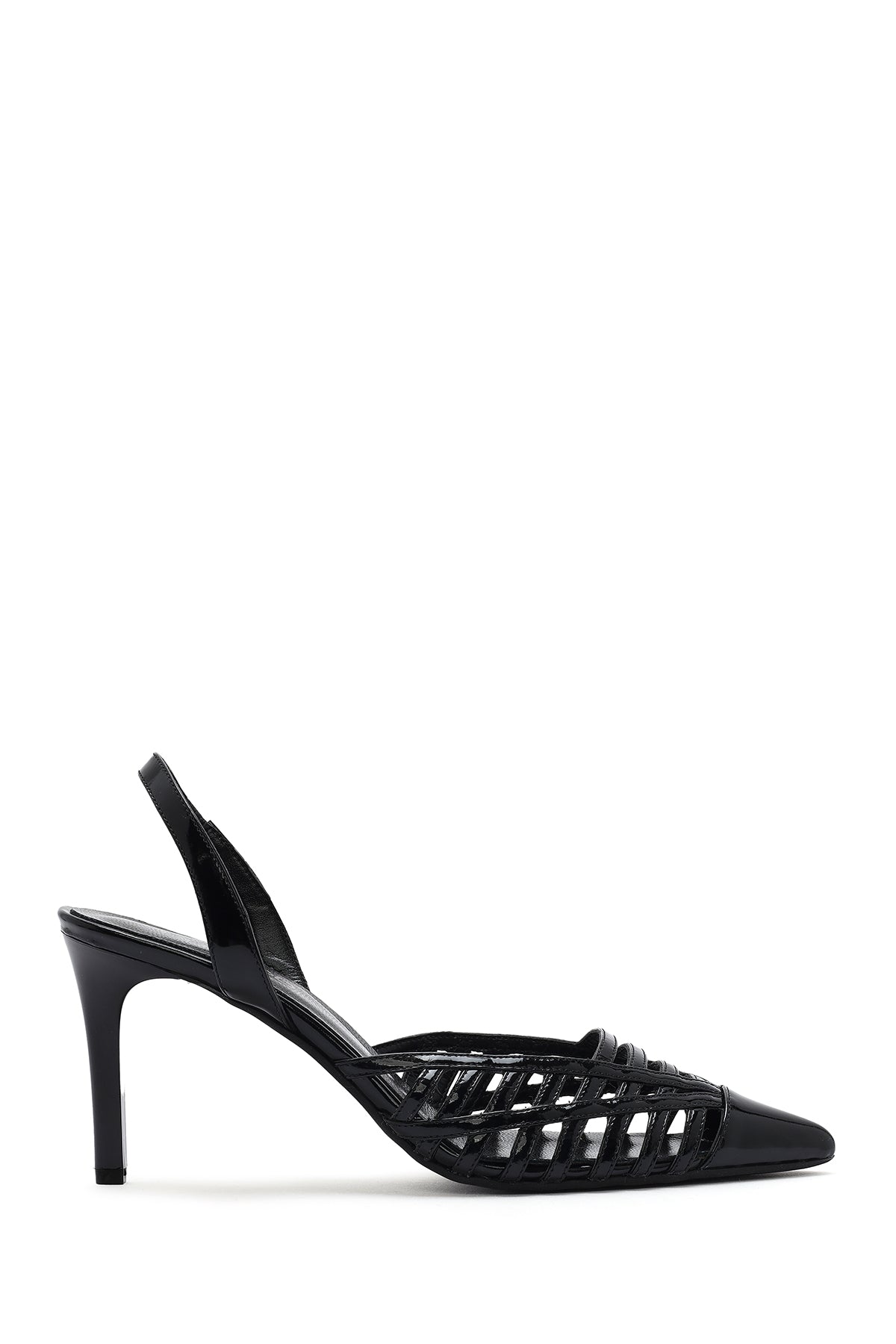 Kadın Siyah Arkası Açık Rugan Deri İnce Topuklu Ayakkabı