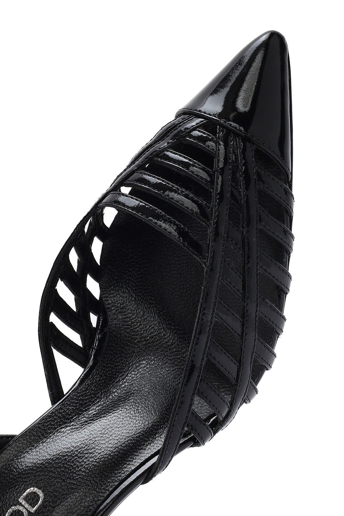 کفش زنانه مشکی چرم ورنی پاشنه نازک پشت باز دری مد