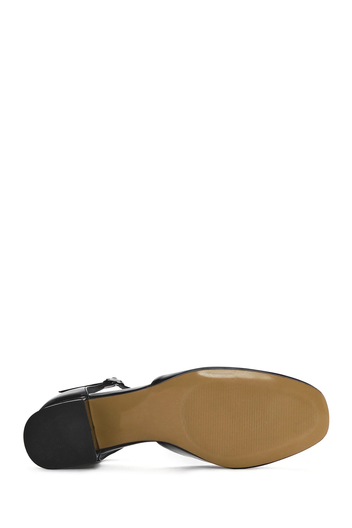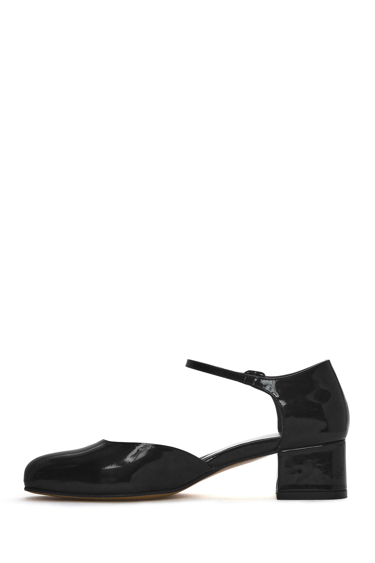 Kadın Siyah Bilekten Tokalı Kısa Kalın Topuklu Rugan Deri Ayakkabı