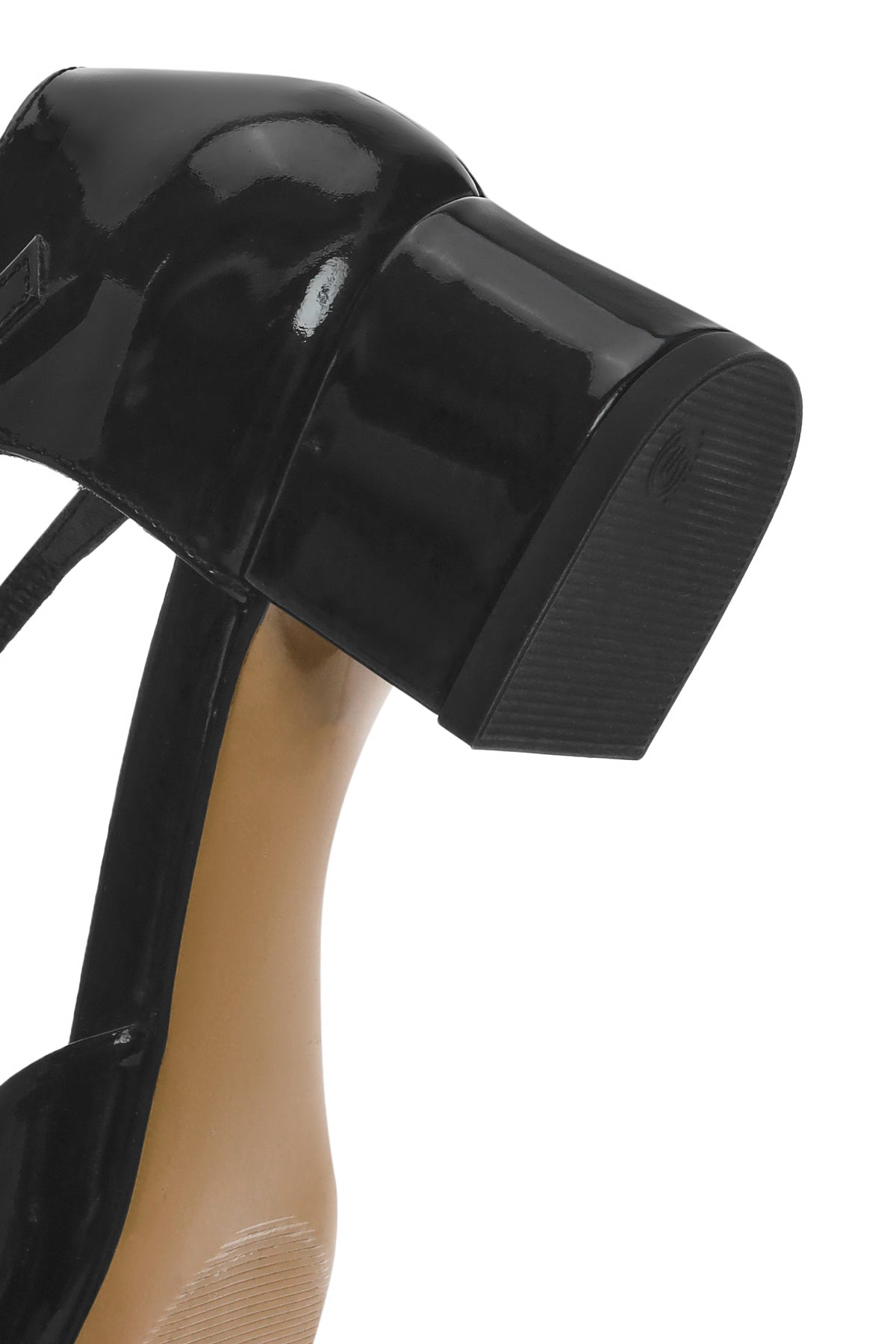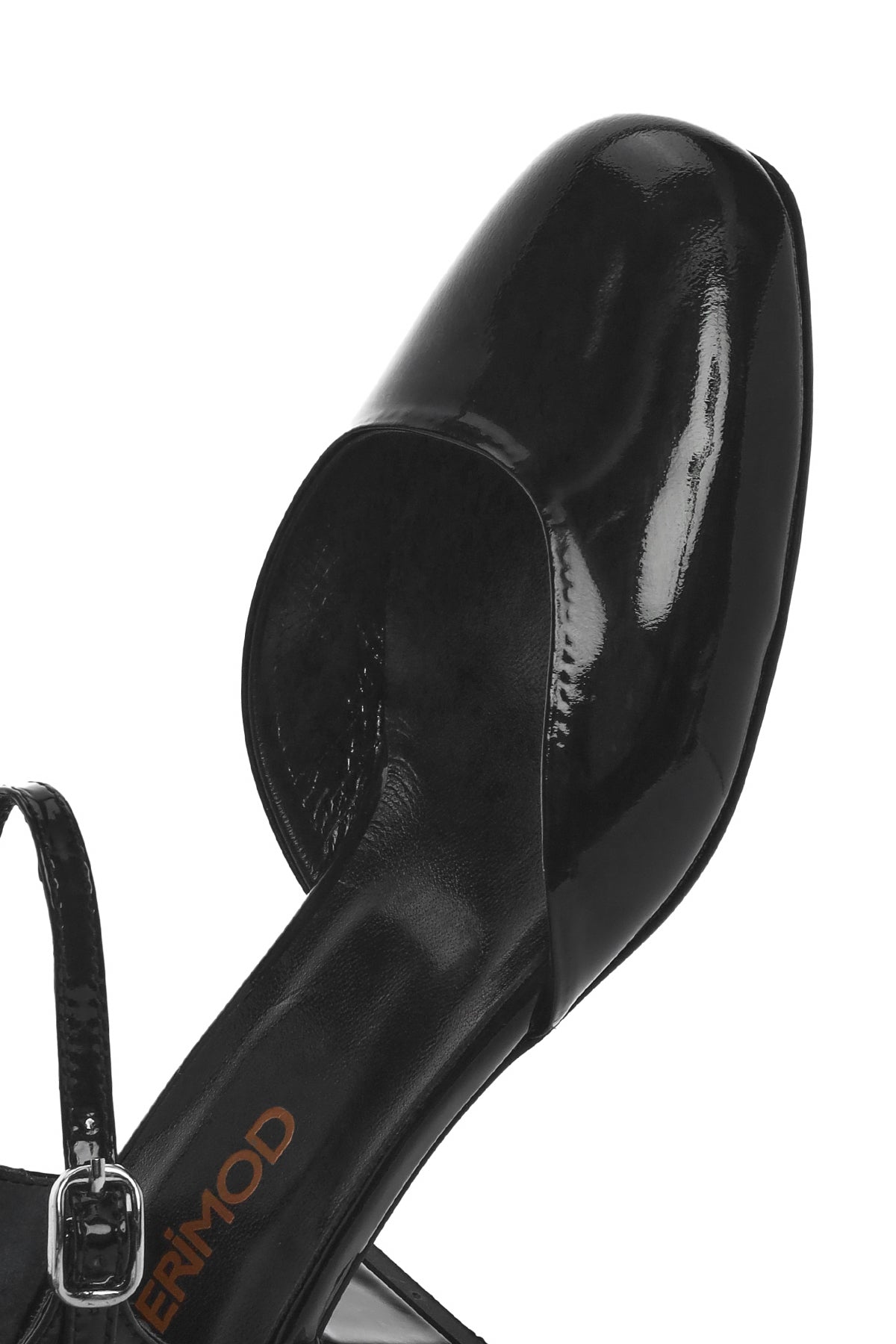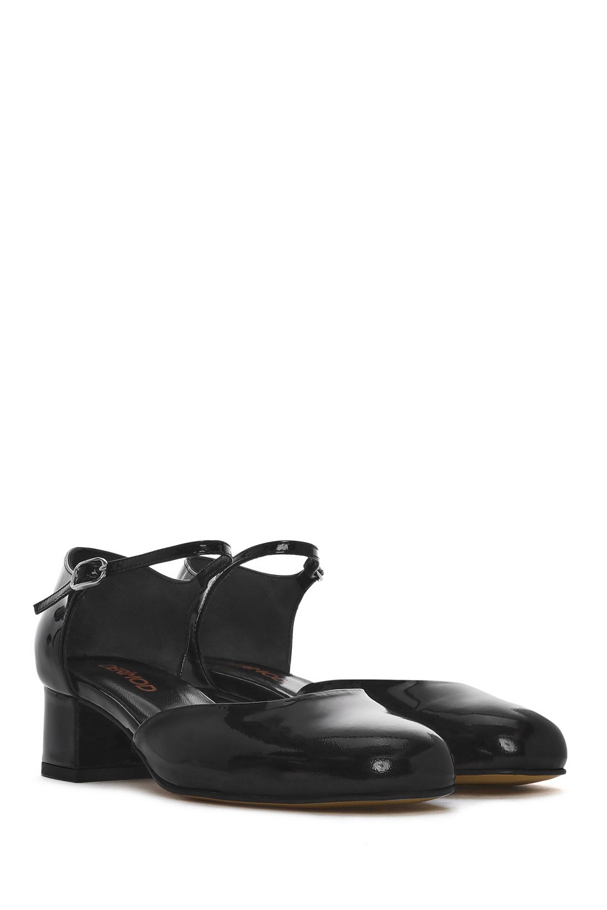 کفش زنانه مشکی چرم ورنی پاشنهضخیم کوتاه بنددار دری مد