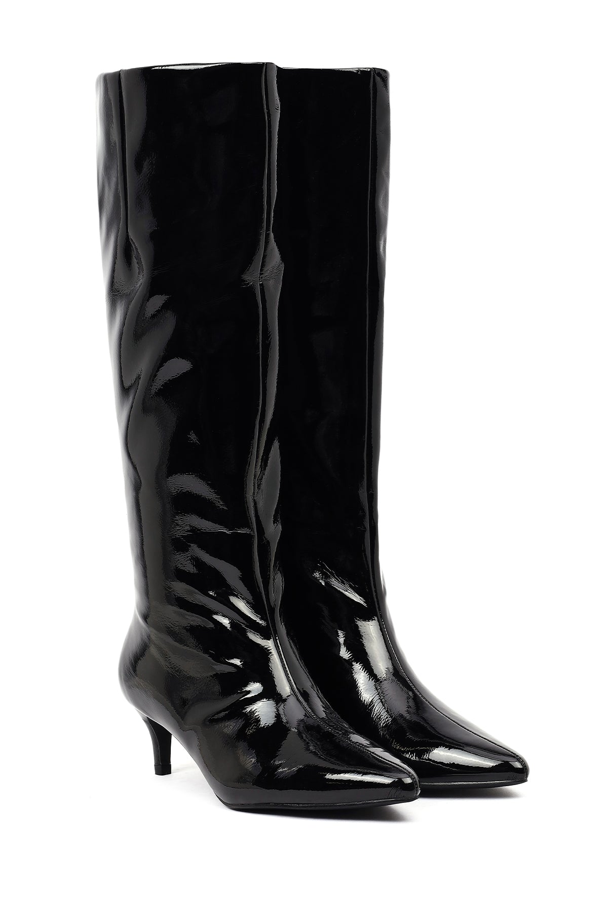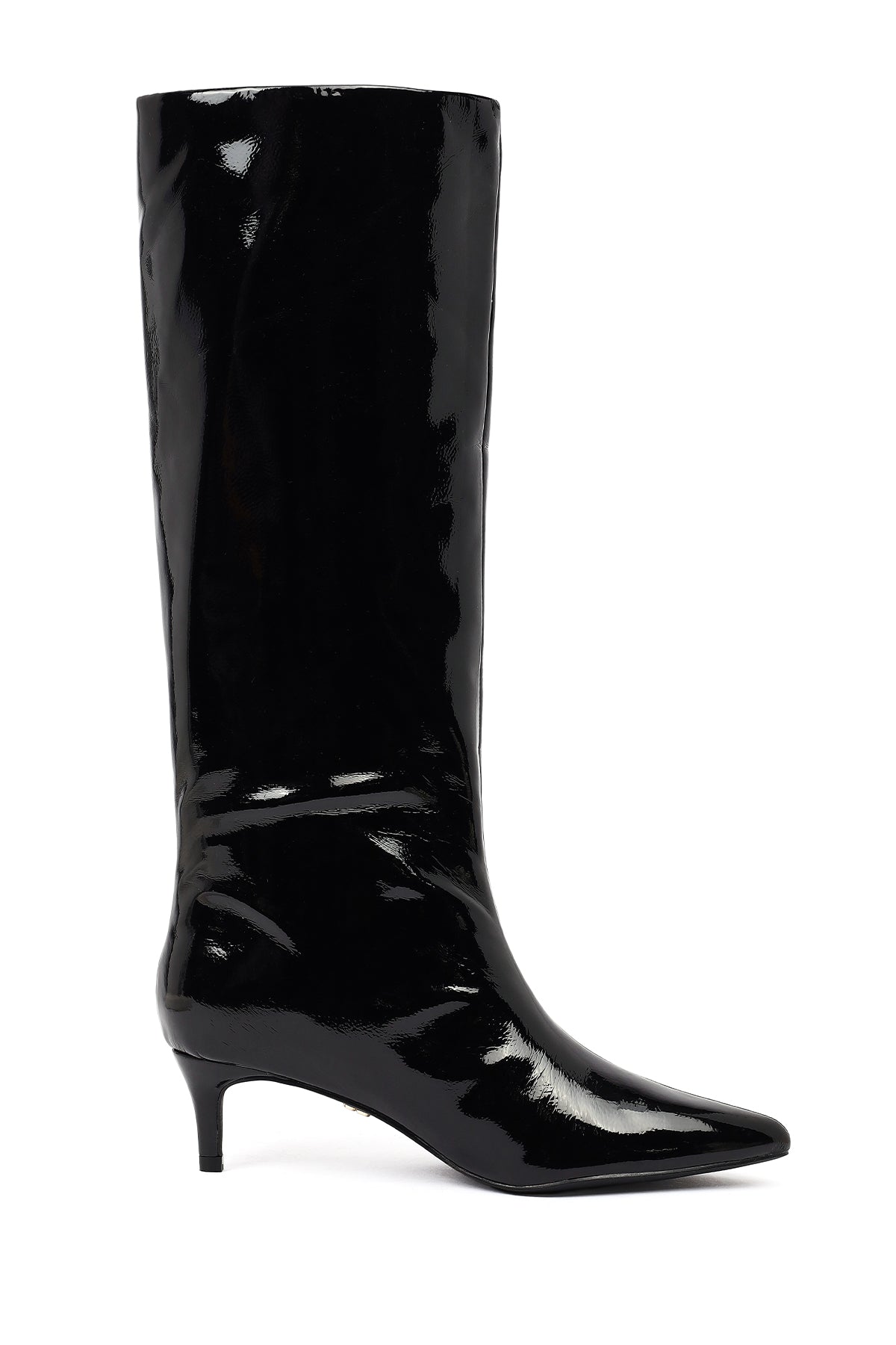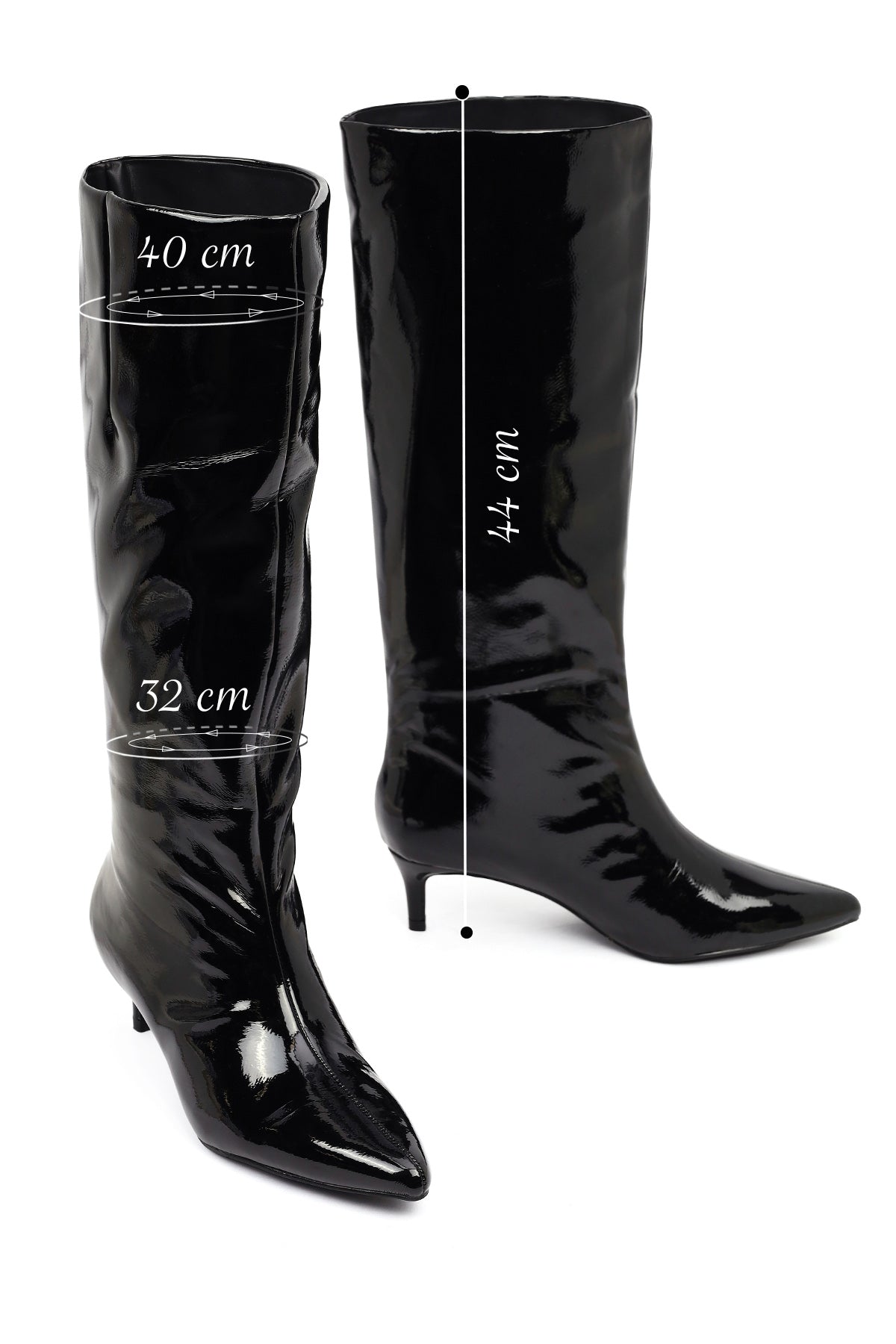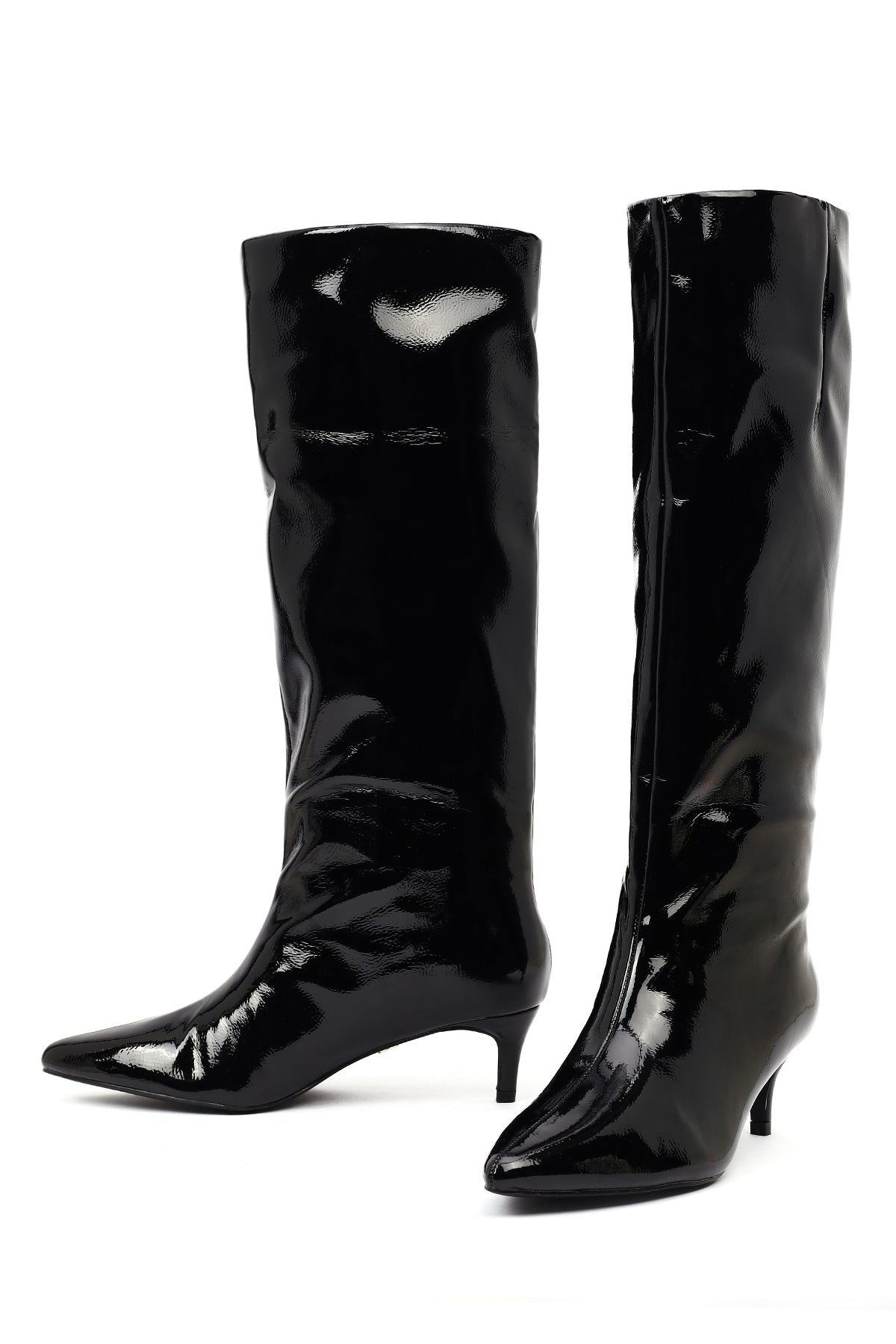 چکمه ورنی زنانه مشکی پاشنه نازک کوتاه دریمد