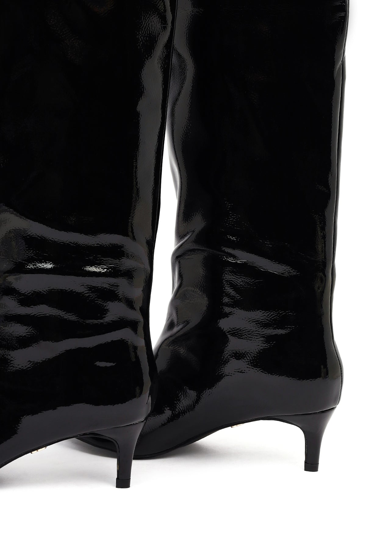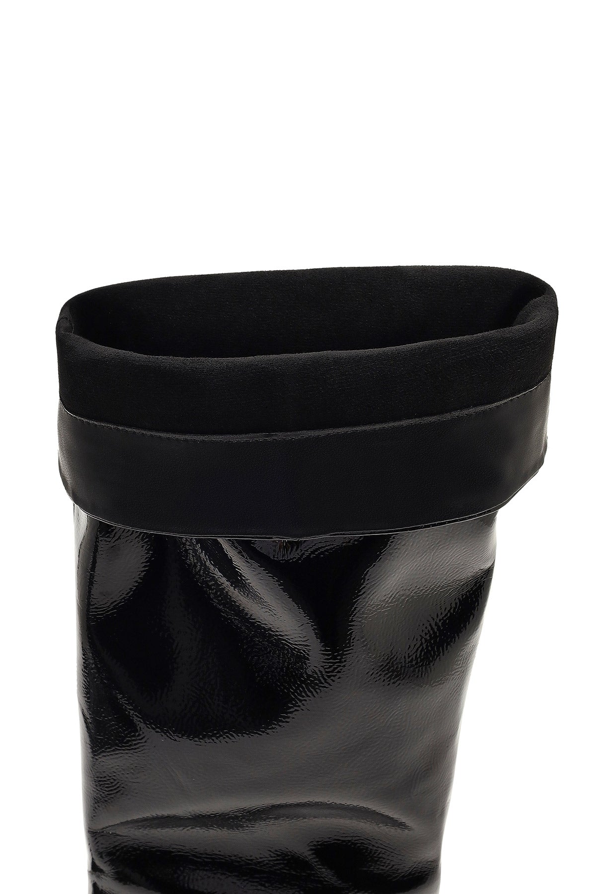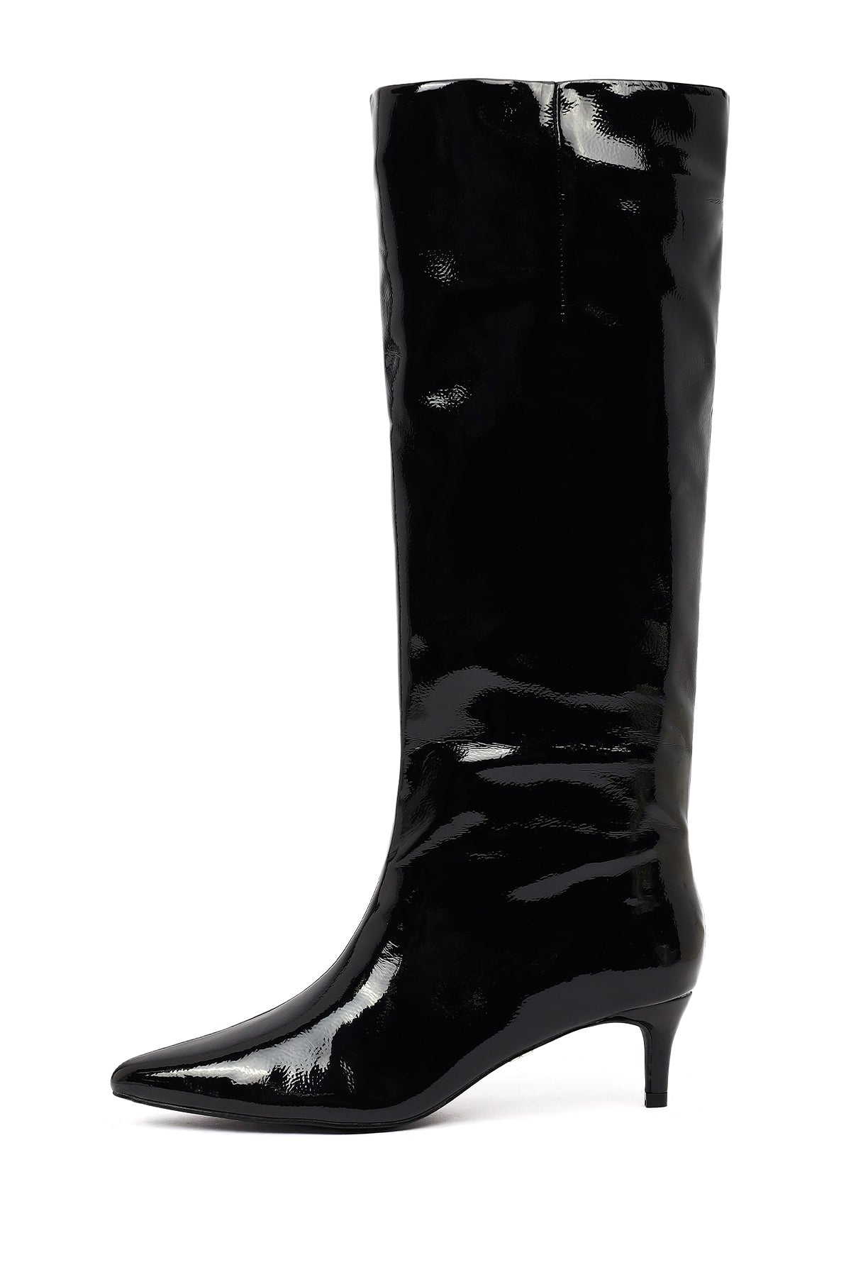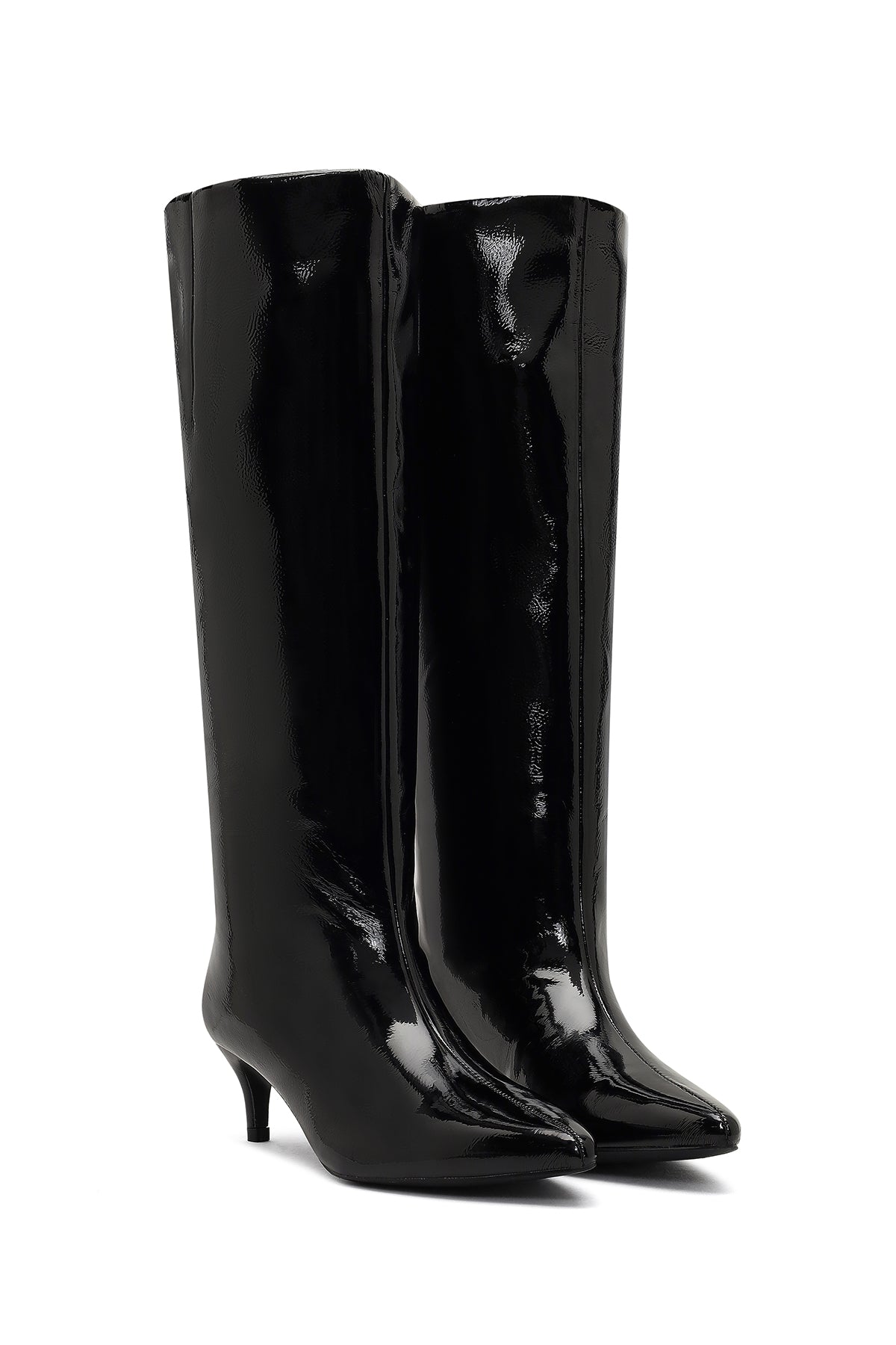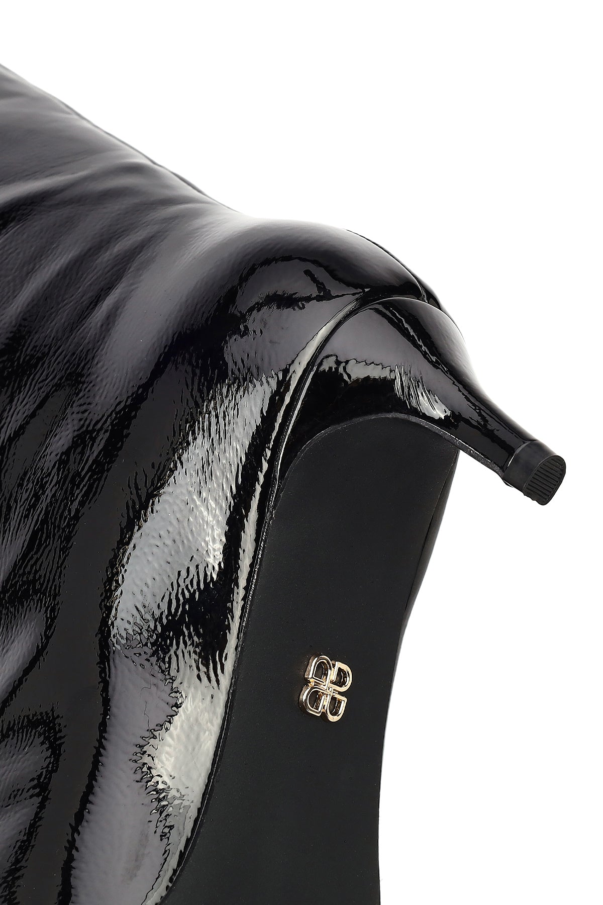 چکمه ورنی زنانه مشکی پاشنه نازک کوتاه دریمد