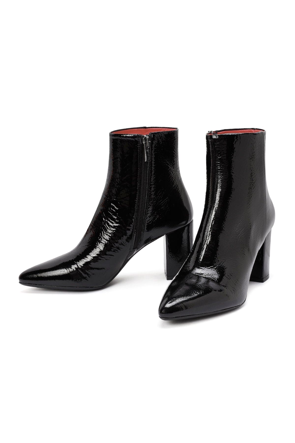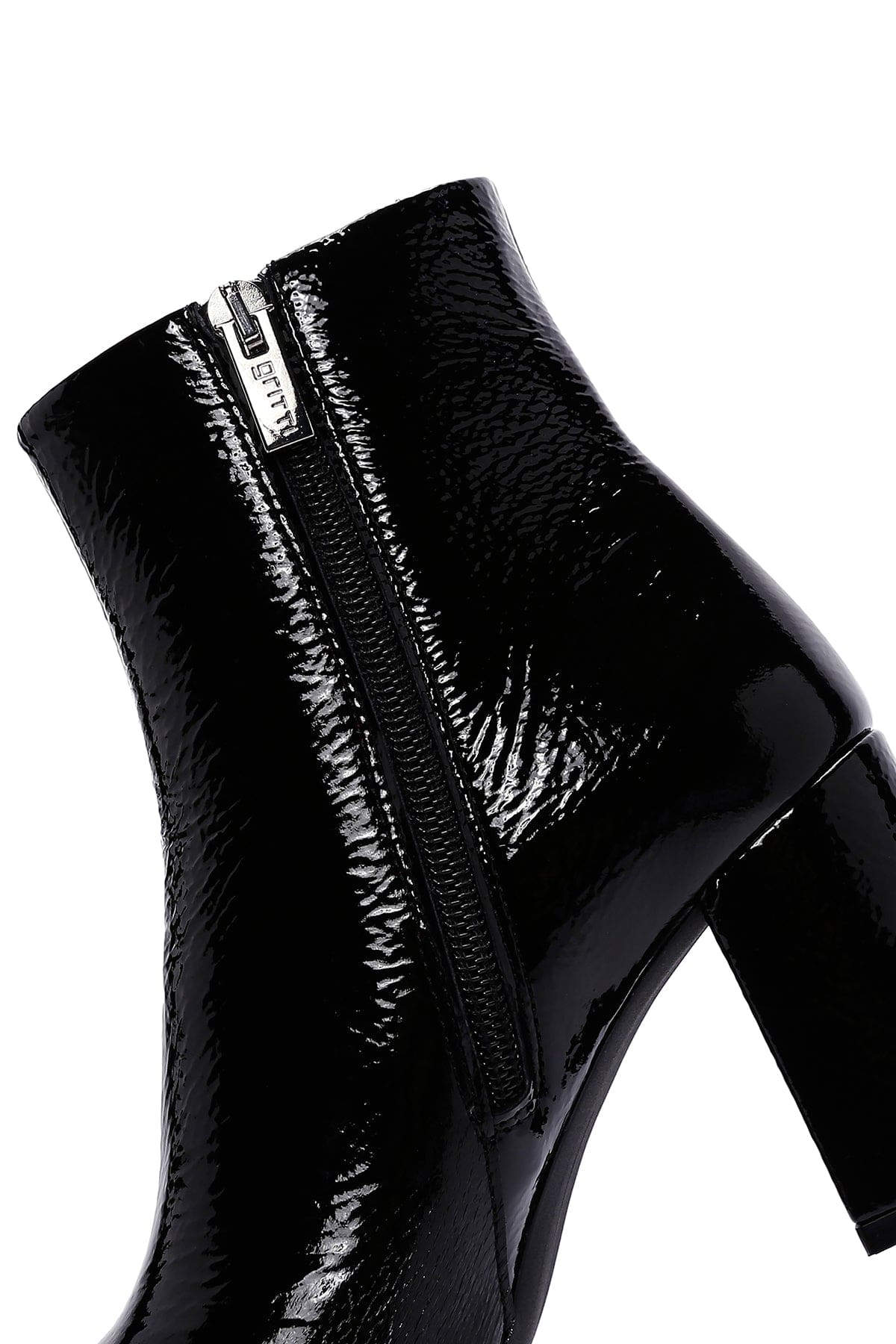 زیبا استایلر / فروشگاه / زنانه / کفش زنانه / بوت و نیم بوت زنانه / بوت زنانه مشکی چرمی براق زیپ‌دار پاشنه ضخیم دری مد