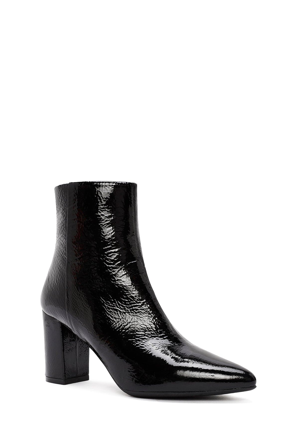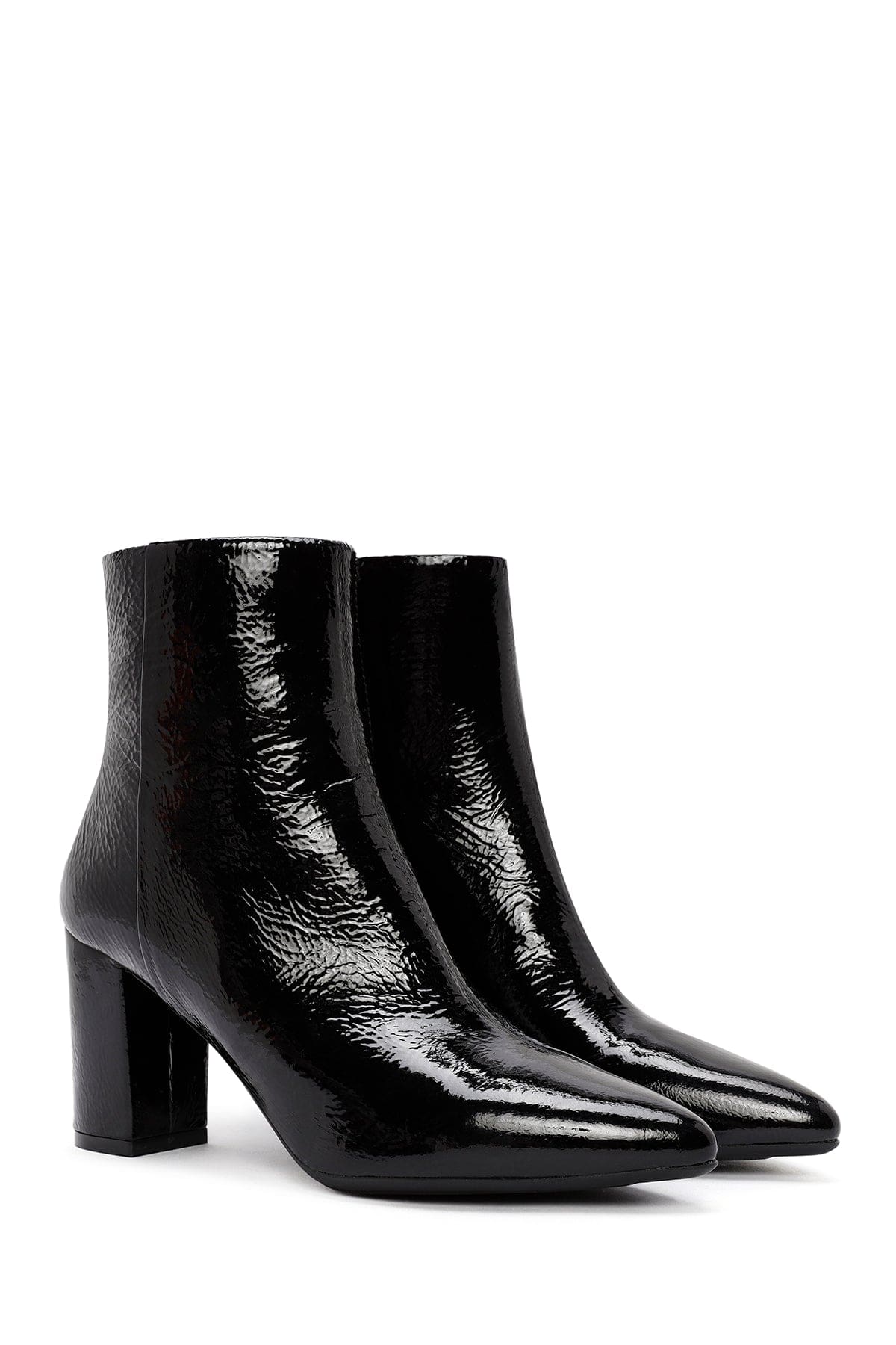 Derimod Gritti Kadın Siyah Fermuarlı Kalın Topuklu Rugan Deri Bot
