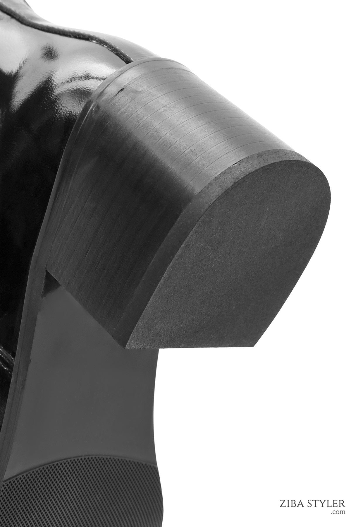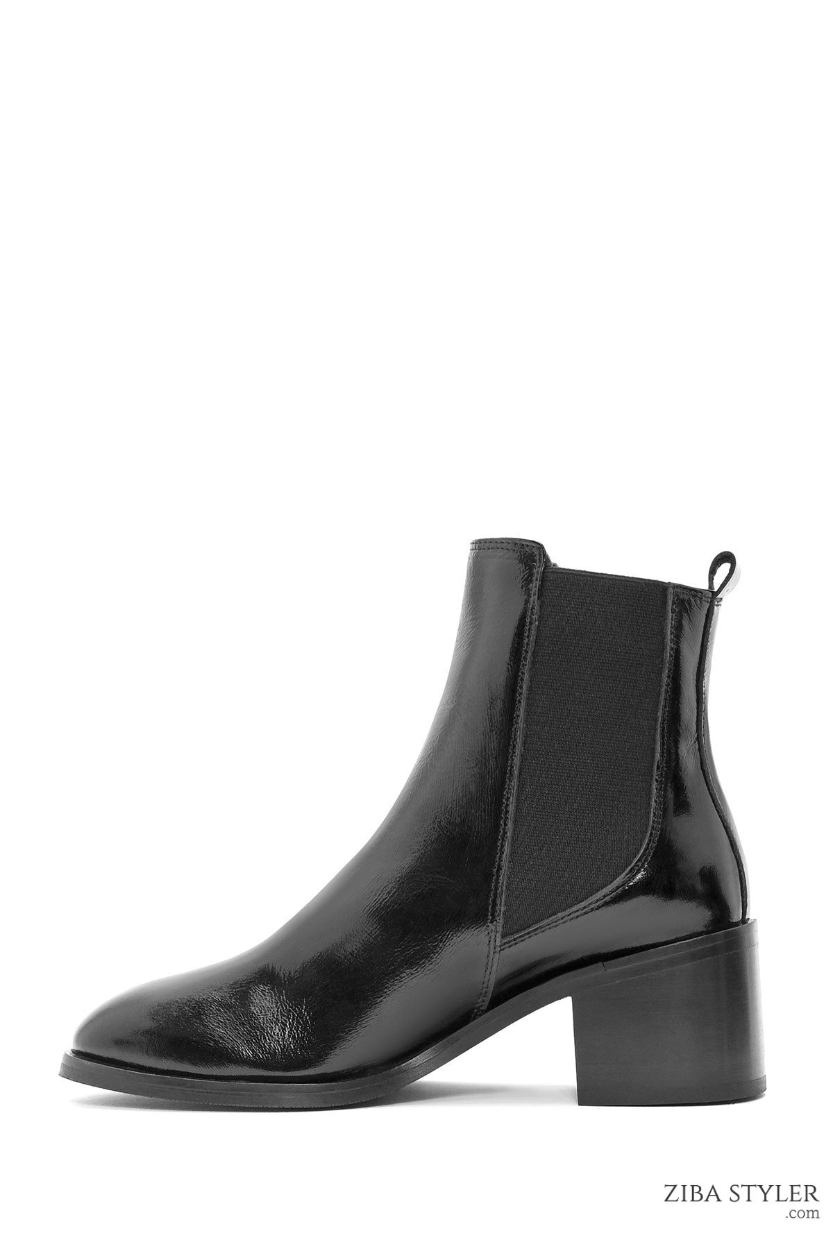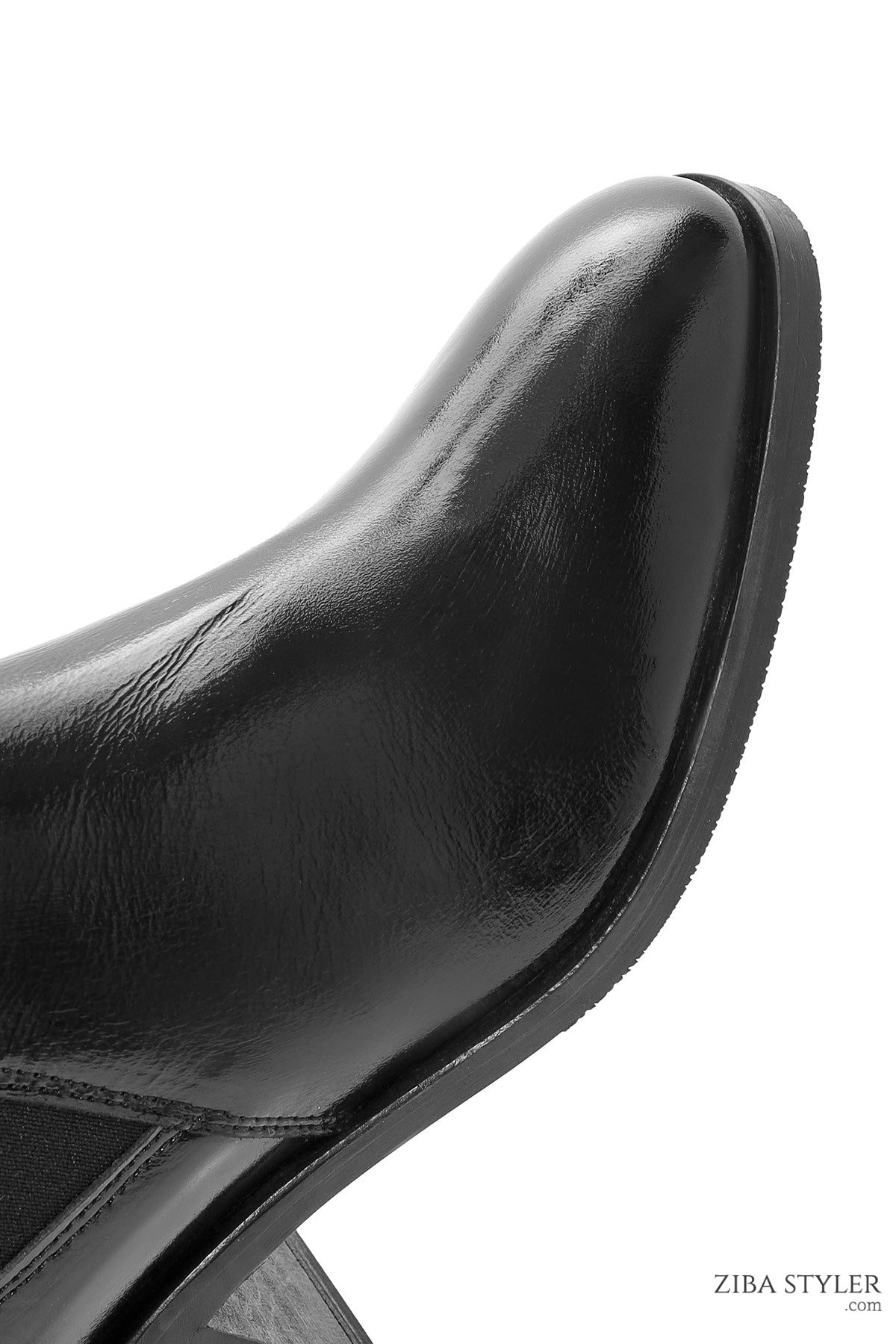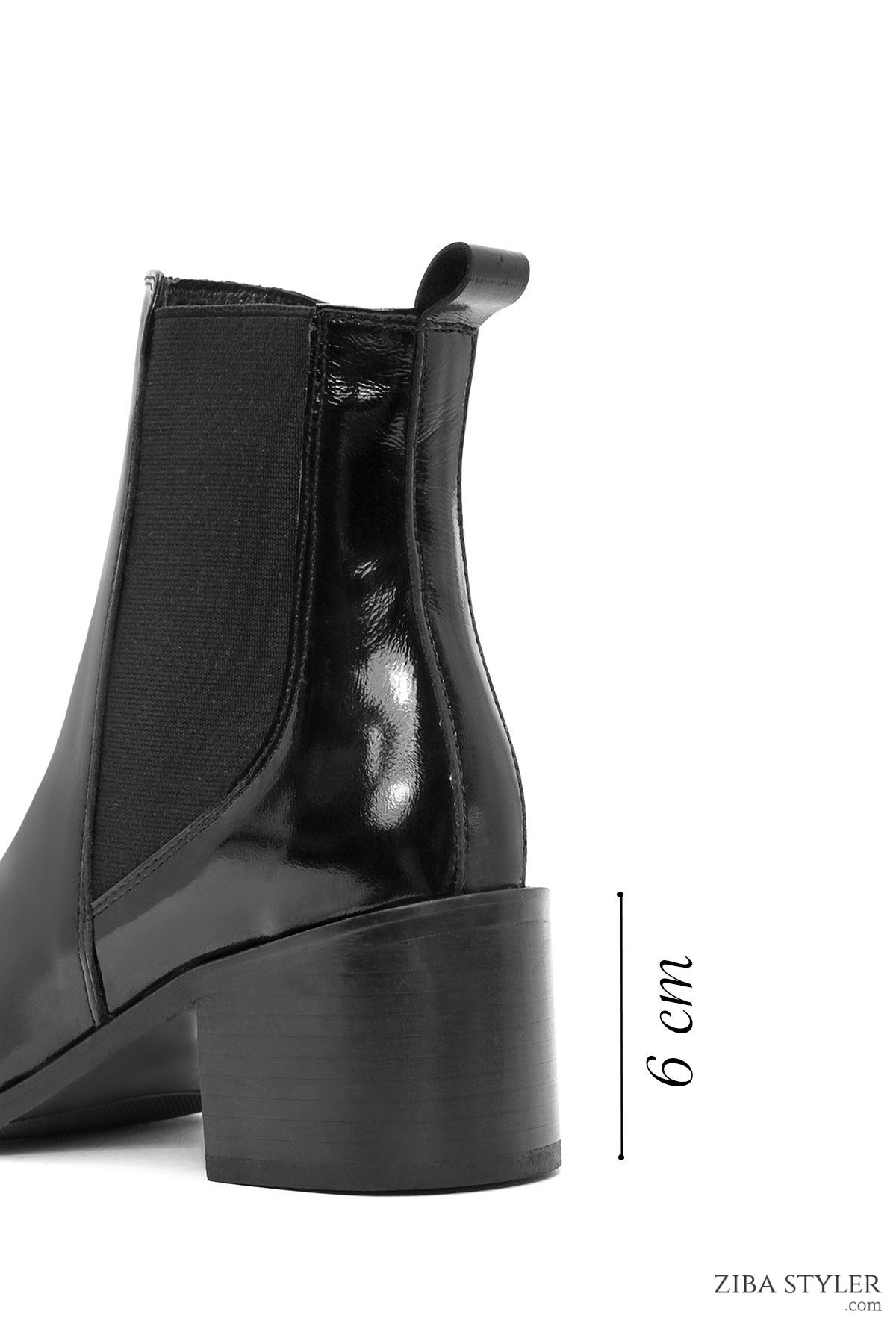 بوت چلسی زنانه چرمی مشکی براق پاشنه ضخیم دری مد