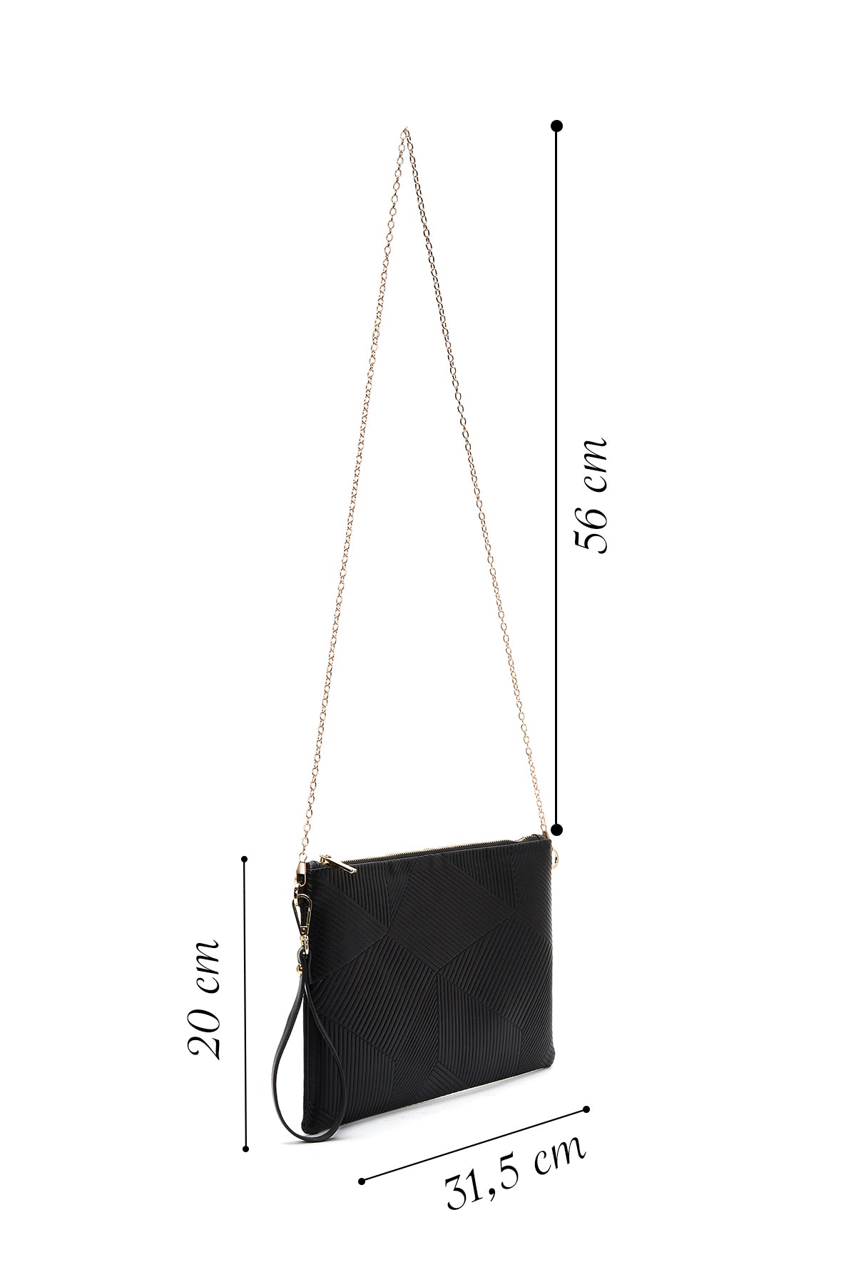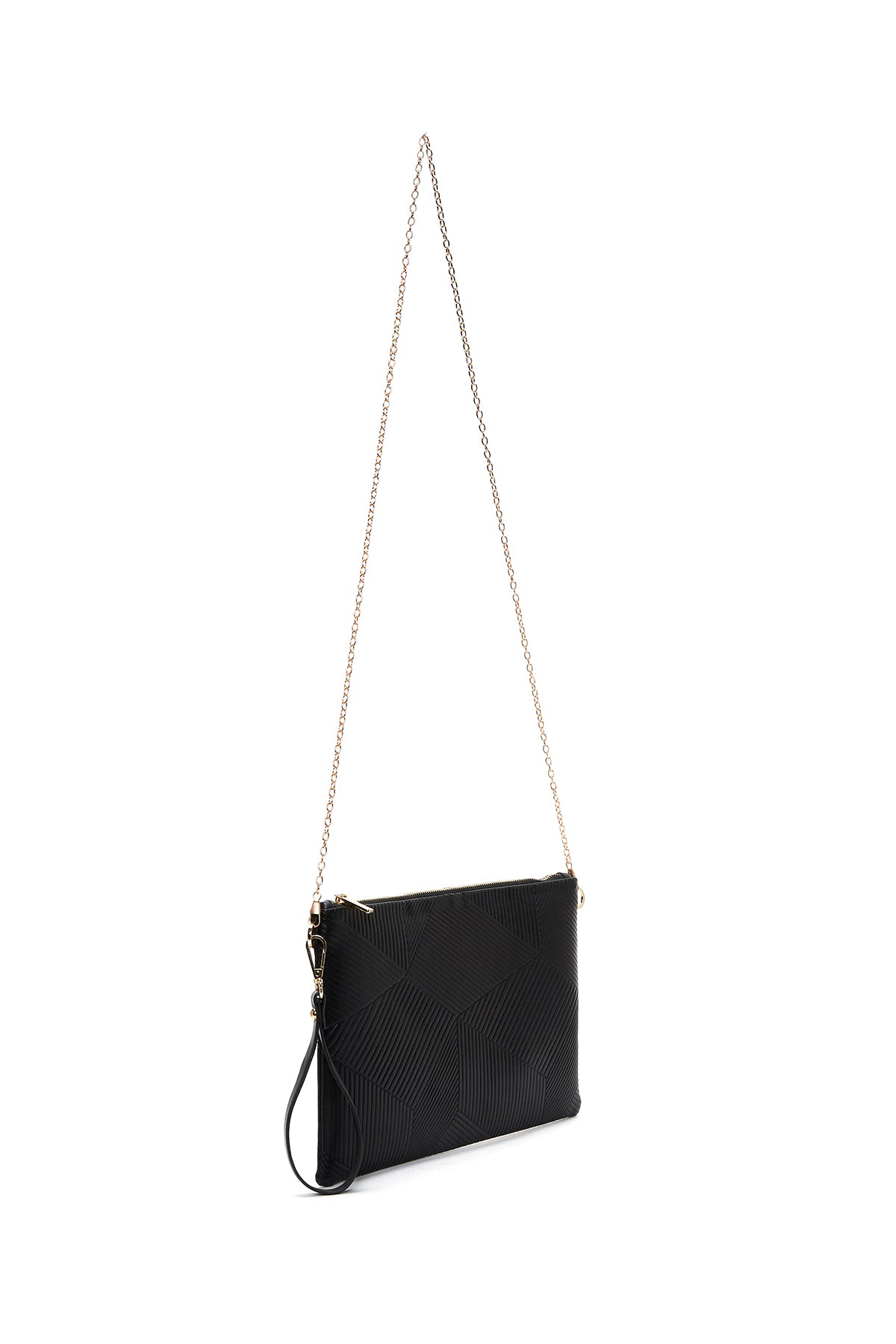 Kadın Siyah Zincir Askılı Desenli Portföy Çanta