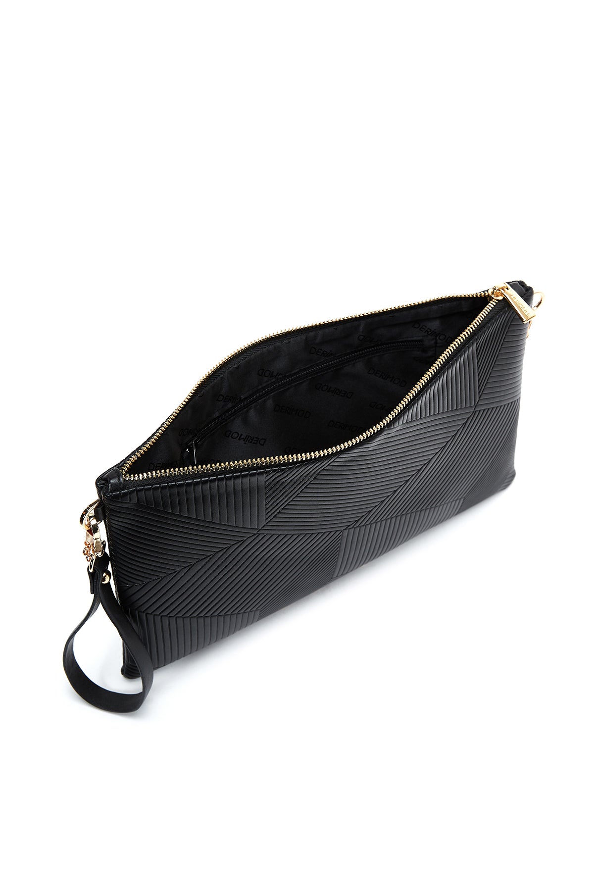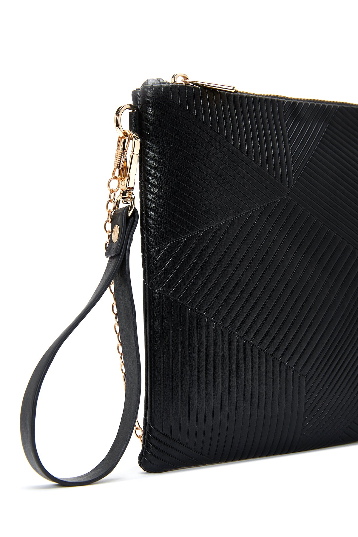 کیف مجلسی زنانه مشکی طرحدار با بند زنجیری دری مد