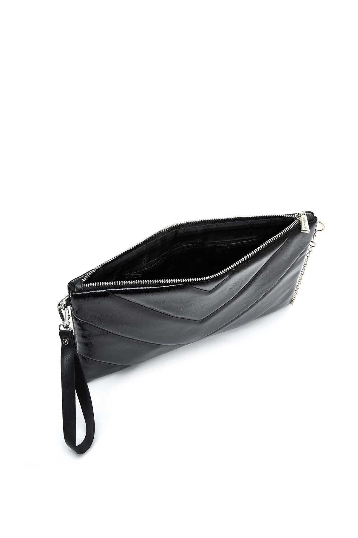 کیف مجلسی زنانه مشکی طرحدار با بند زنجیری دری مد