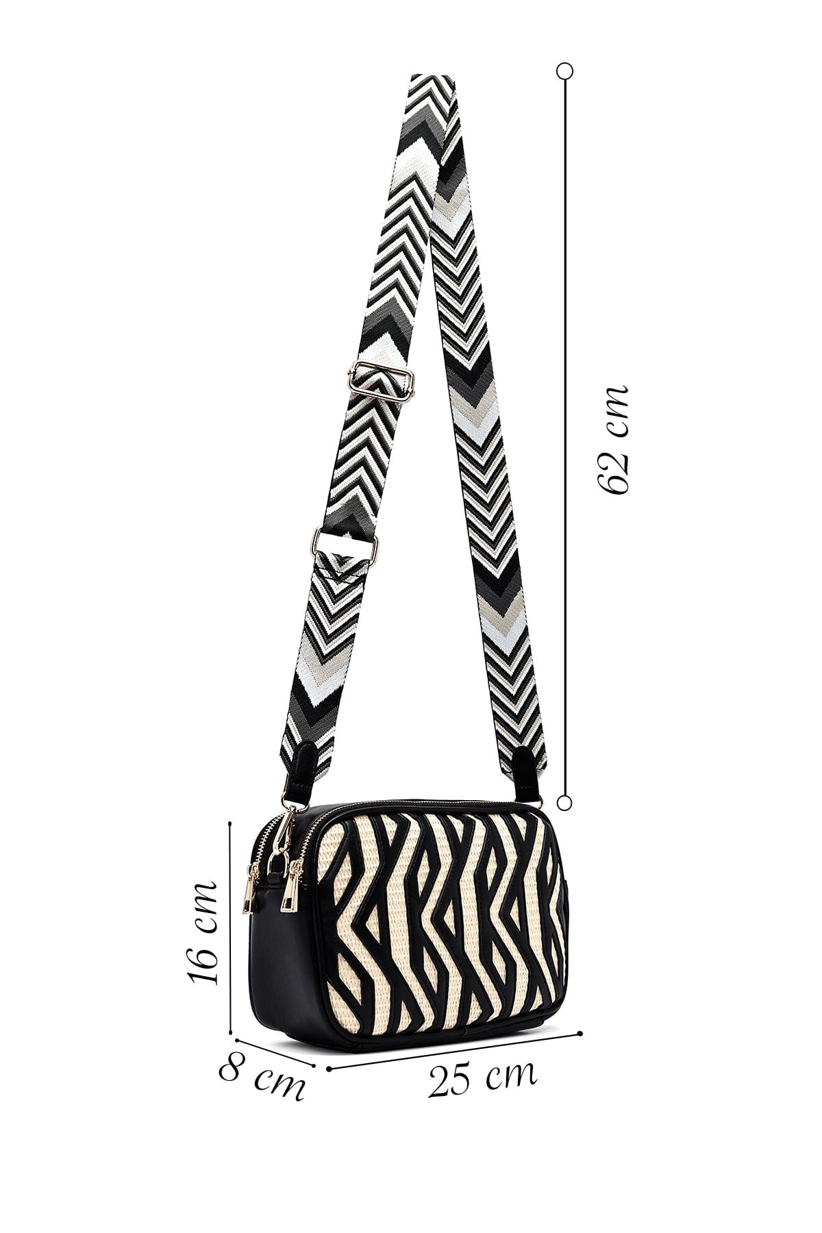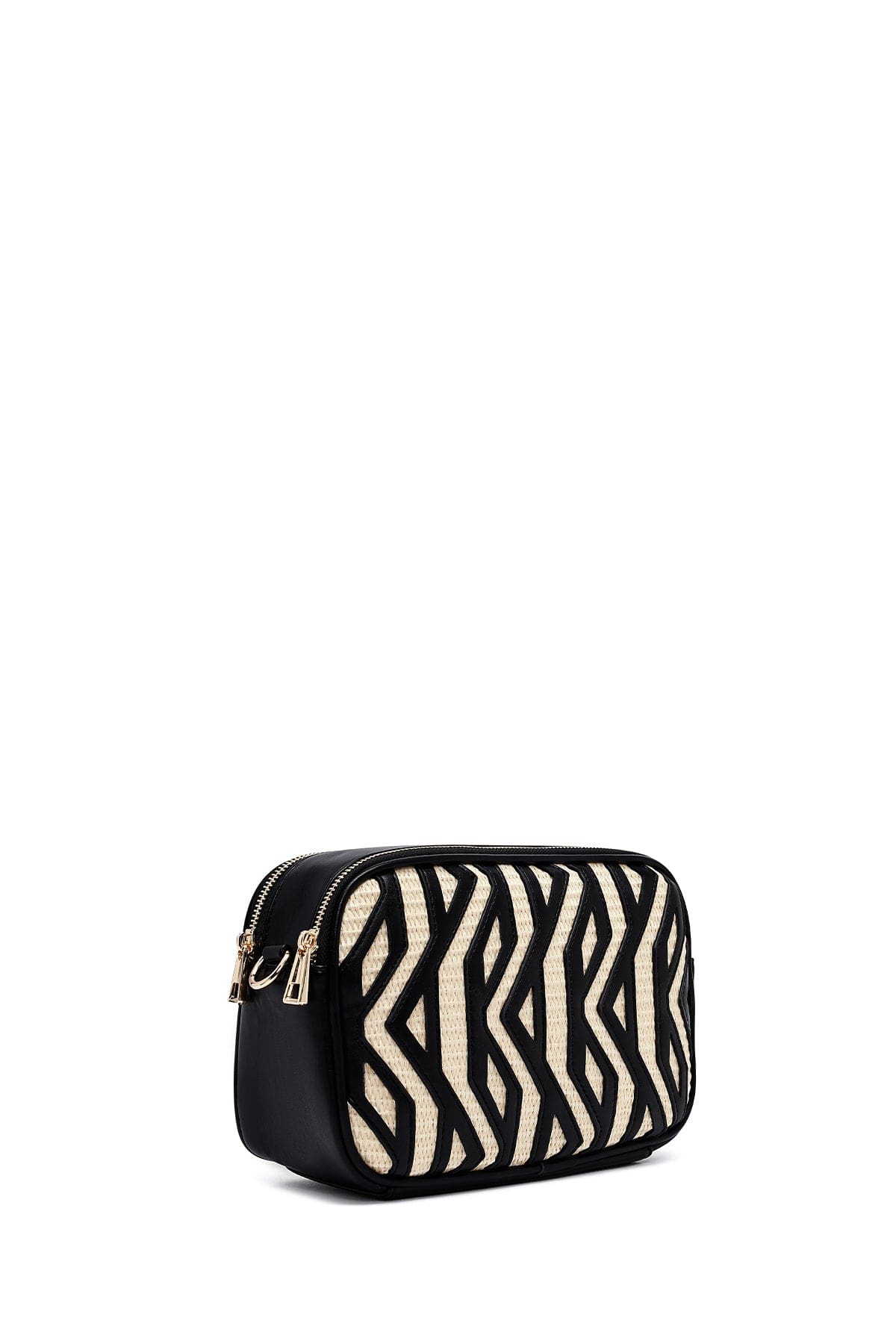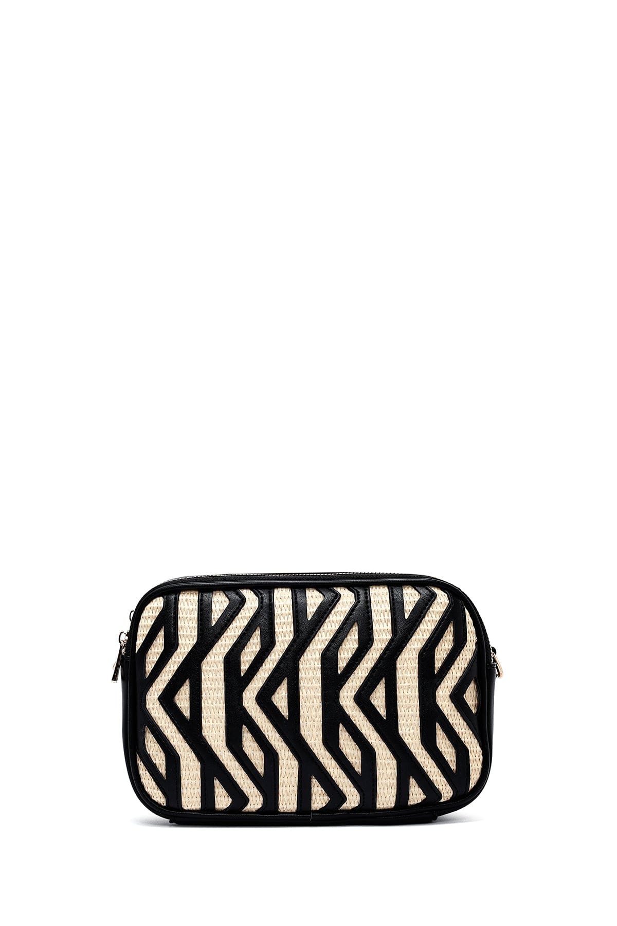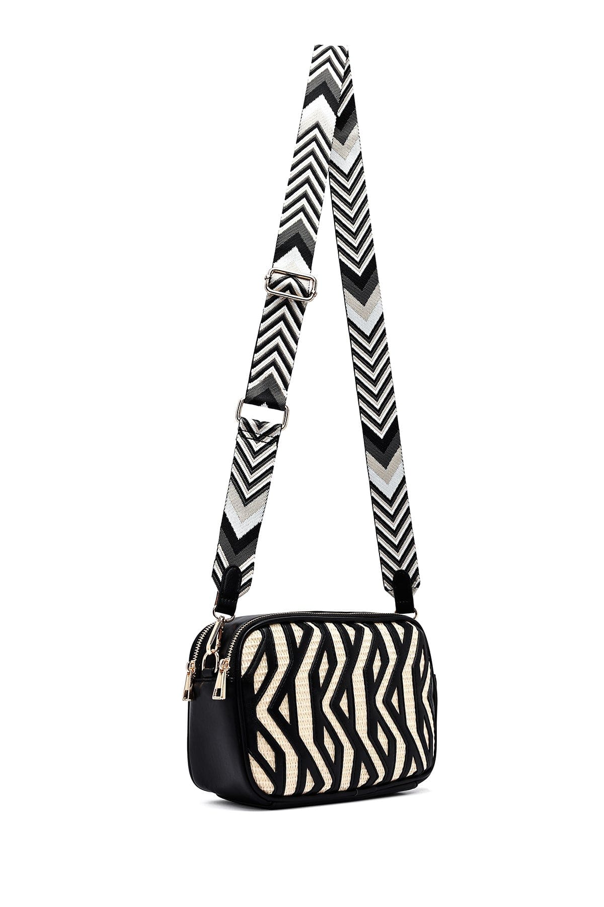 Kadın Siyah Uzun Askılı Desenli Çapraz Çanta