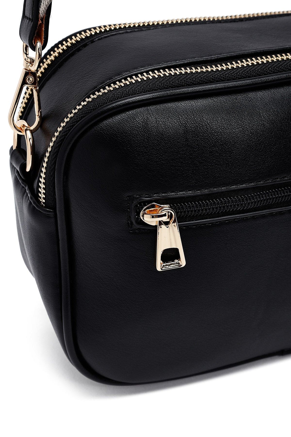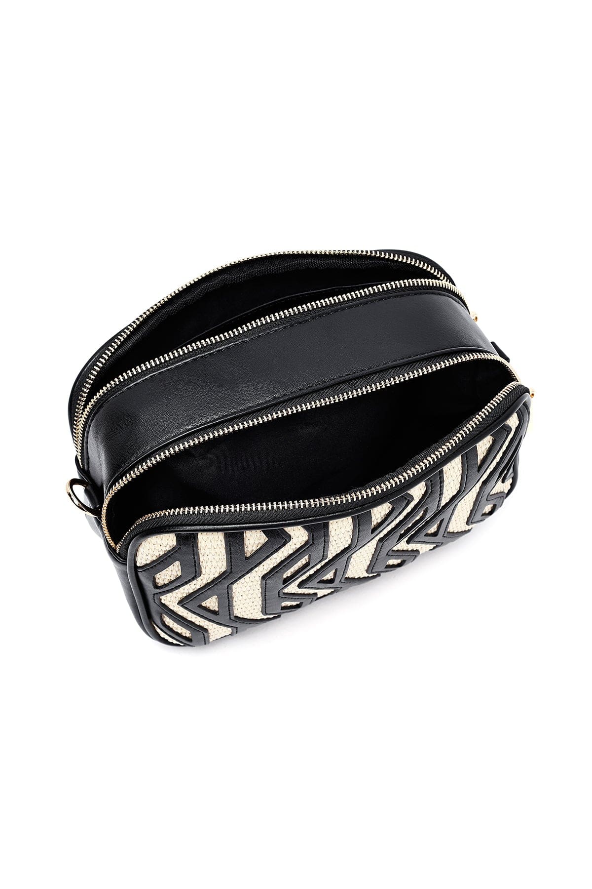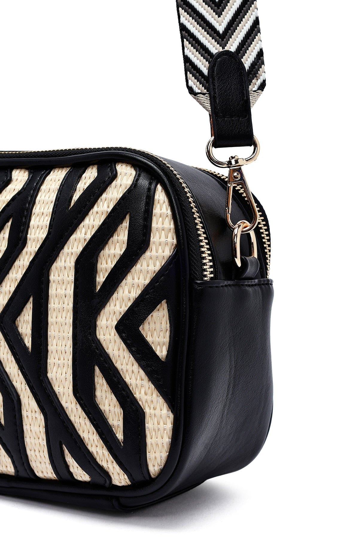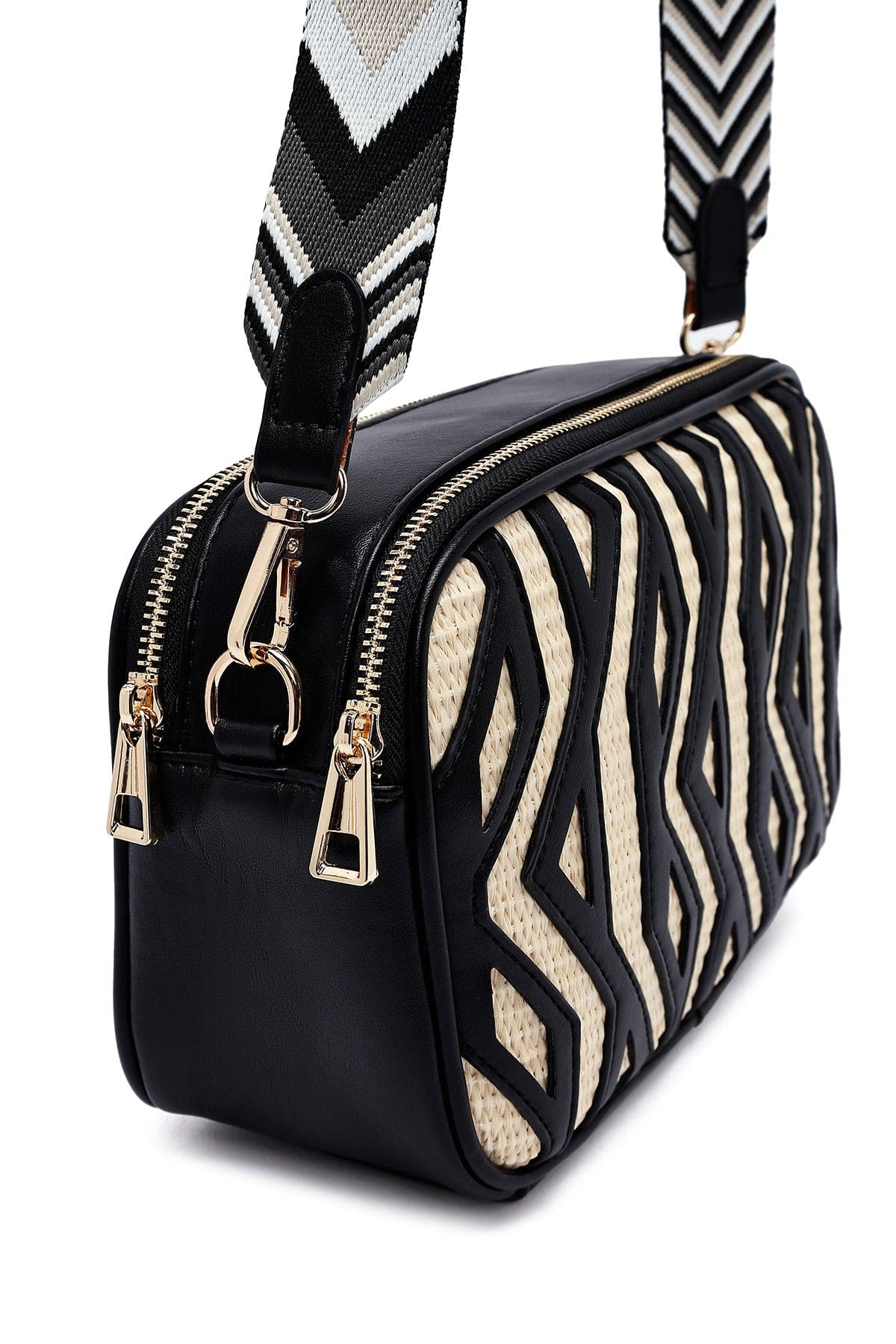 Kadın Siyah Uzun Askılı Desenli Çapraz Çanta