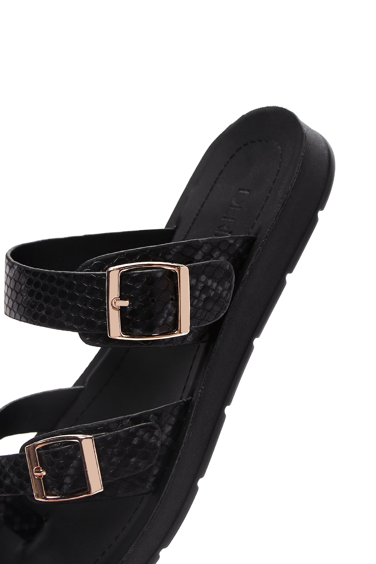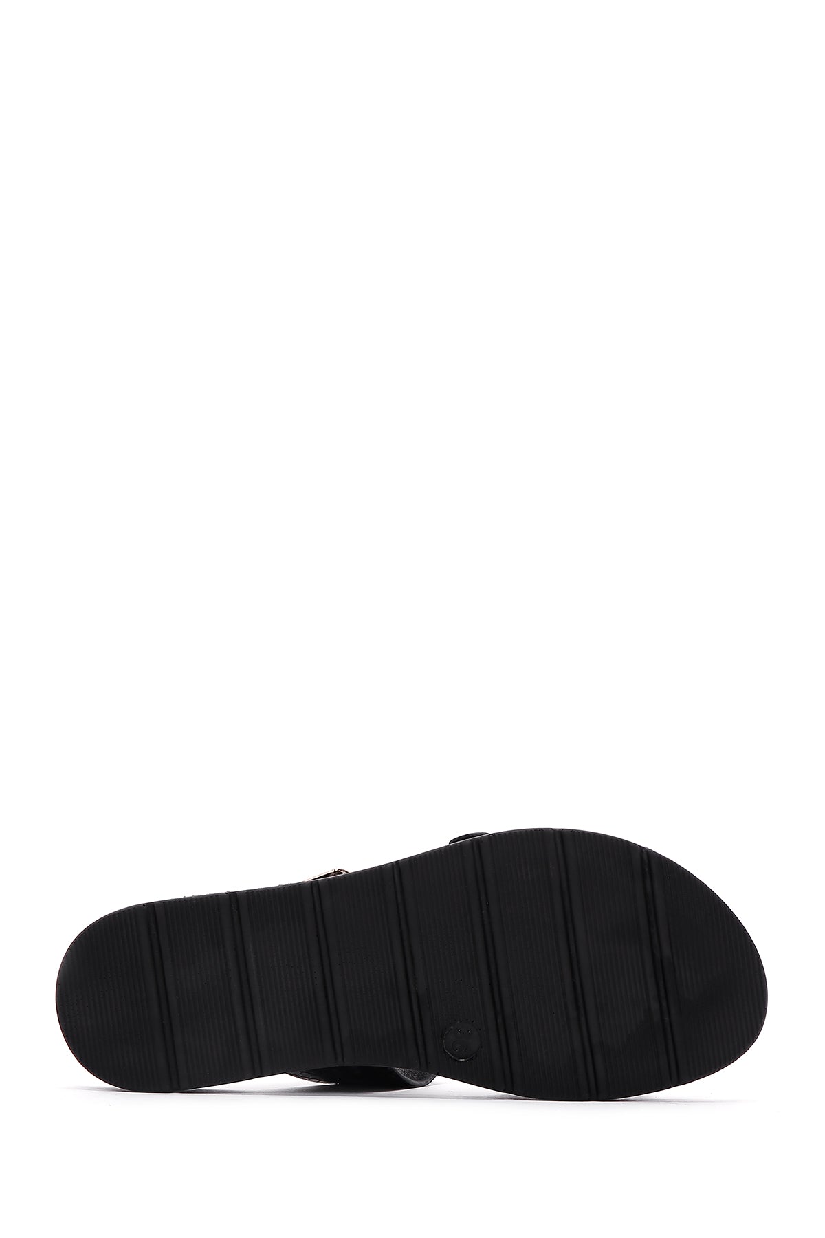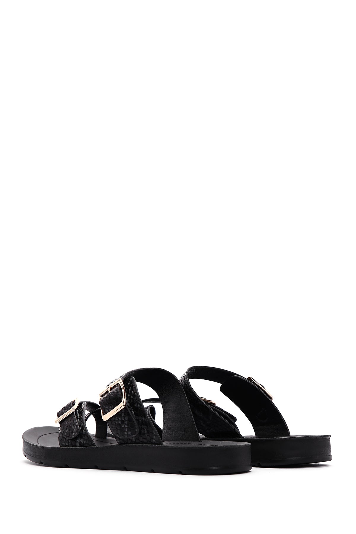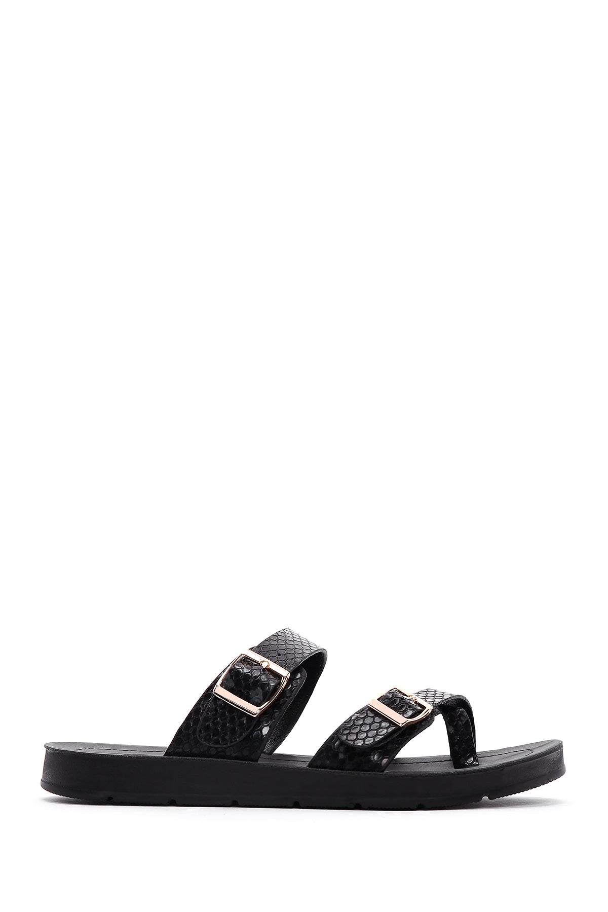 Kadın Siyah Çift Tokalı Desenli Terlik