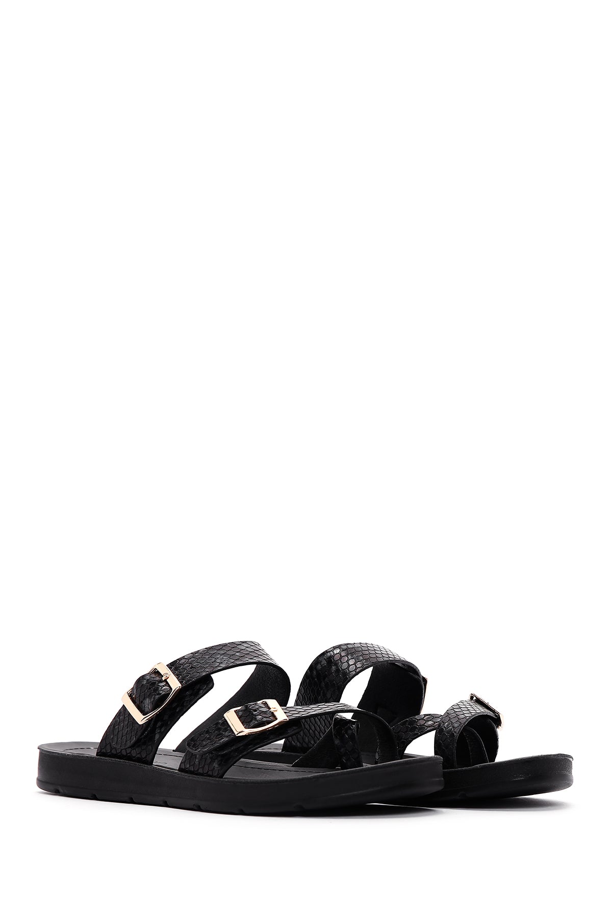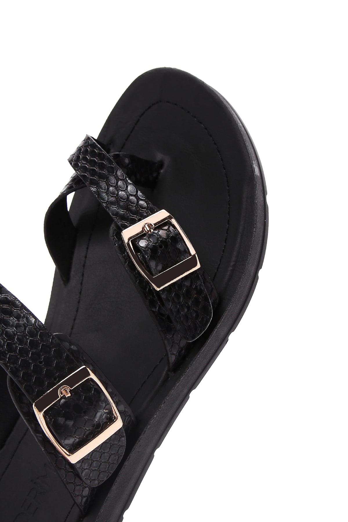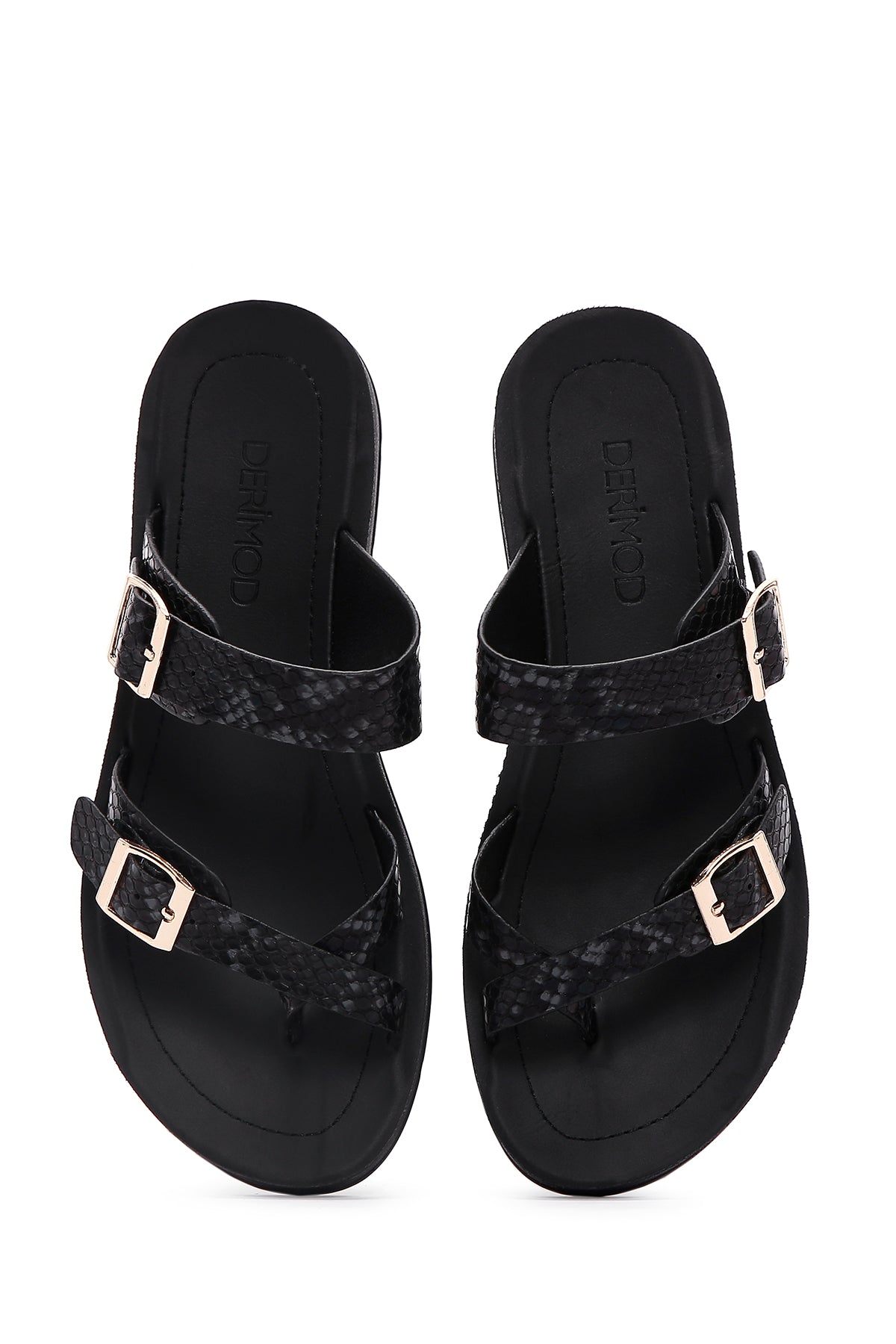 دمپایی زنانه مشکی طرحدار سگکدار دری مد