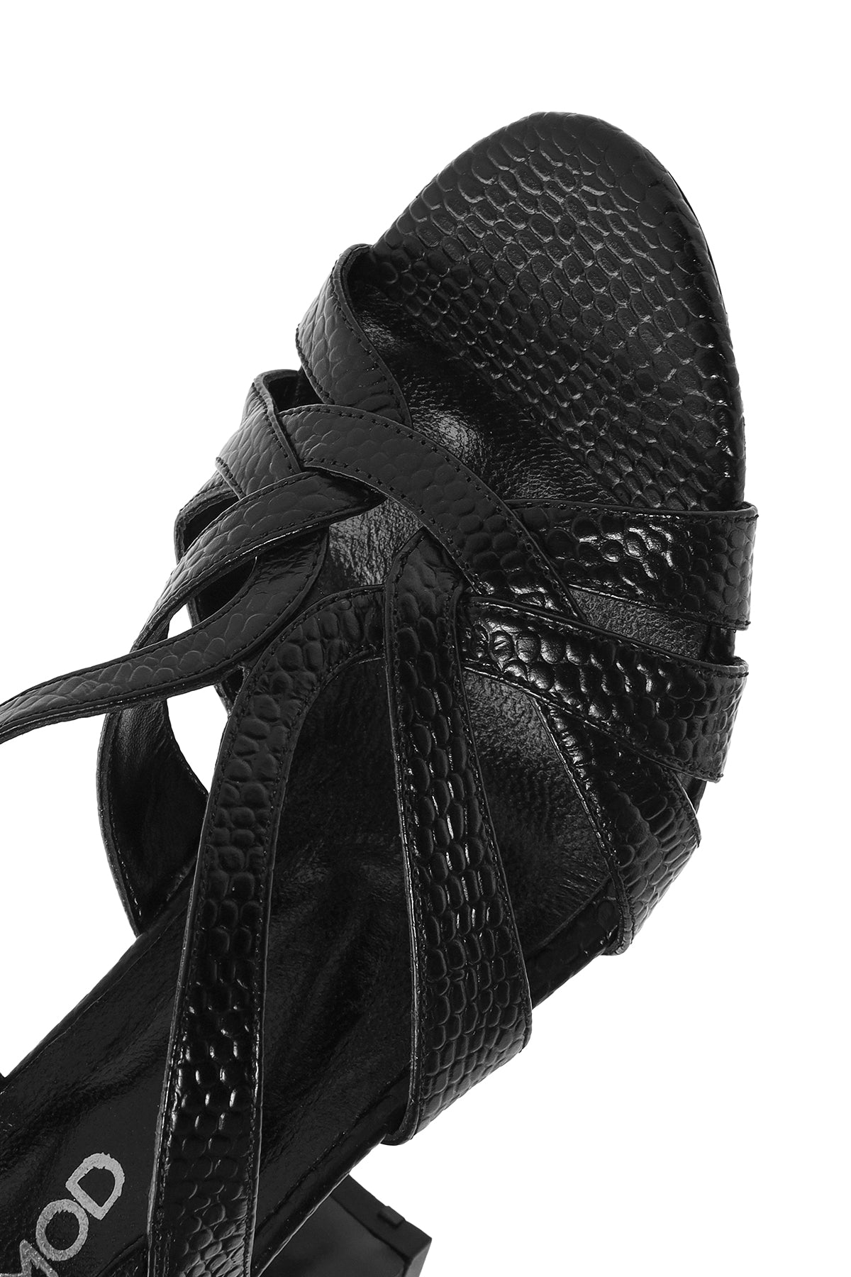 صندل زنانه مشکی چرم طرحدار پاشنهضخیم بنددار دری مد