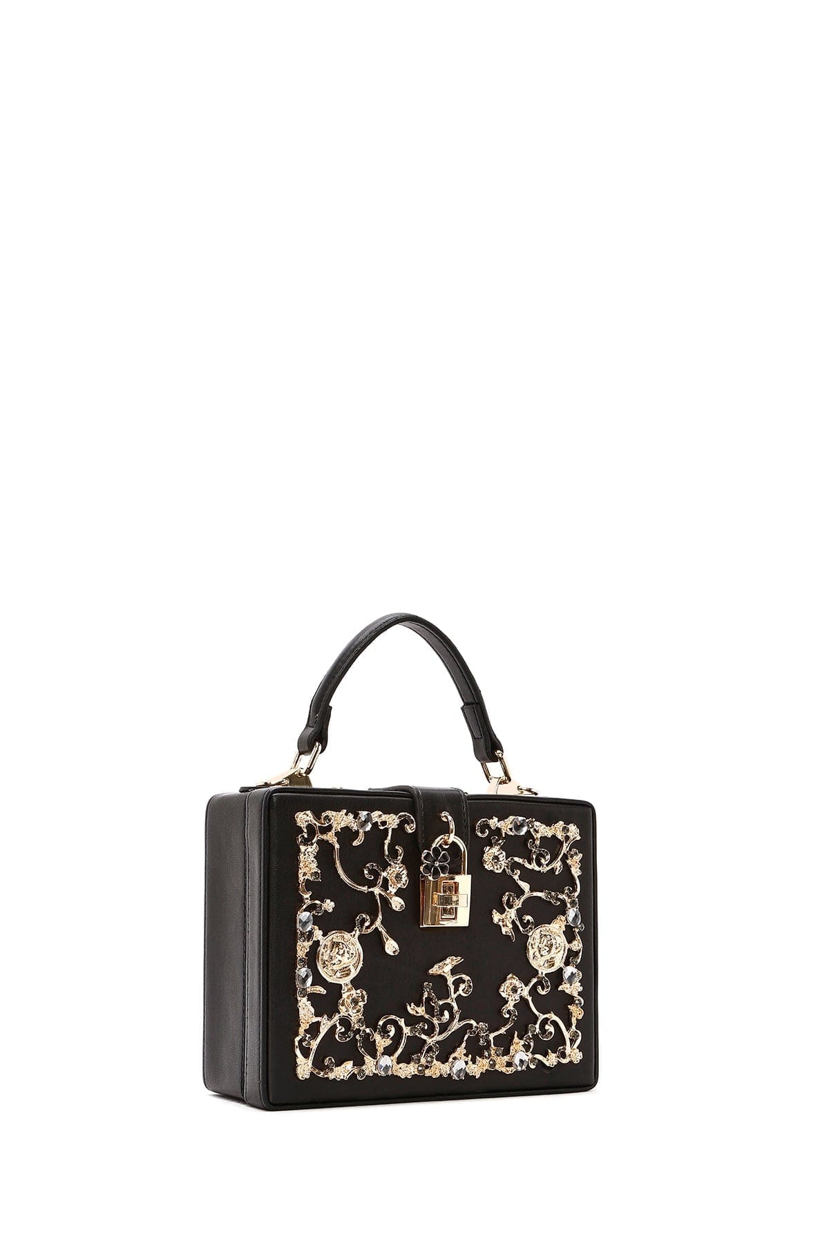 Kadın Siyah Uzun Askılı Desenli Portföy Çanta