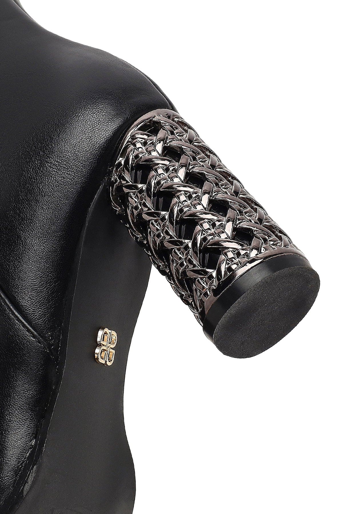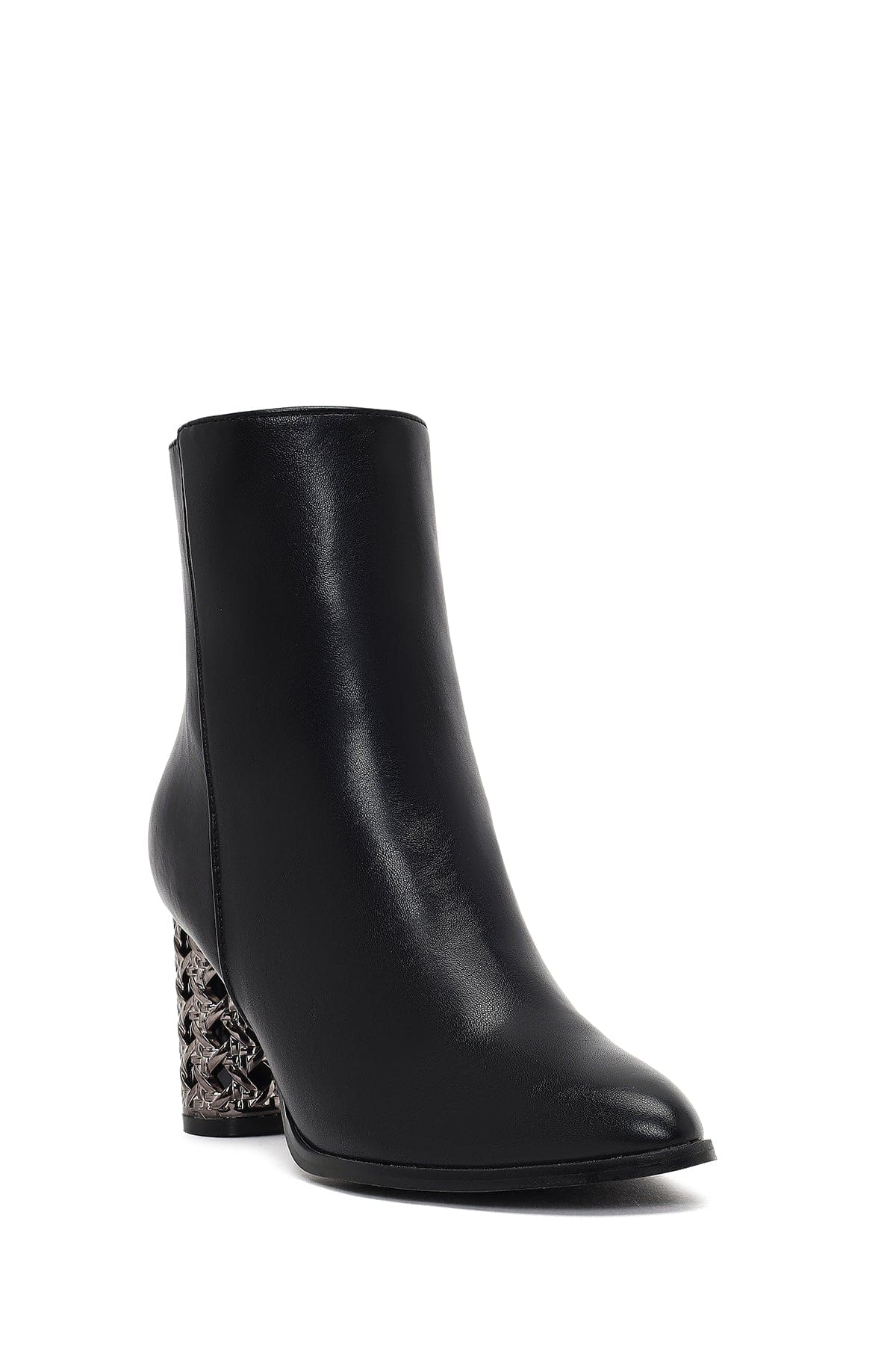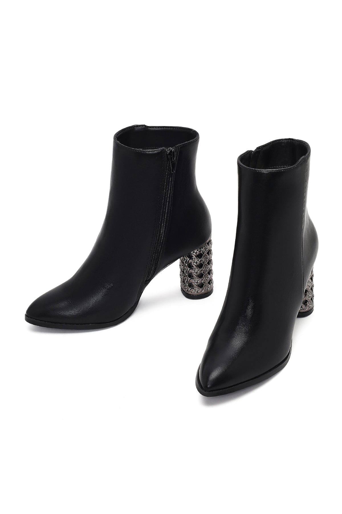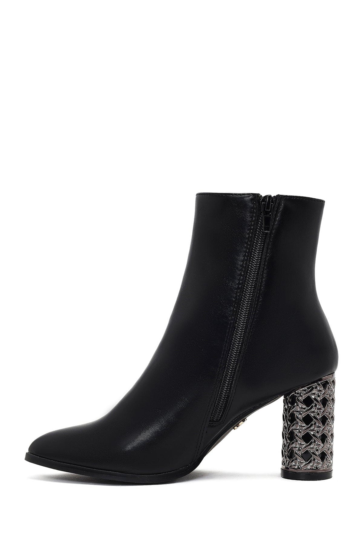 Kadın Siyah Fermuarlı Desenli Kalın Topuklu Bot