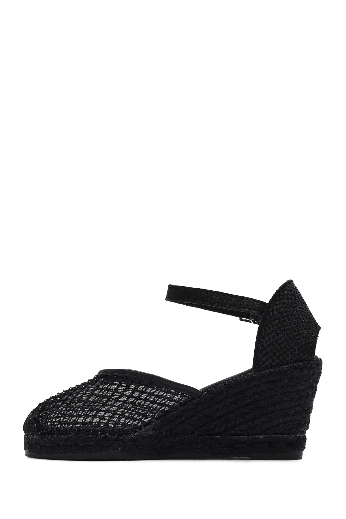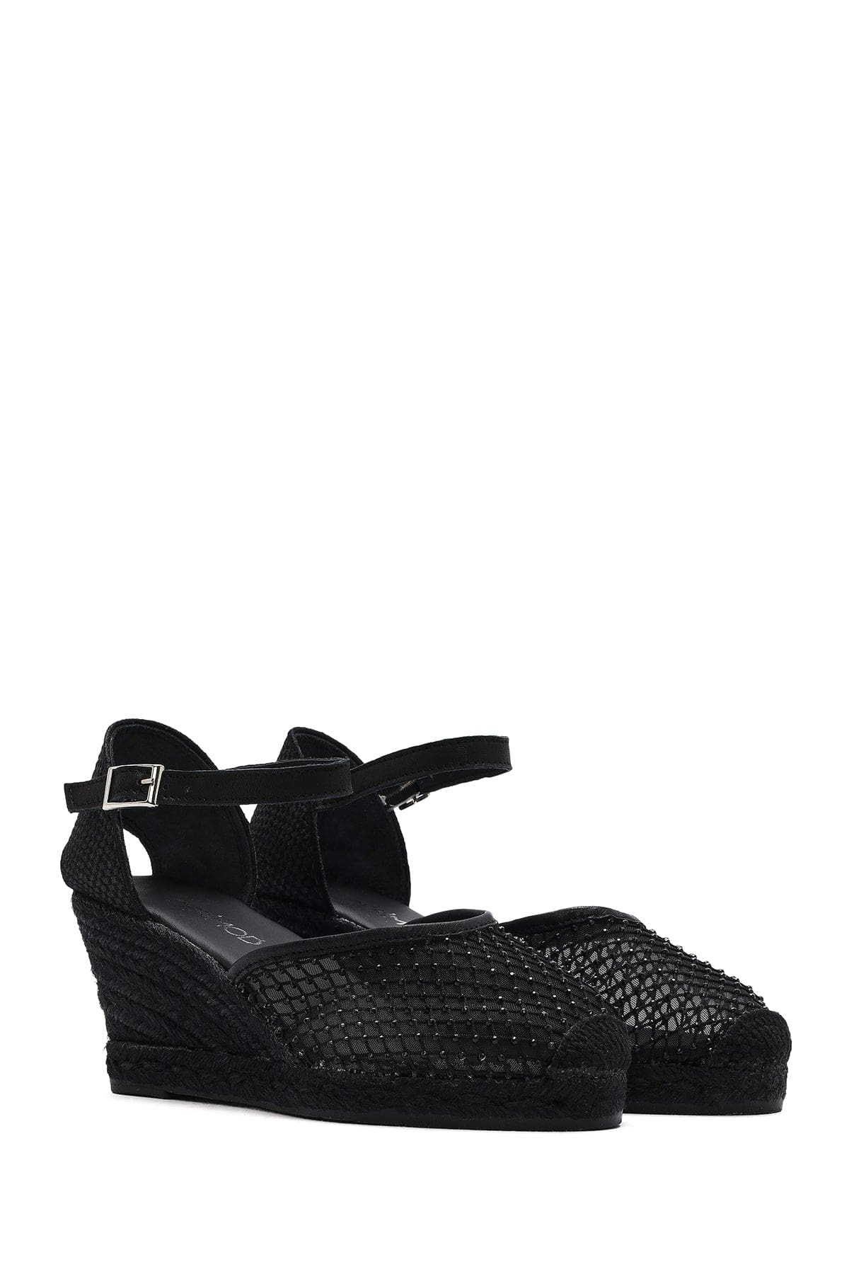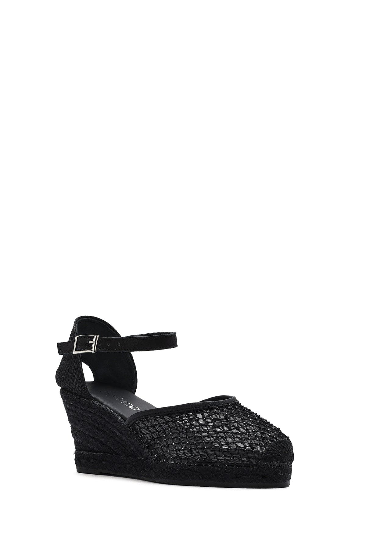 Kadın Siyah Bilekten Tokalı Dolgu Topuklu Espadril Sandalet