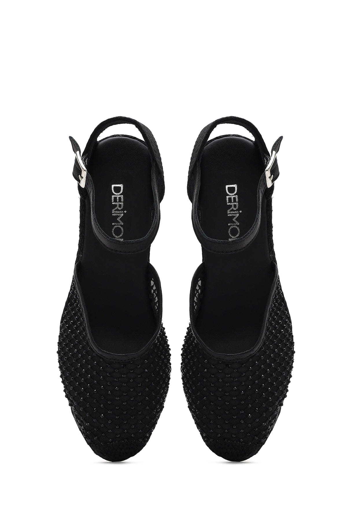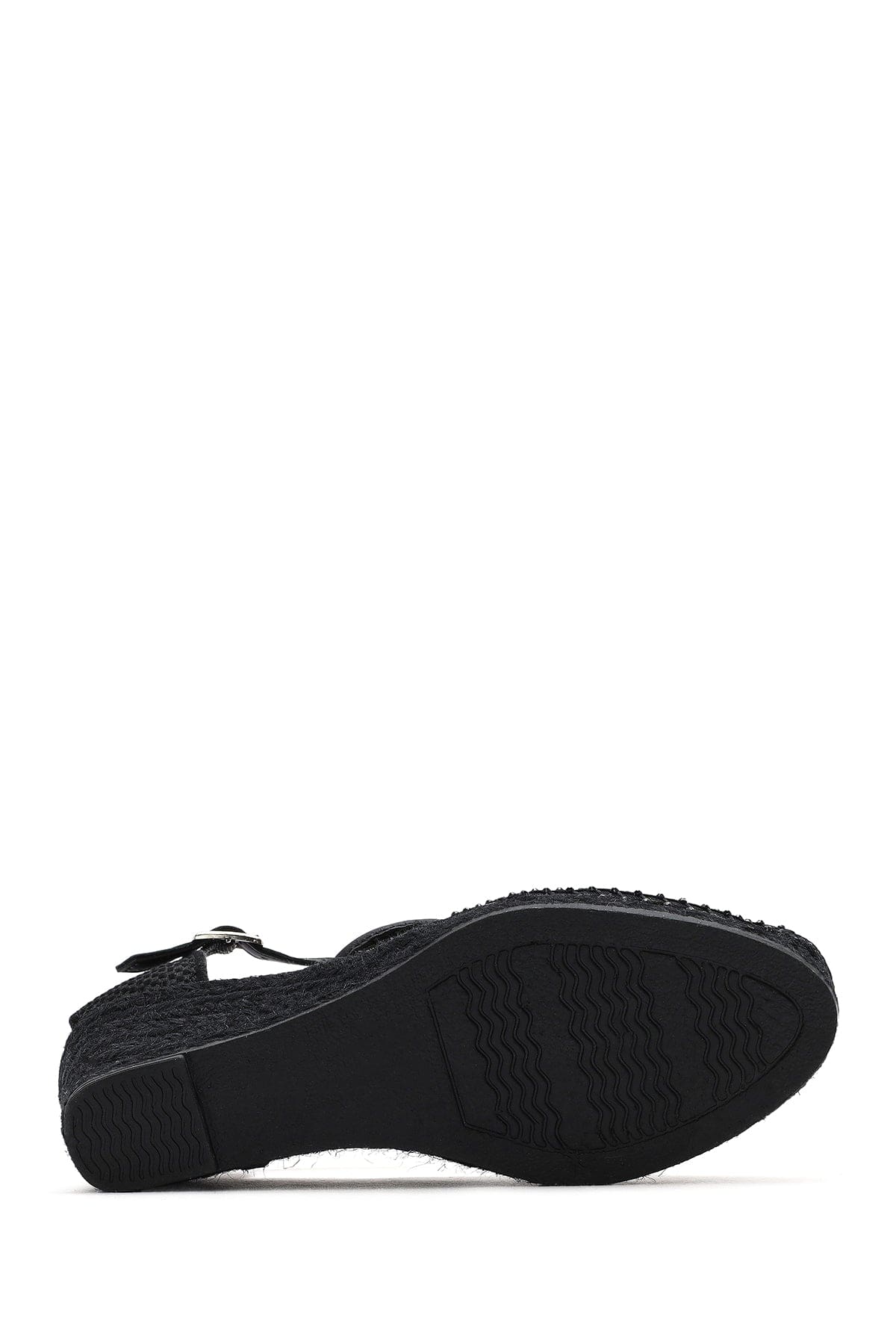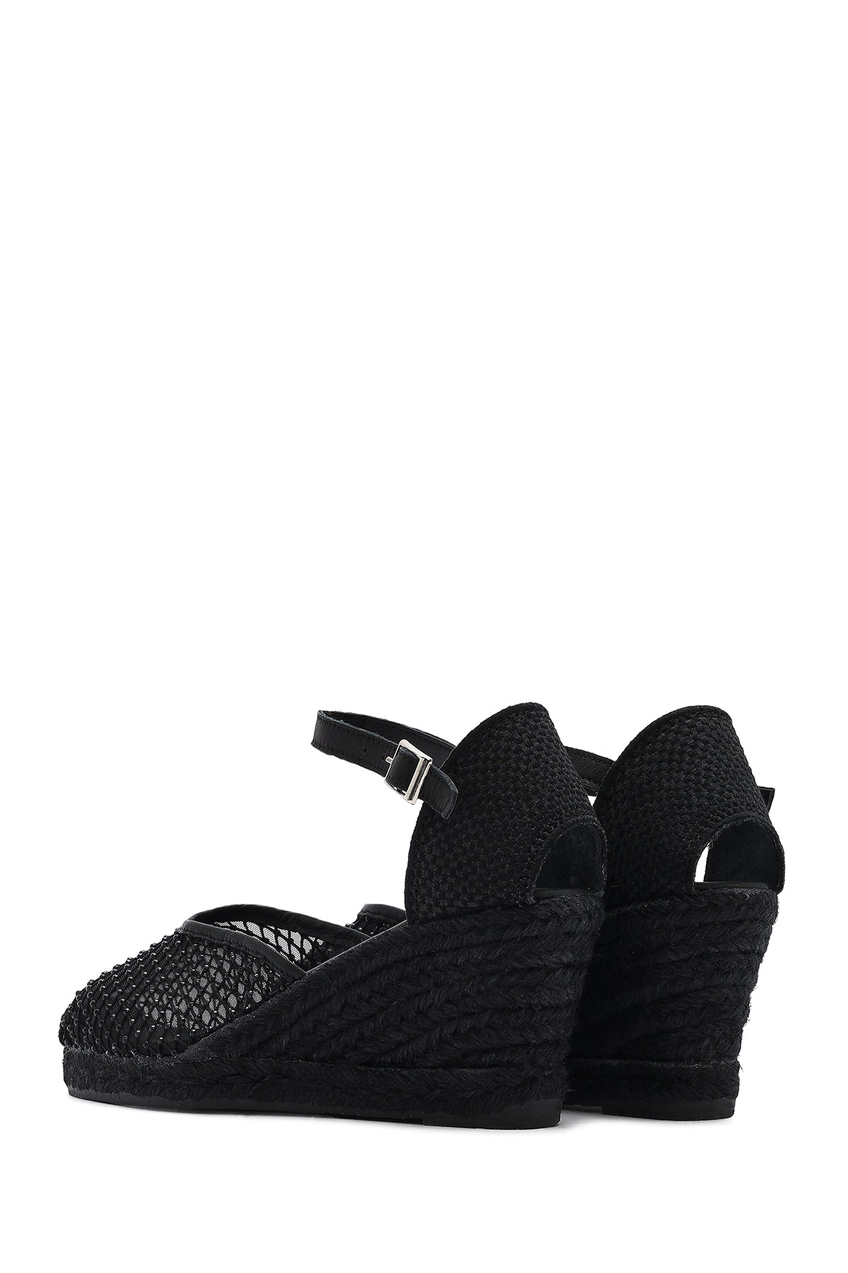 Kadın Siyah Bilekten Tokalı Dolgu Topuklu Espadril Sandalet