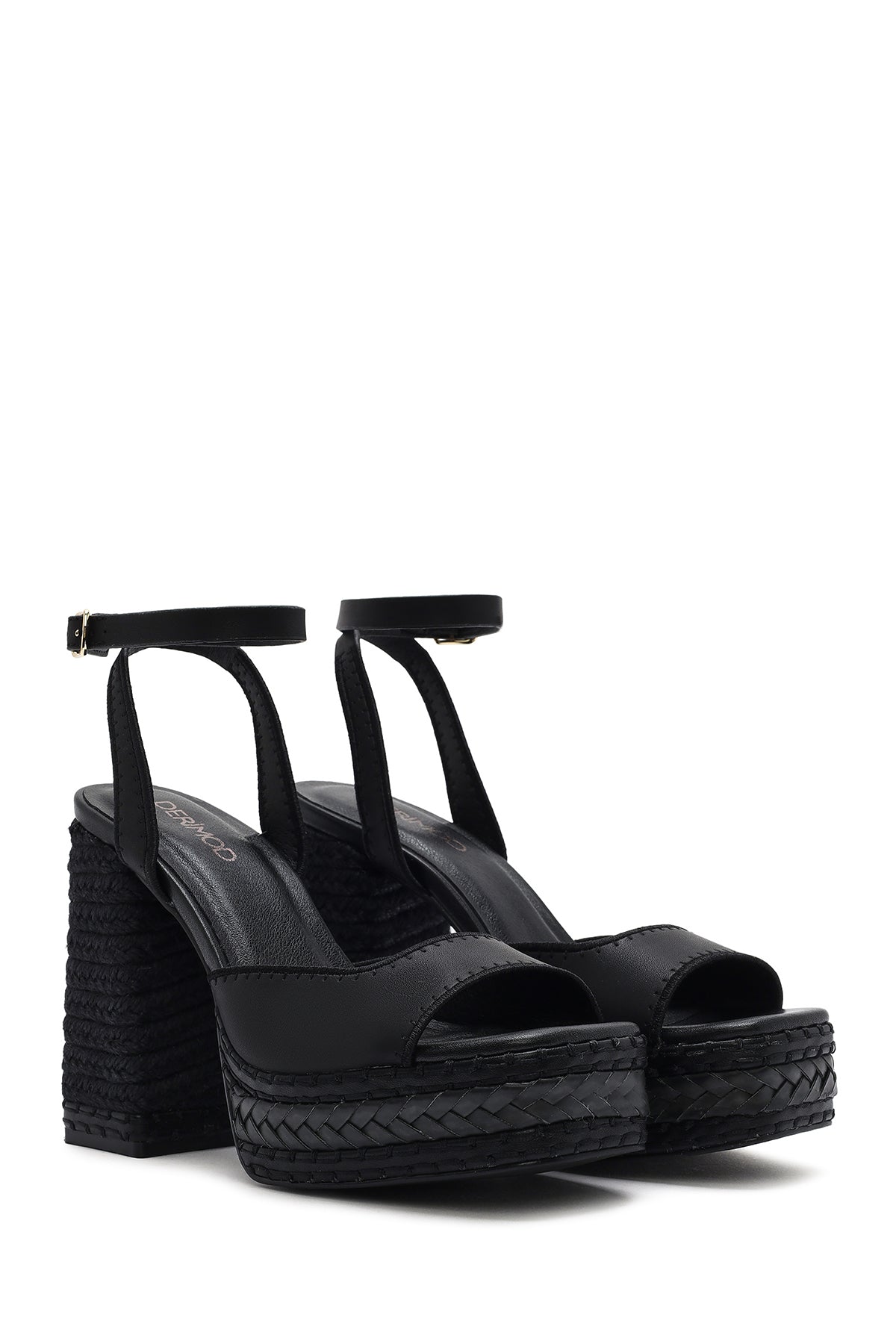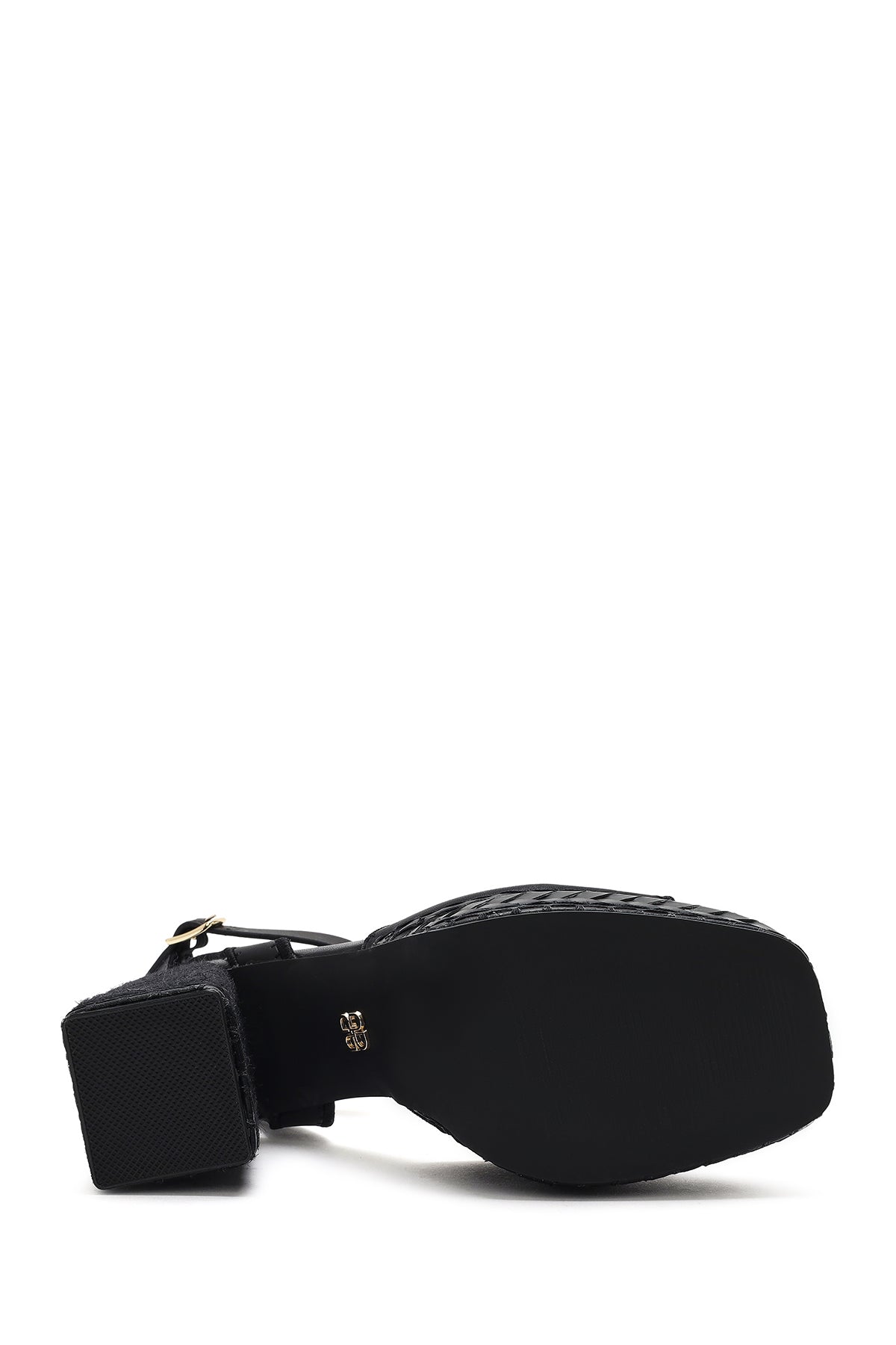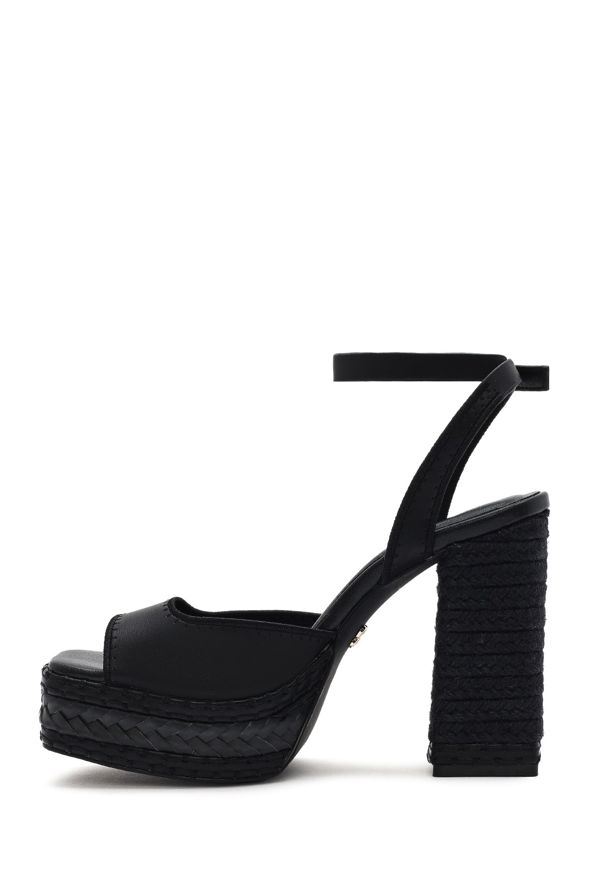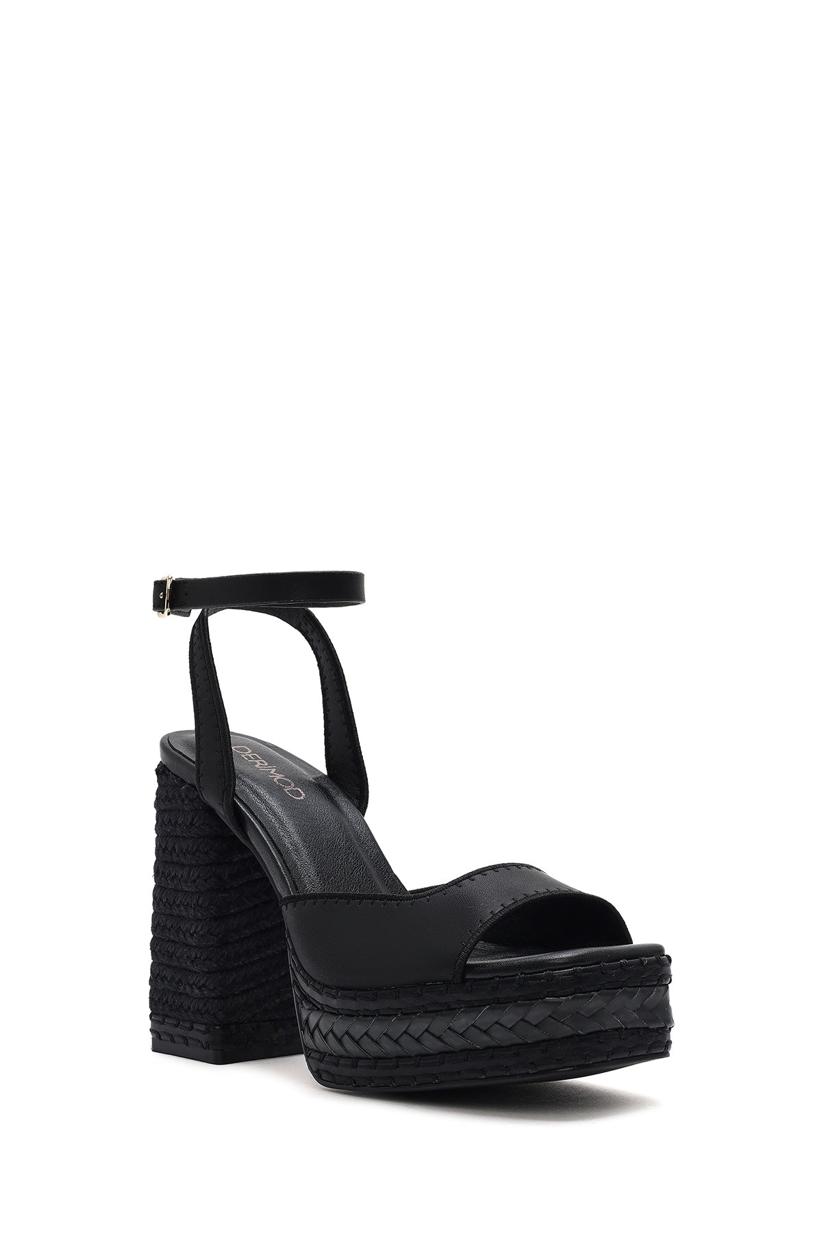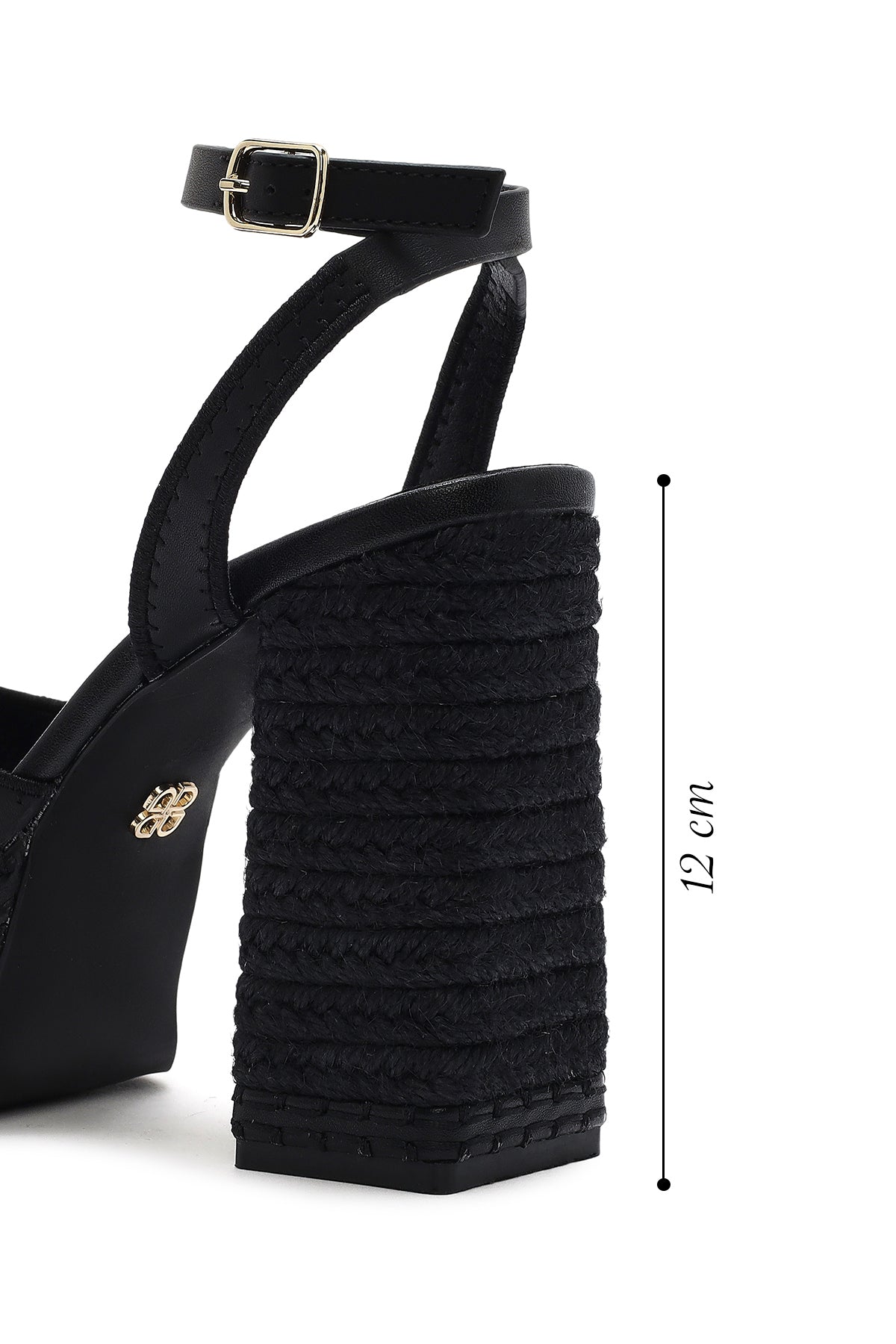 Kadın Siyah Bilekten Tokalı Platform Yüksek Kalın Topuklu Sandalet