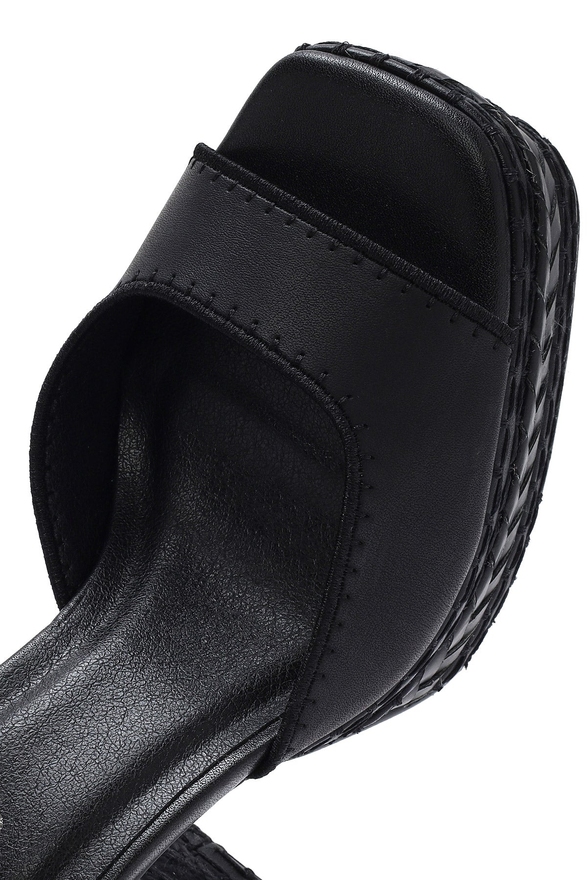 صندل زنانه مشکی پلتفرم پاشنه ضخیم بلند بنددار دری مد