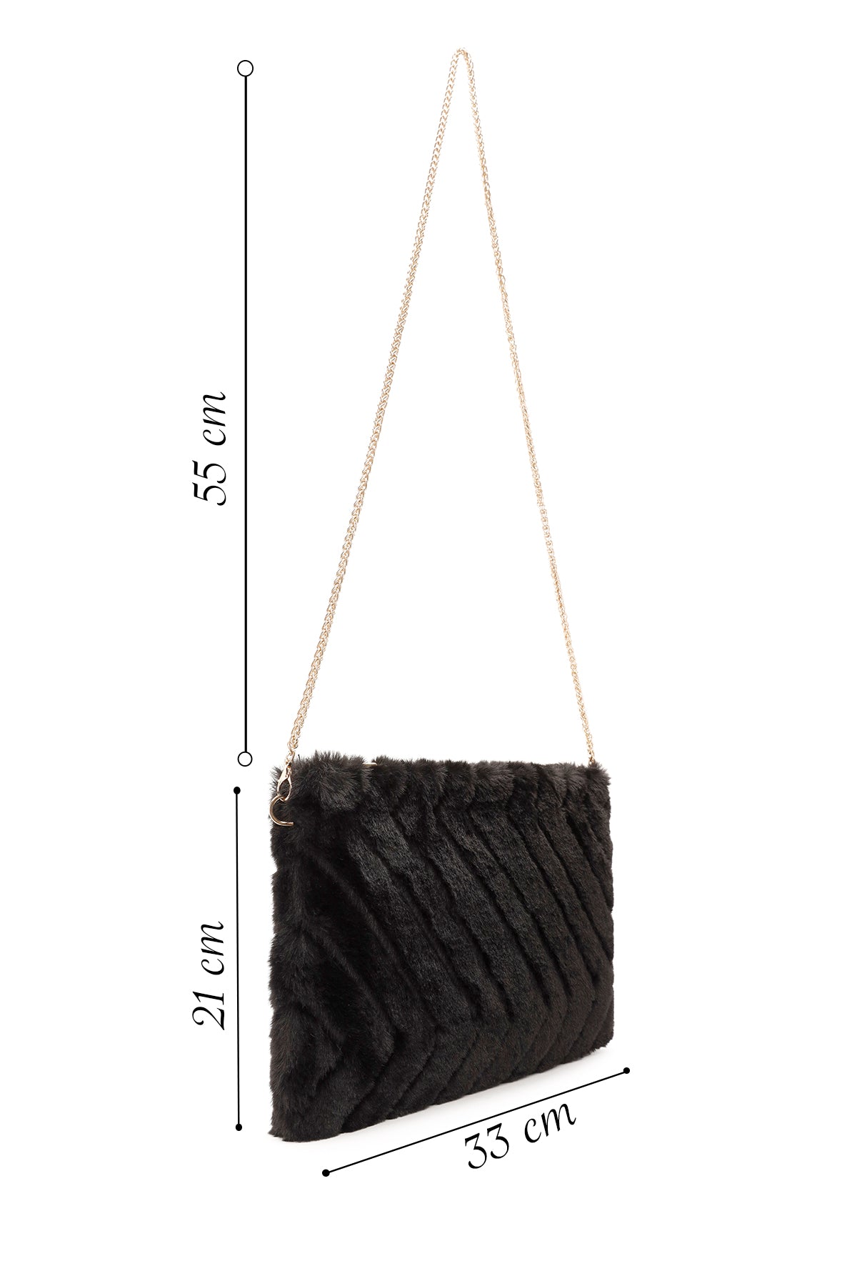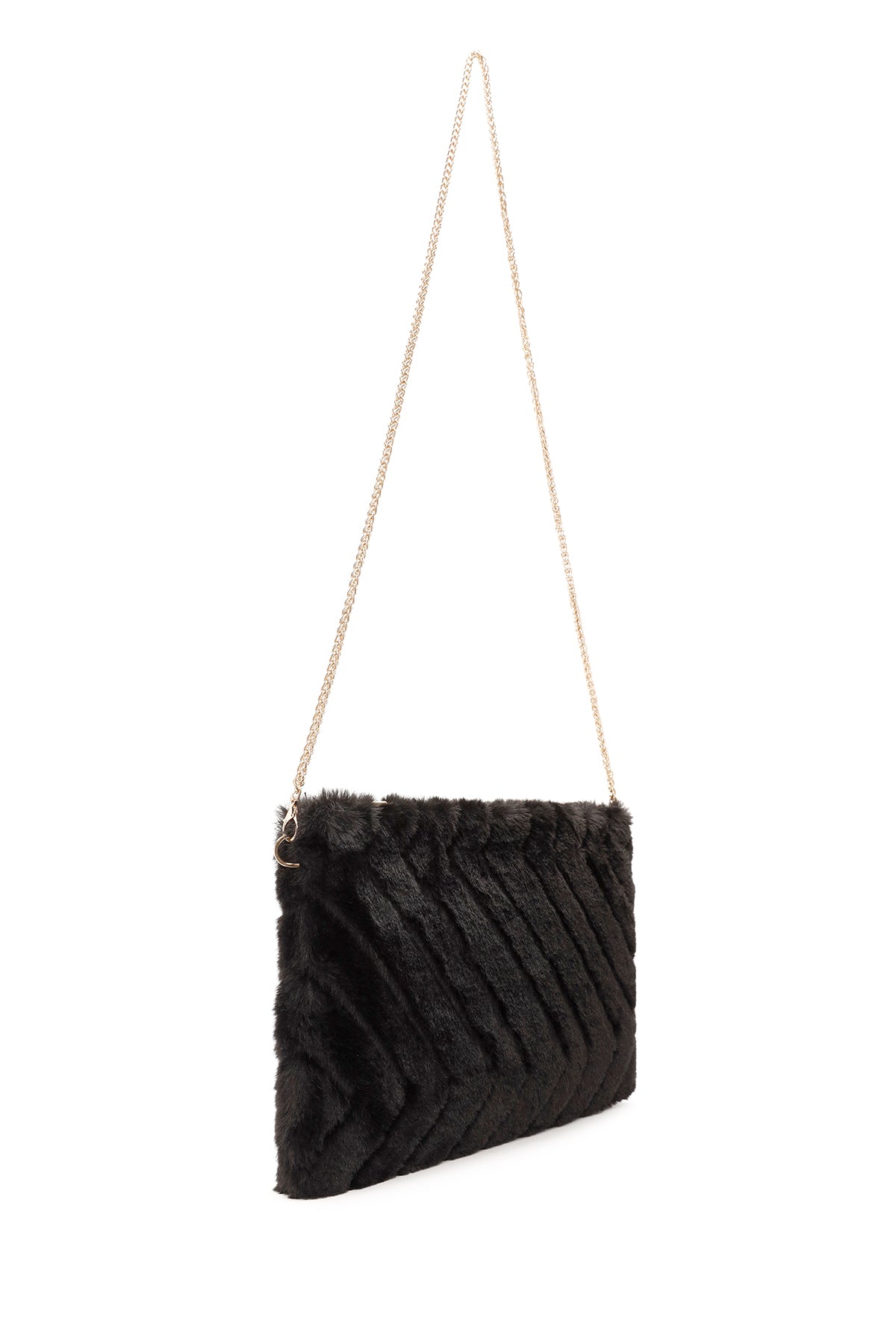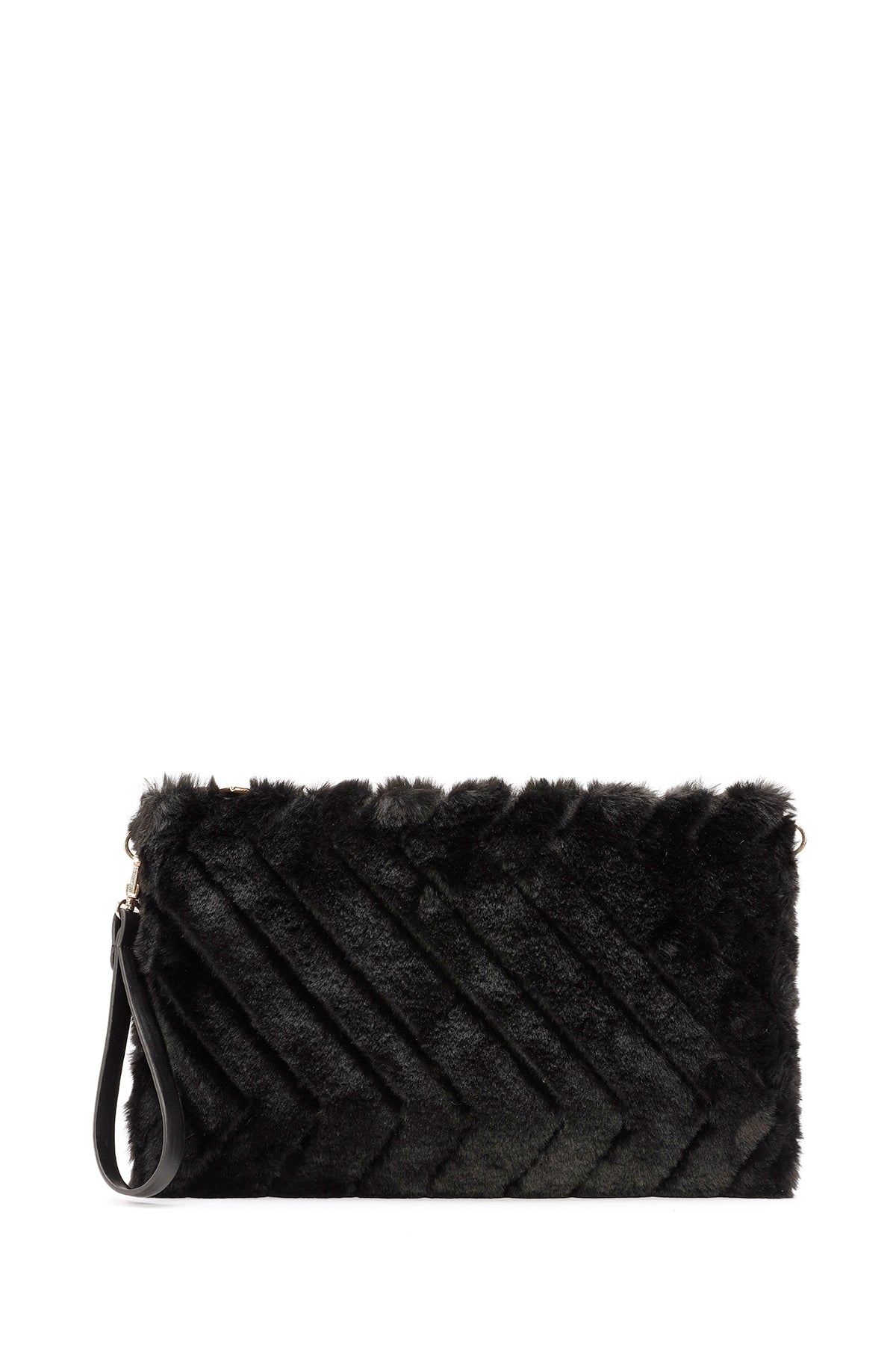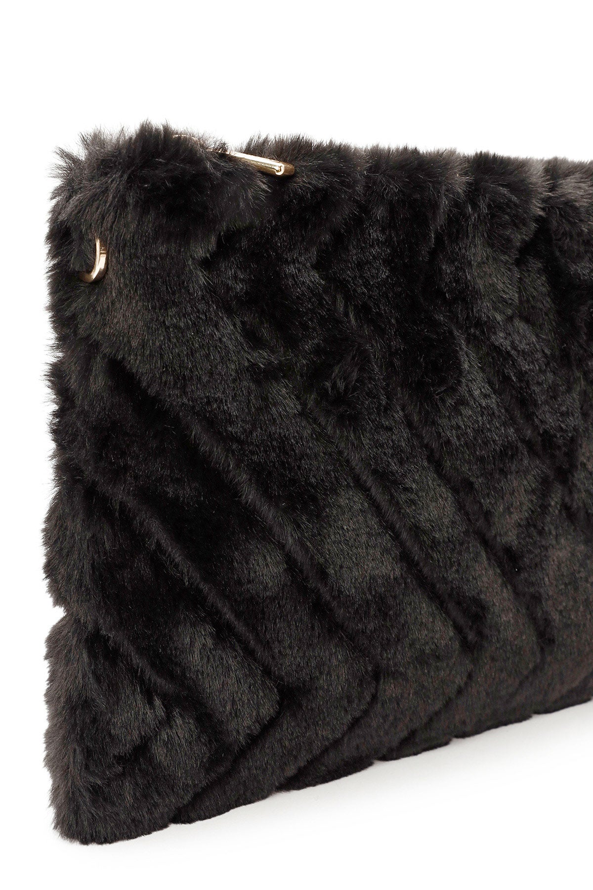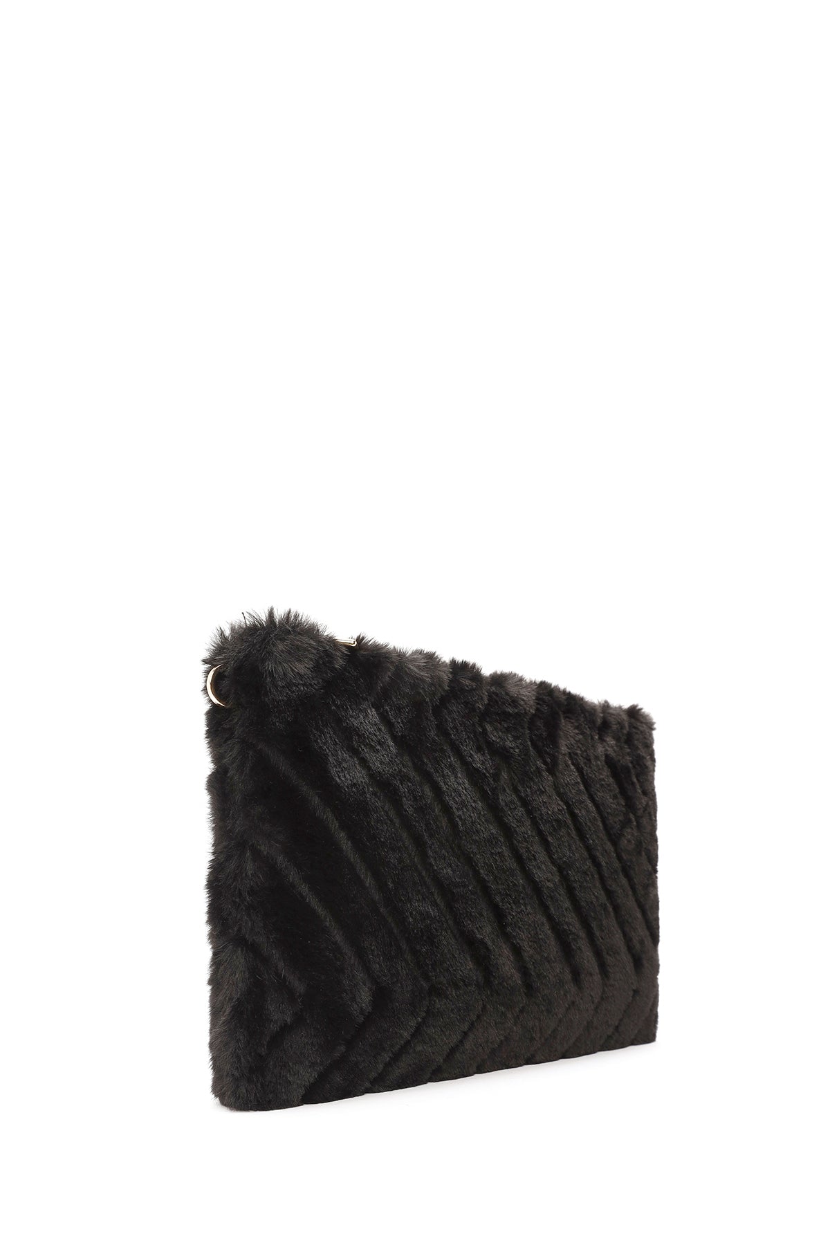 Kadın Siyah Zincir Askılı Peluş Portföy Çanta