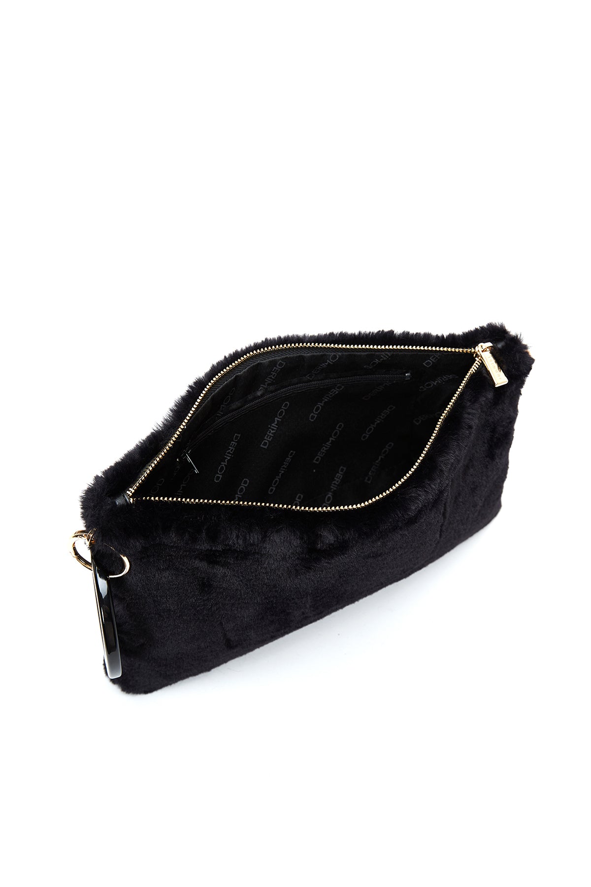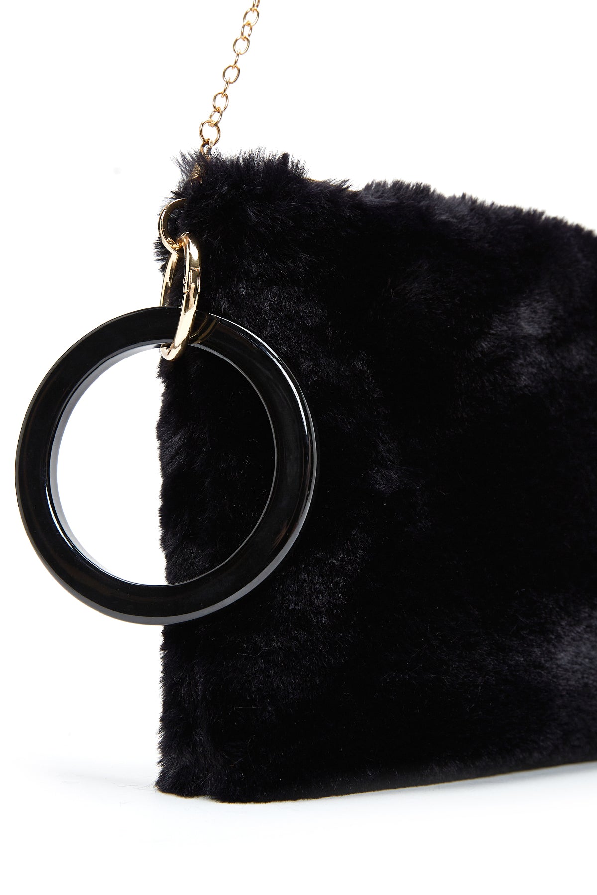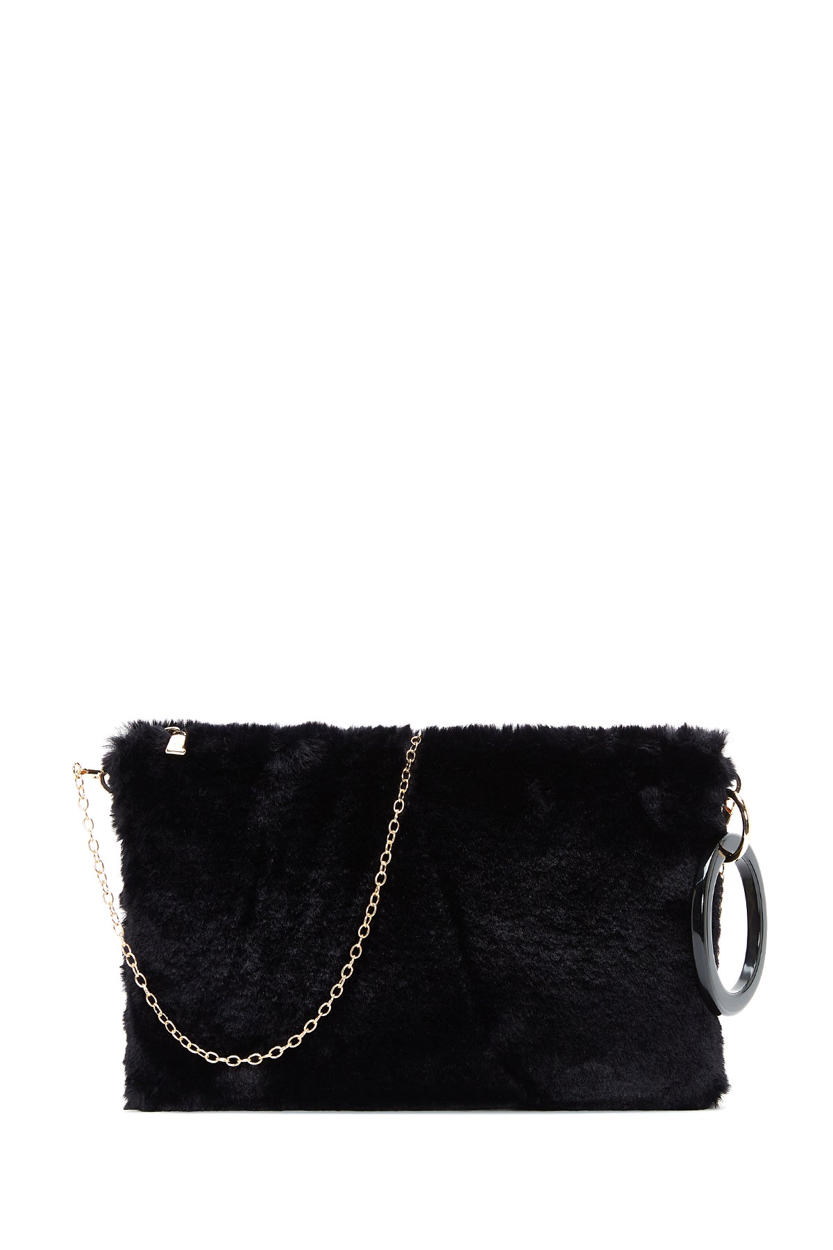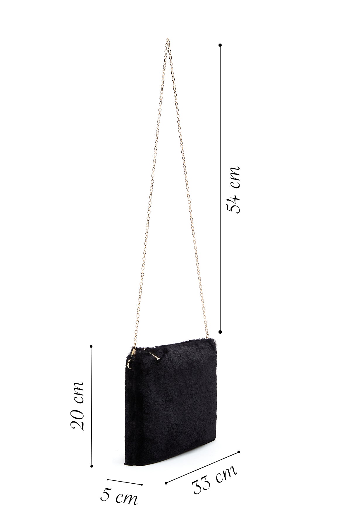 Kadın Siyah Zincir Askılı Peluş Portföy Çanta