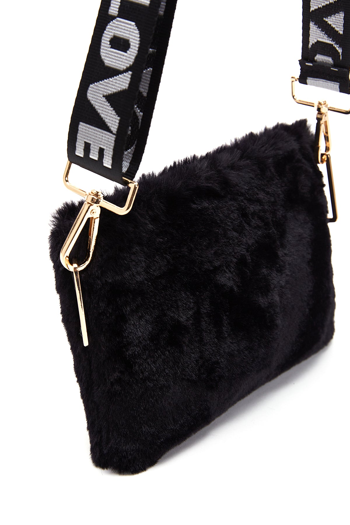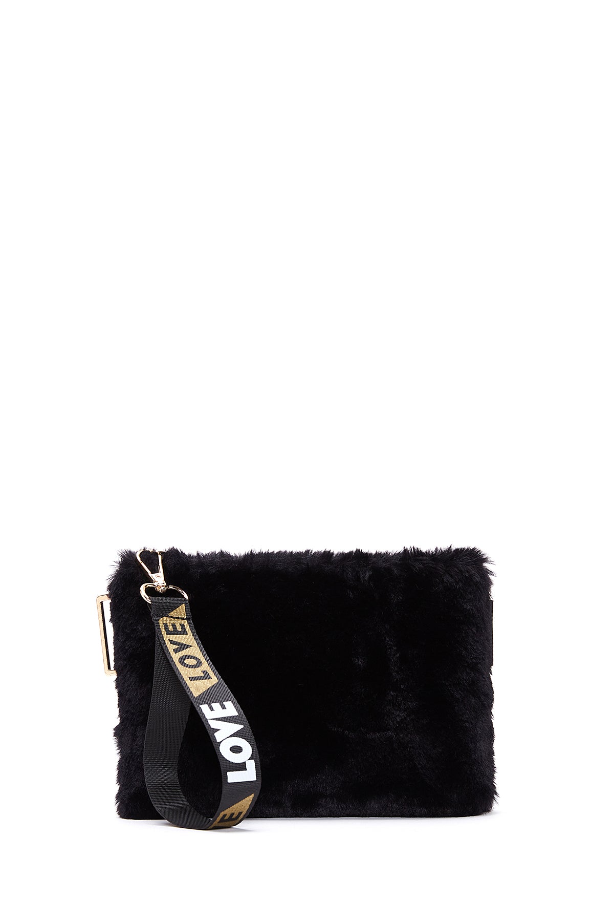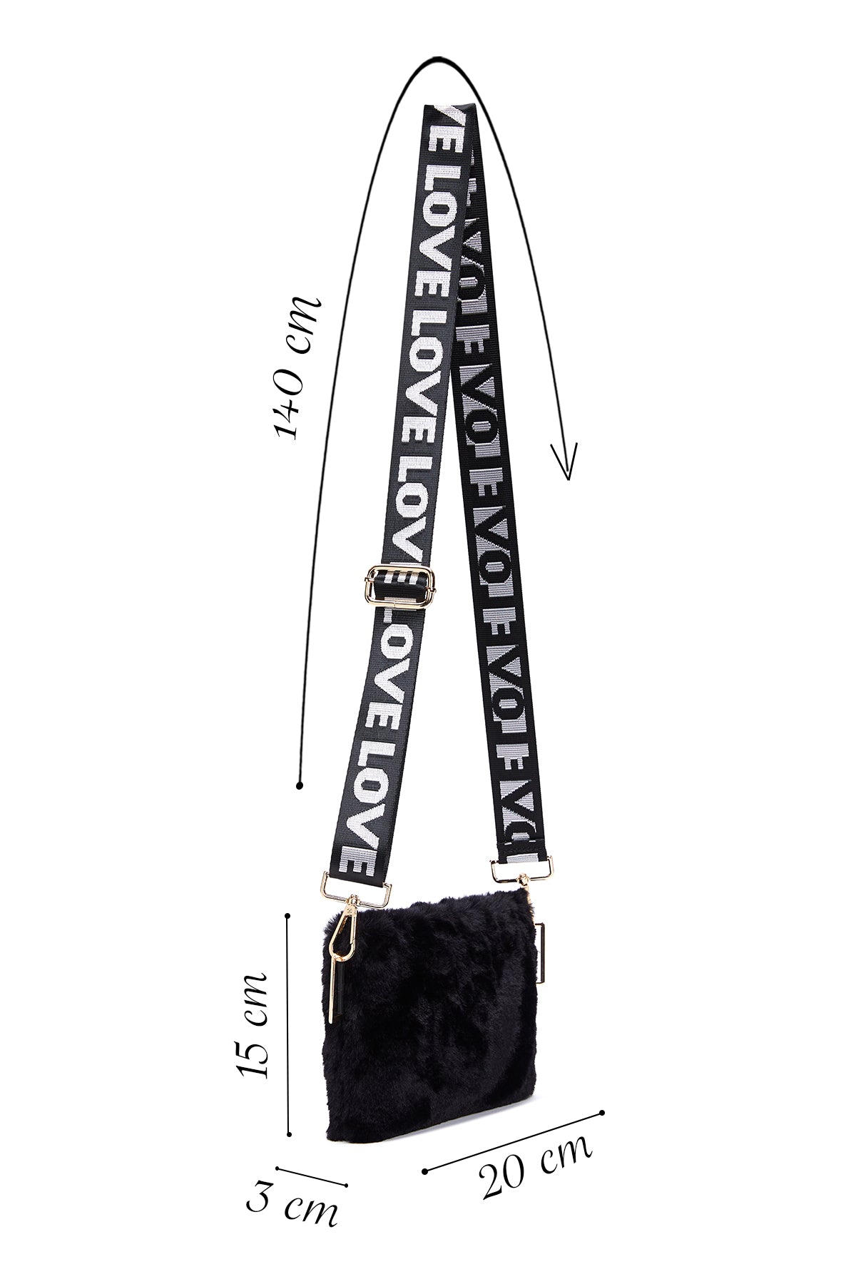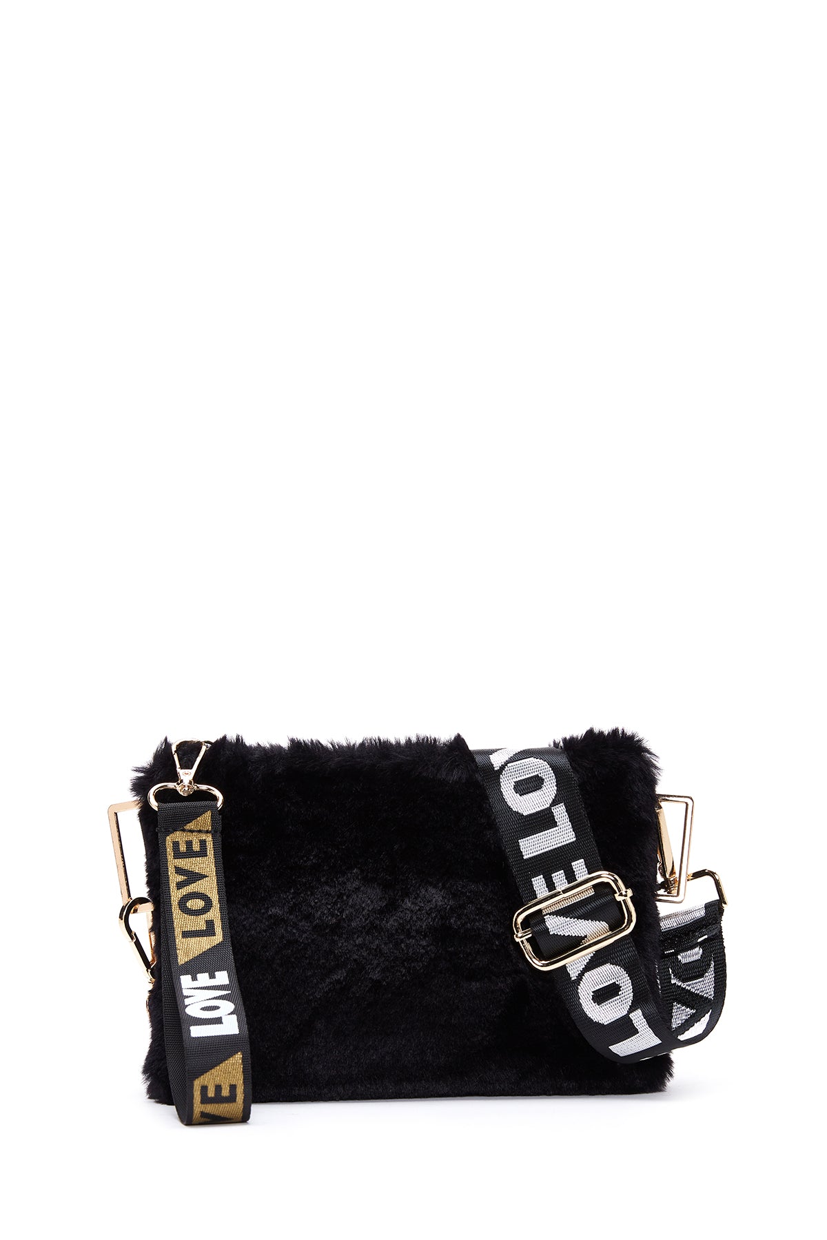 Kadın Siyah Uzun Askılı Peluş Portföy Çanta