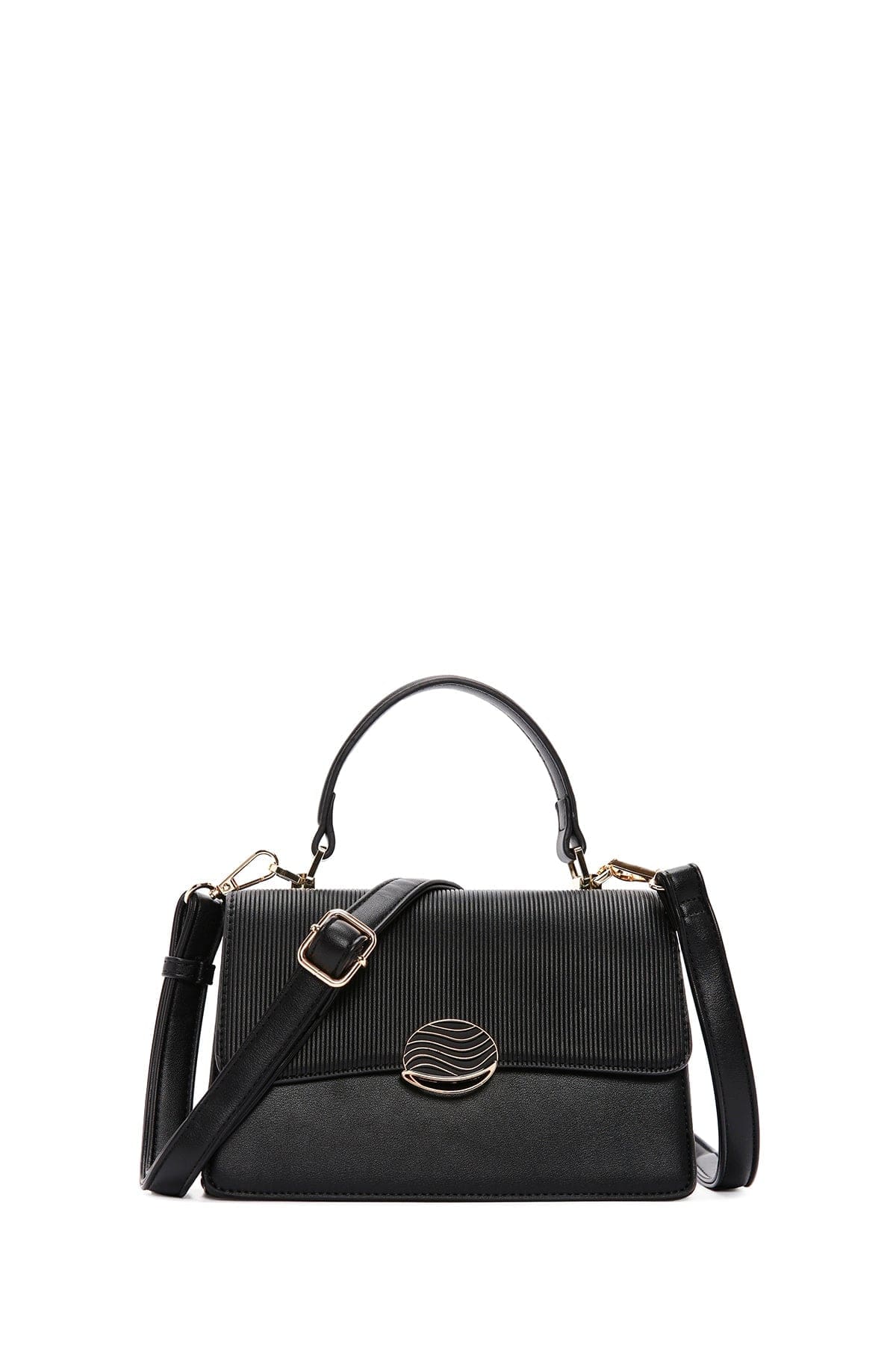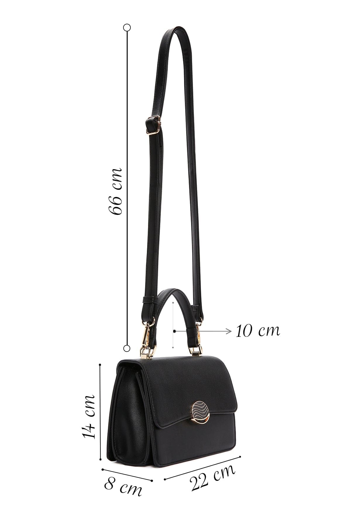 Kadın Siyah Uzun Askılı Baskılı Klasik Çapraz Çanta