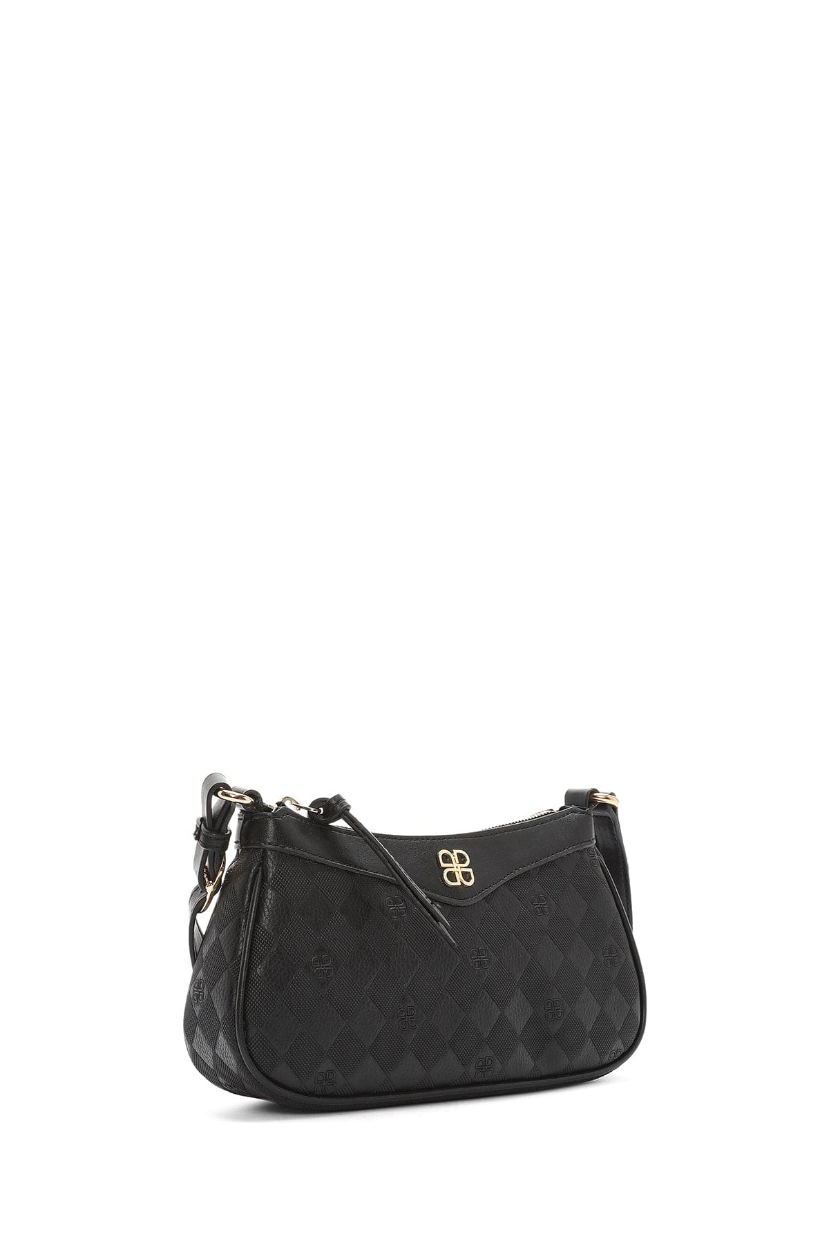 کیف کراس بادی زنانه چرم مشکی چاپدار دری مد