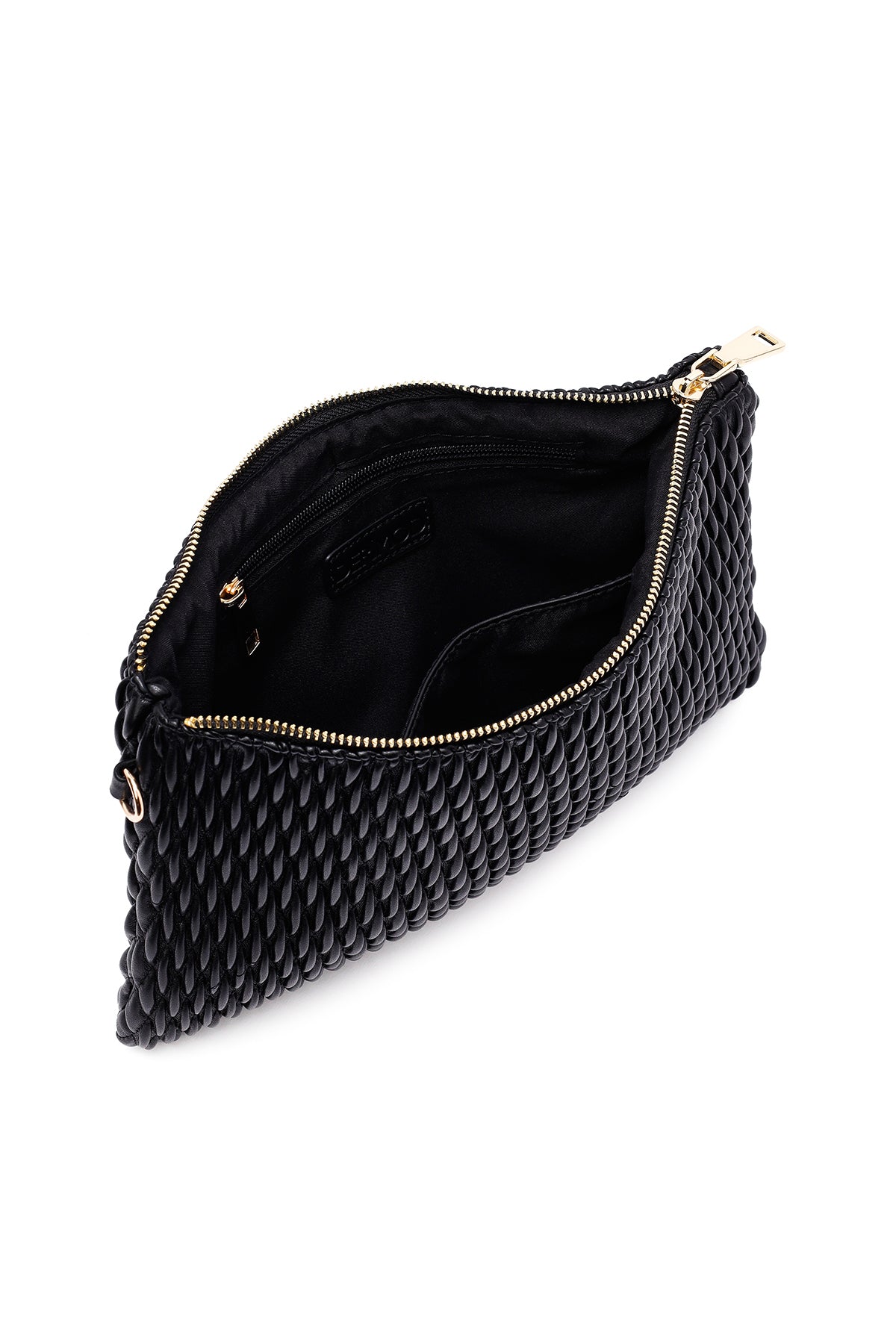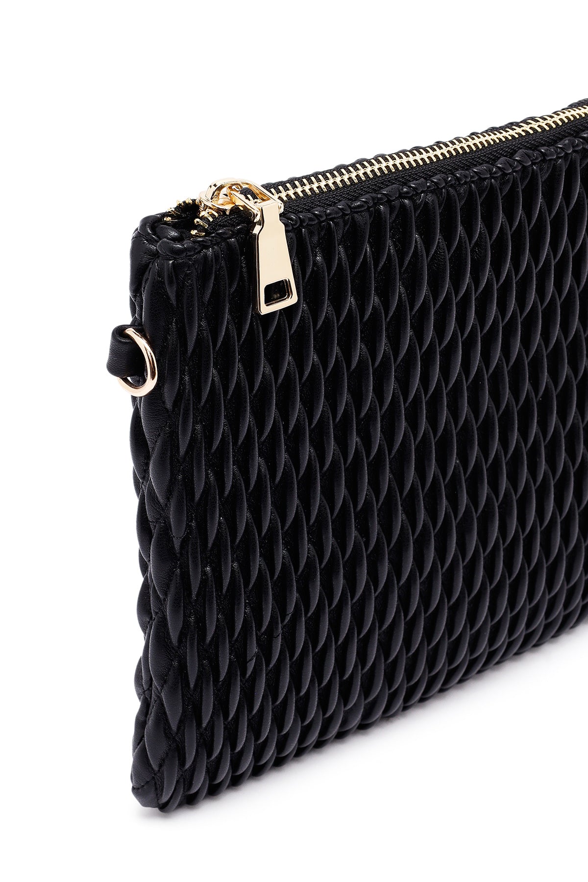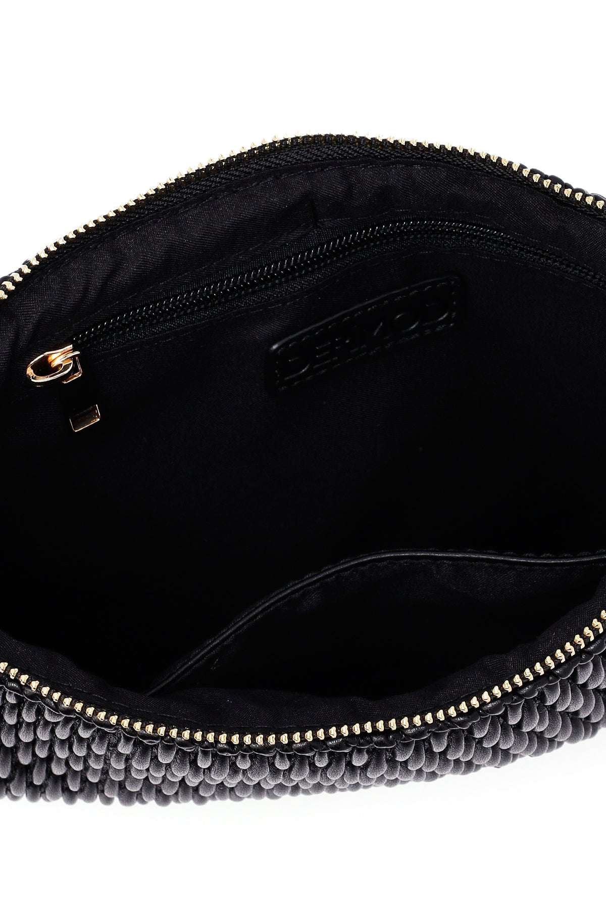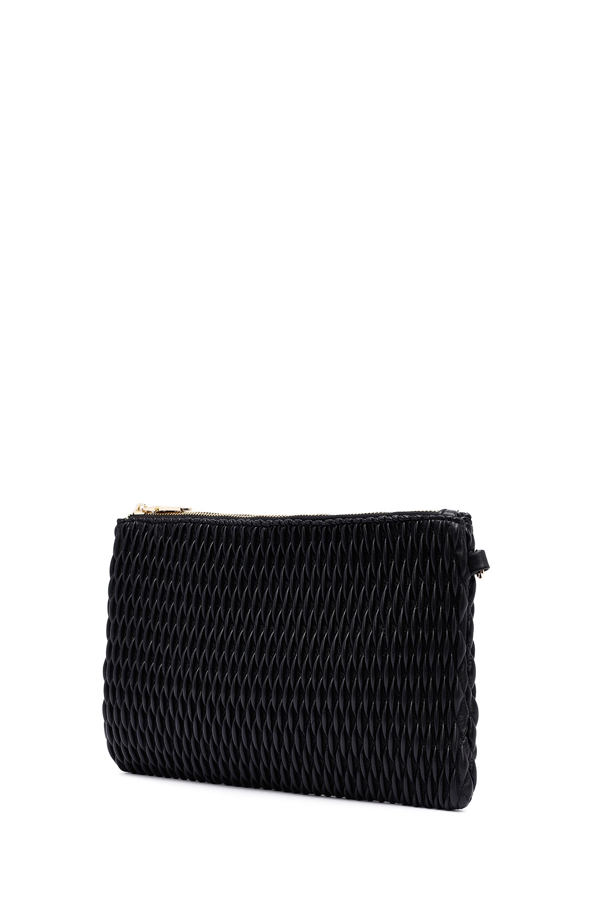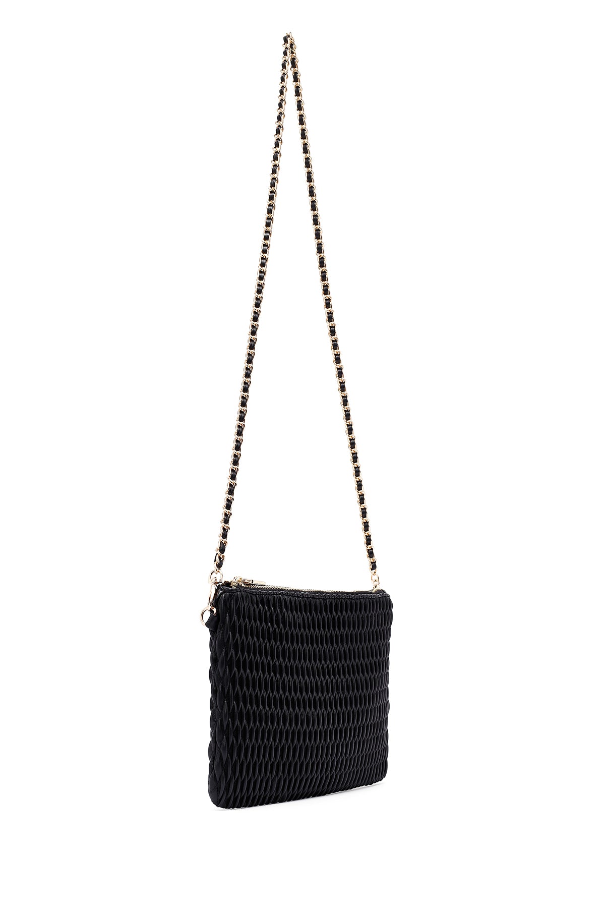 کیف مجلسی زنانه مشکی طرحدار با بند زنجیری بلند دری مد