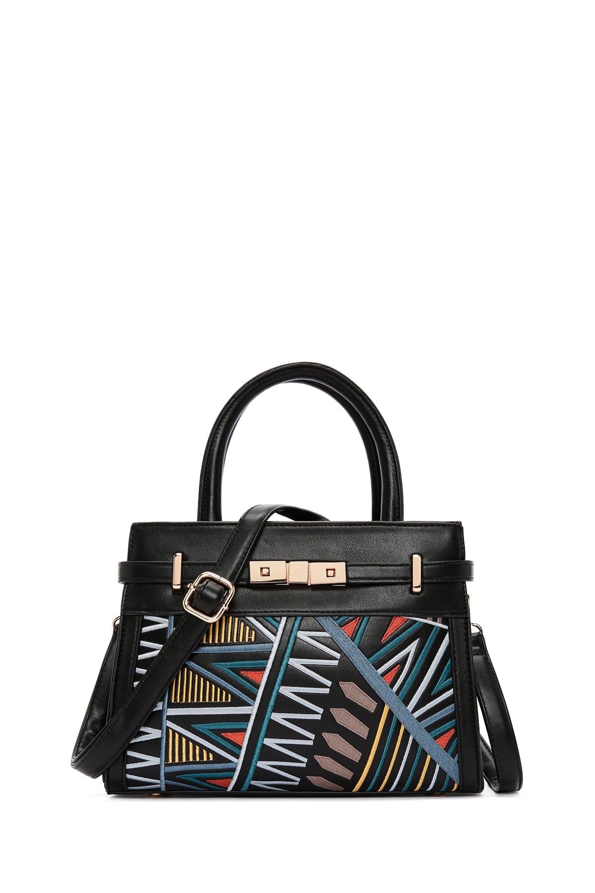 Kadın Siyah Baskılı Uzun Askılı Kol Çantası
