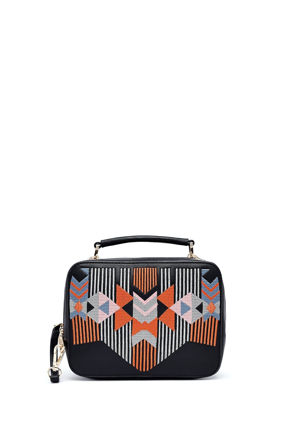 Kadın Siyah Baskılı Uzun Askılı Çapraz Çanta