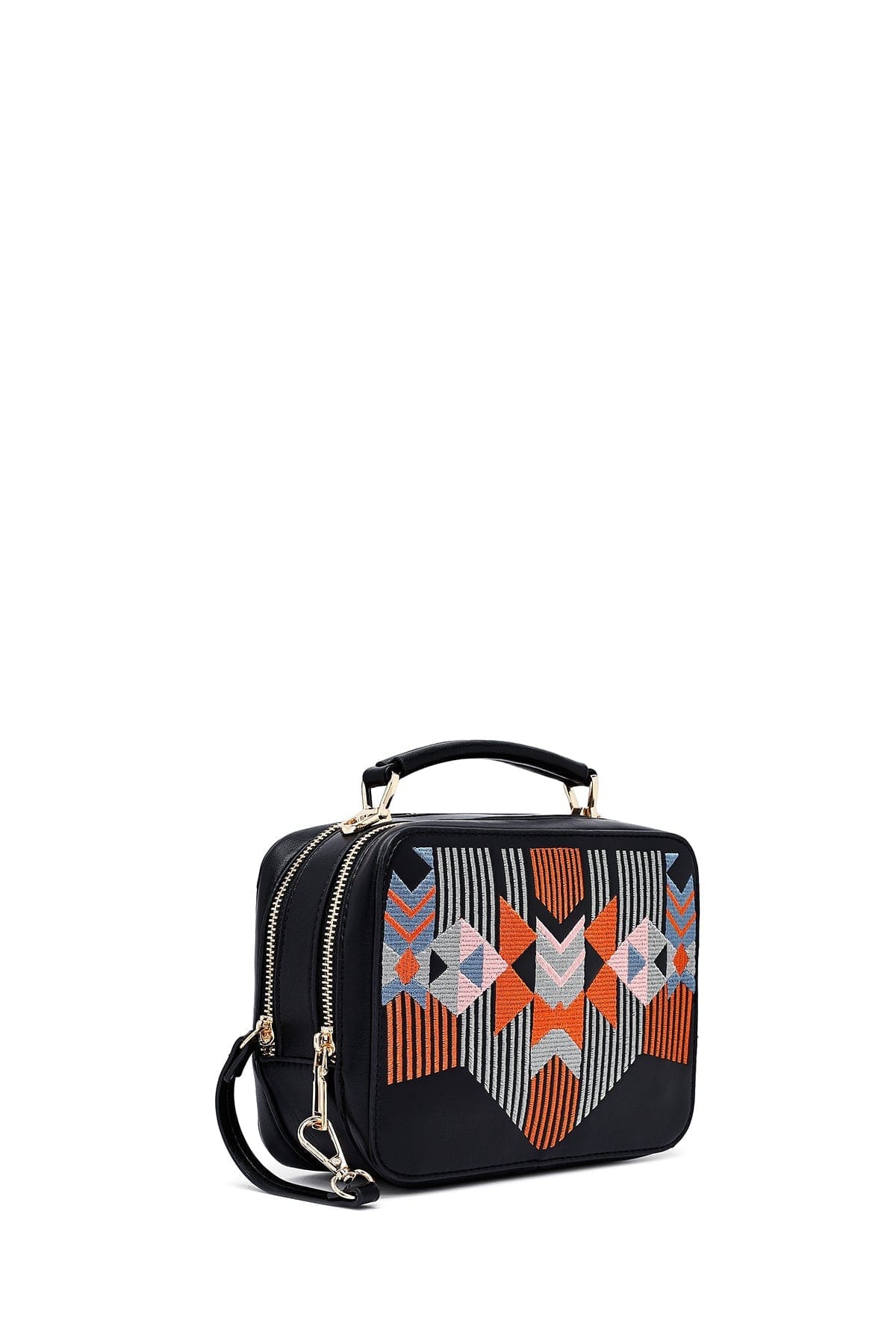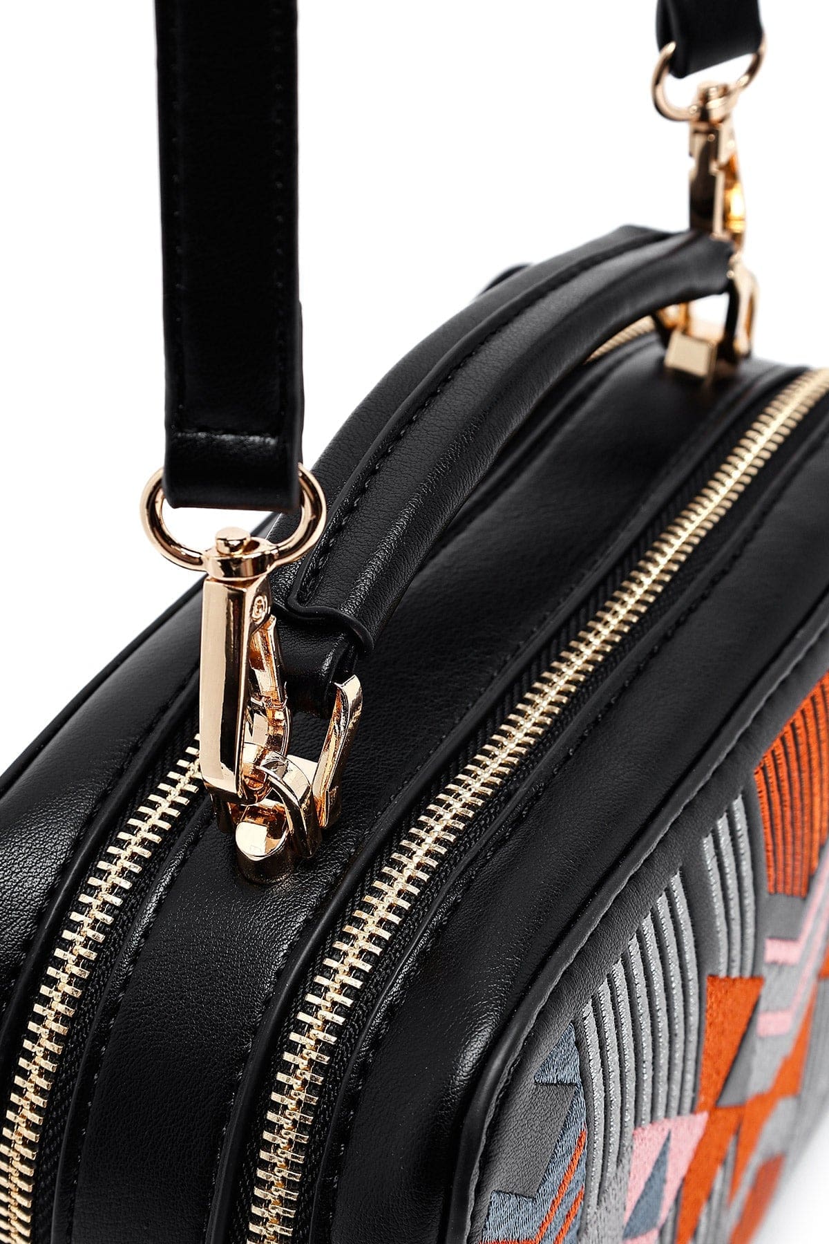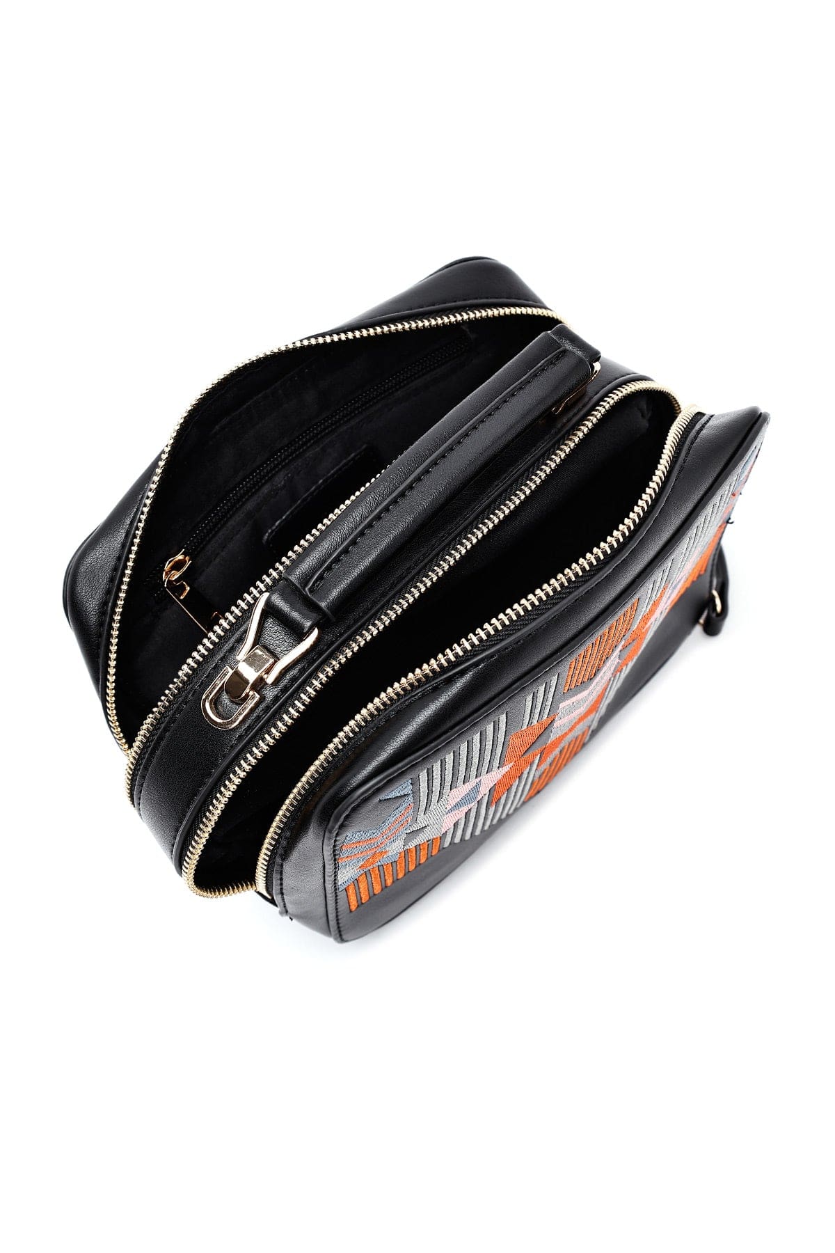 کیف کراس بادی زنانه چرم مشکی بند بلند چاپدار دری مد
