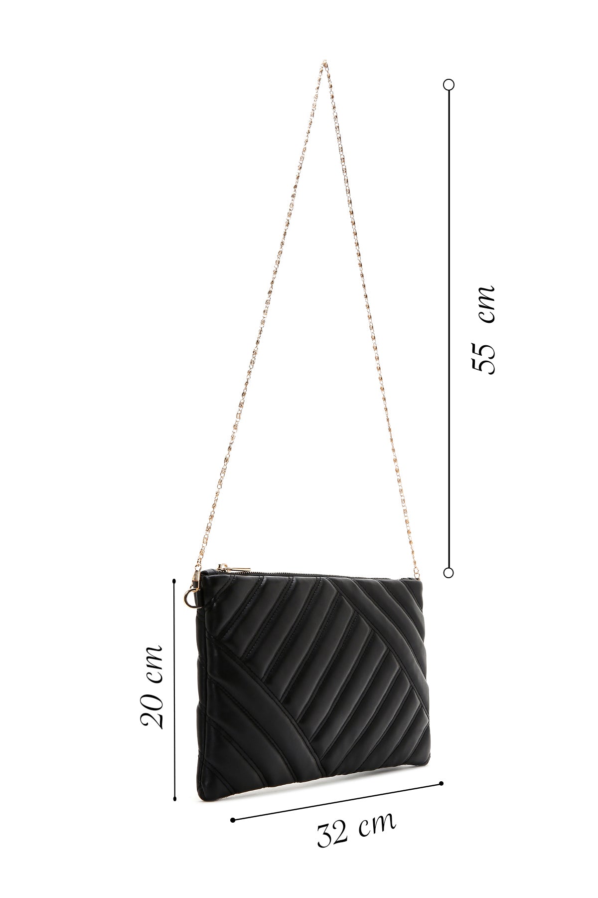 Kadın Siyah Uzun Zincir Askılı Kapitone Portföy Çanta