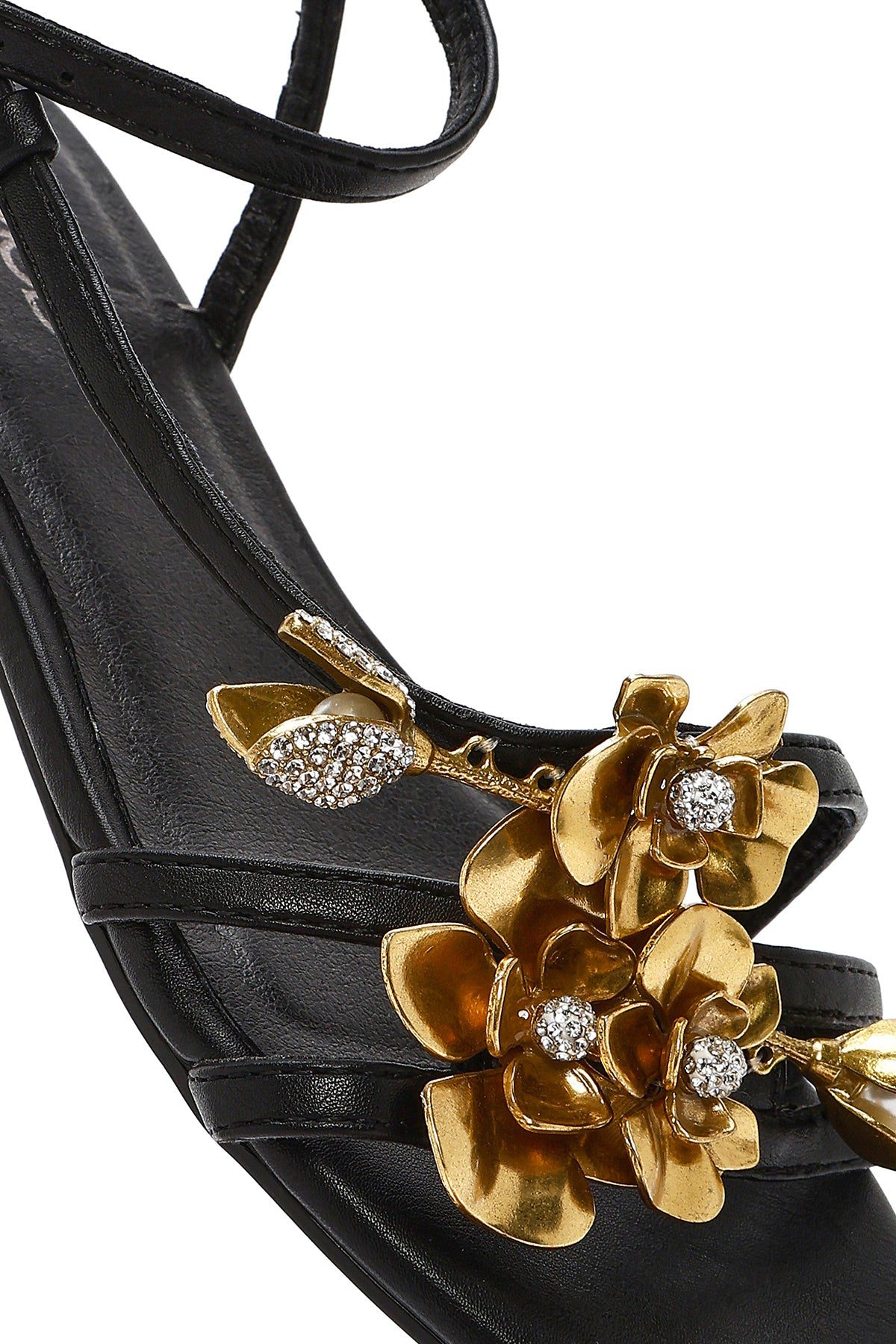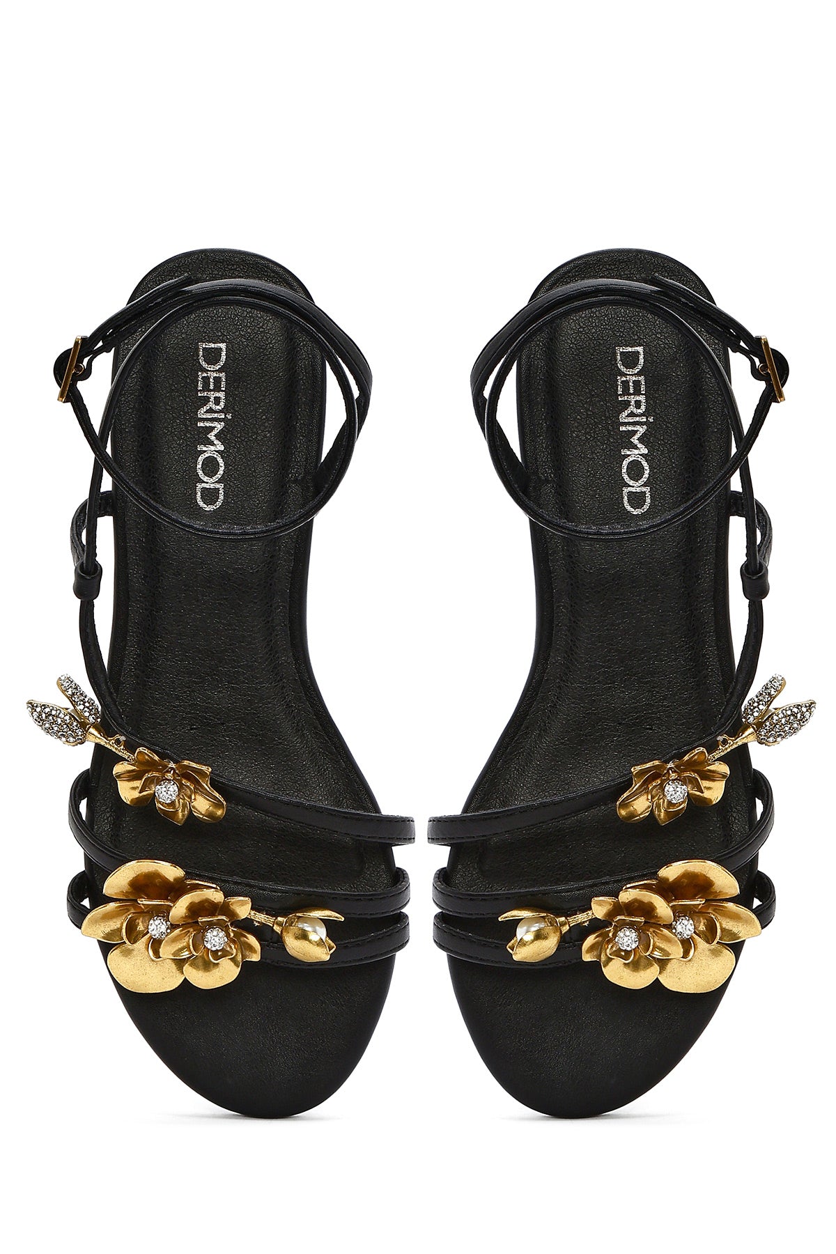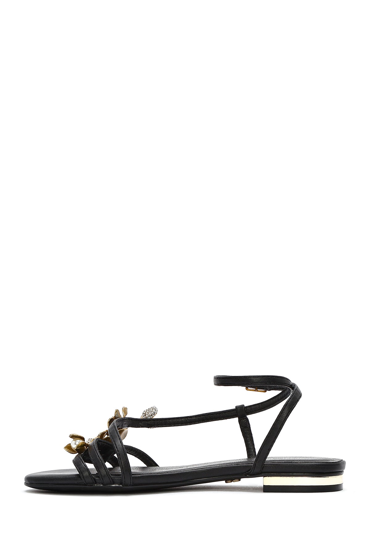 Kadın Siyah Bilekten Tokalı Taşlı Sandalet