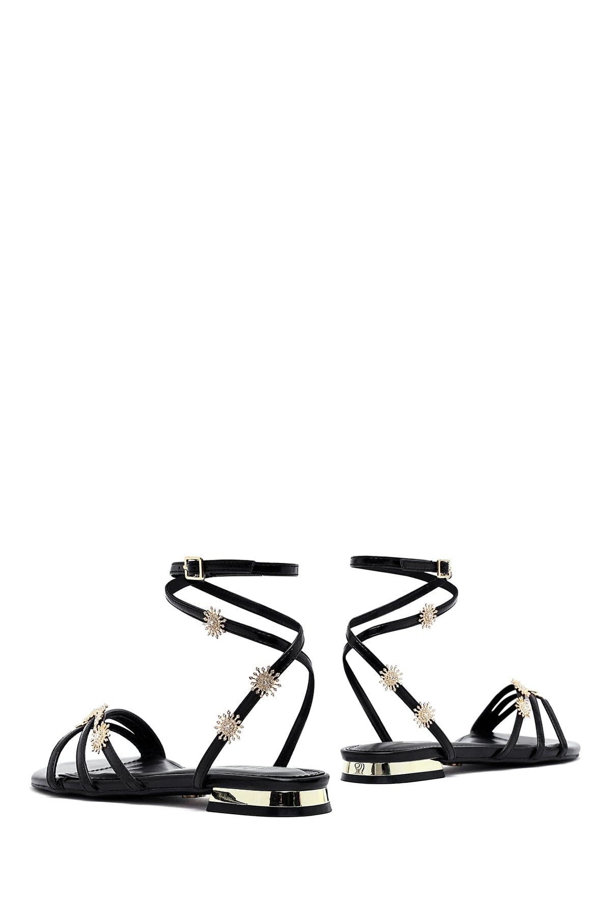 Kadın Siyah Bilekten Tokalı Taşlı Sandalet