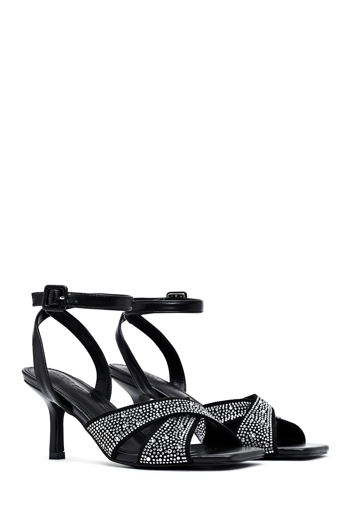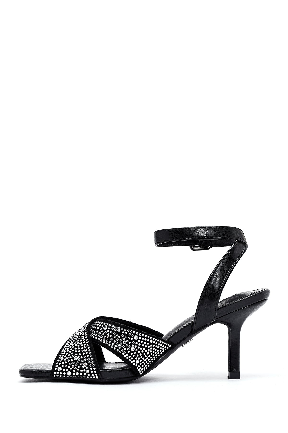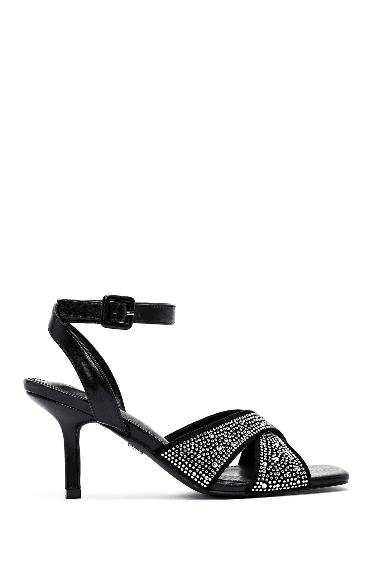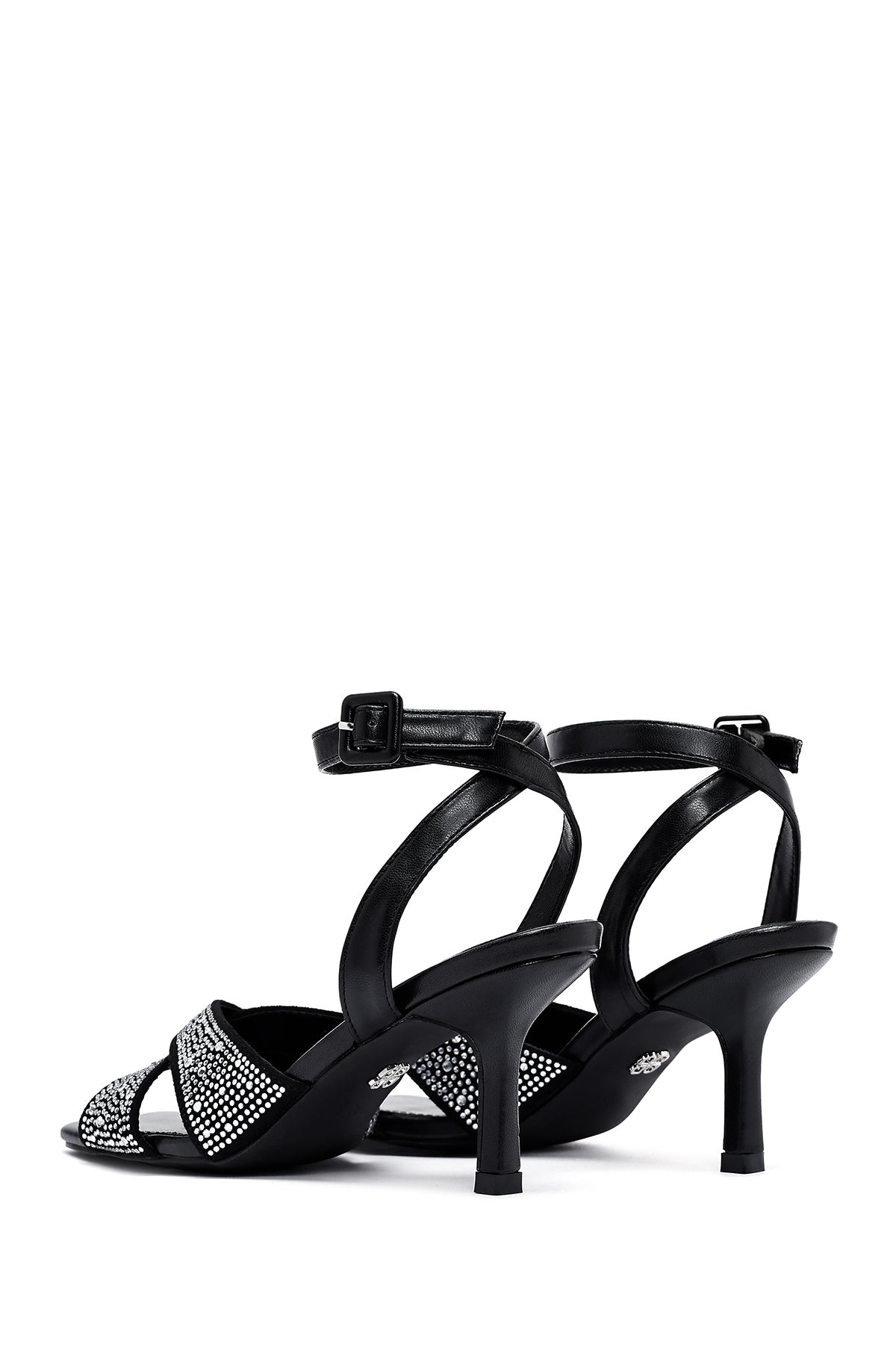 Kadın Siyah Bilekten Tokalı Taşlı İnce Topuklu Sandalet